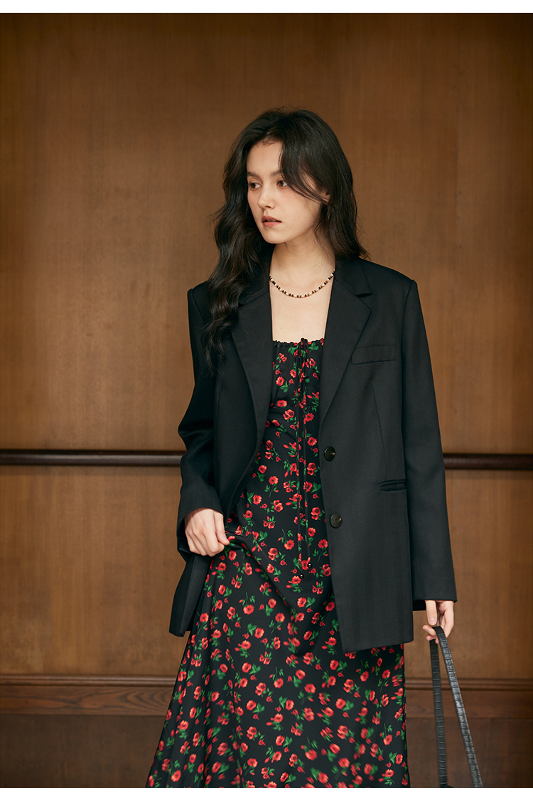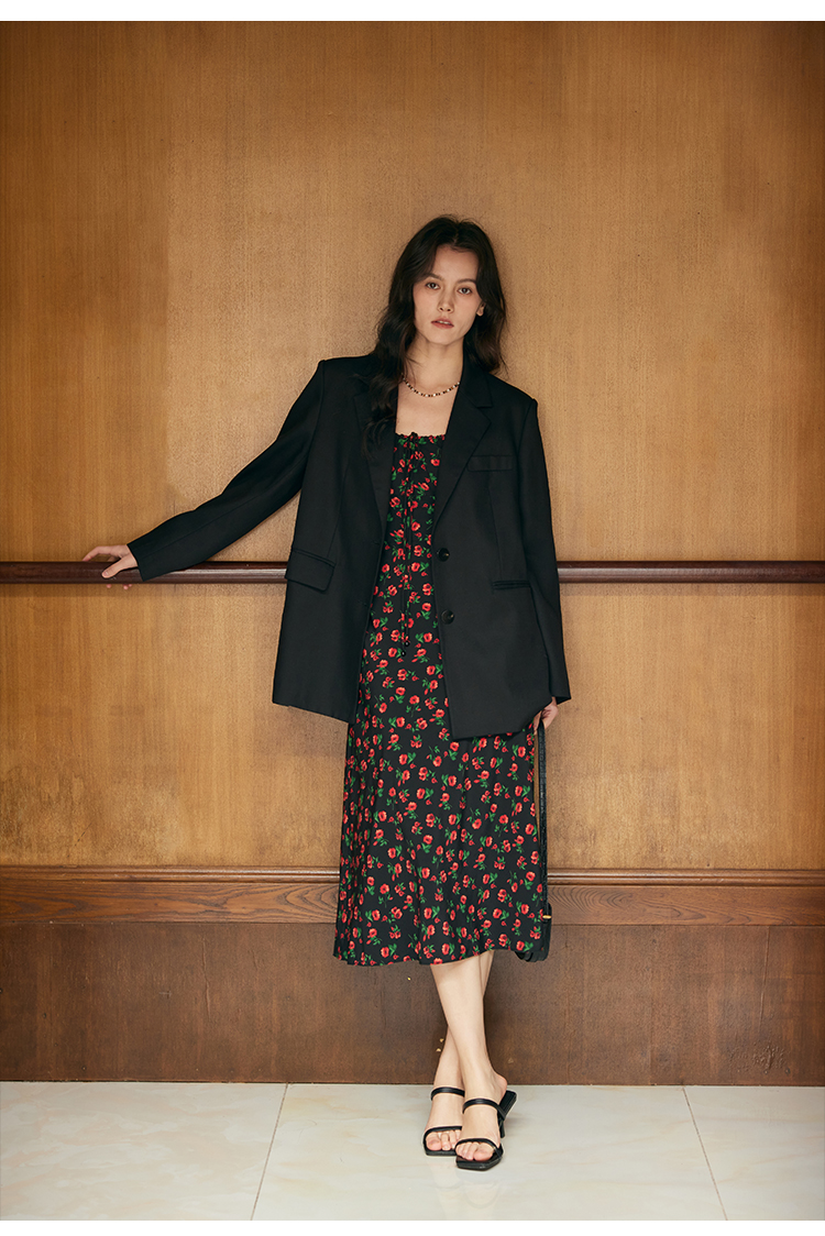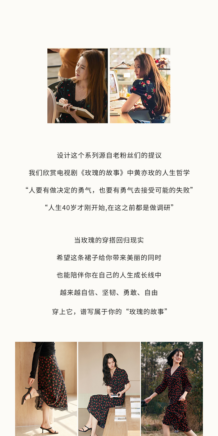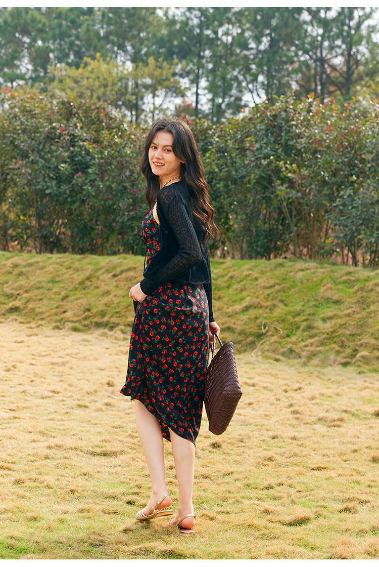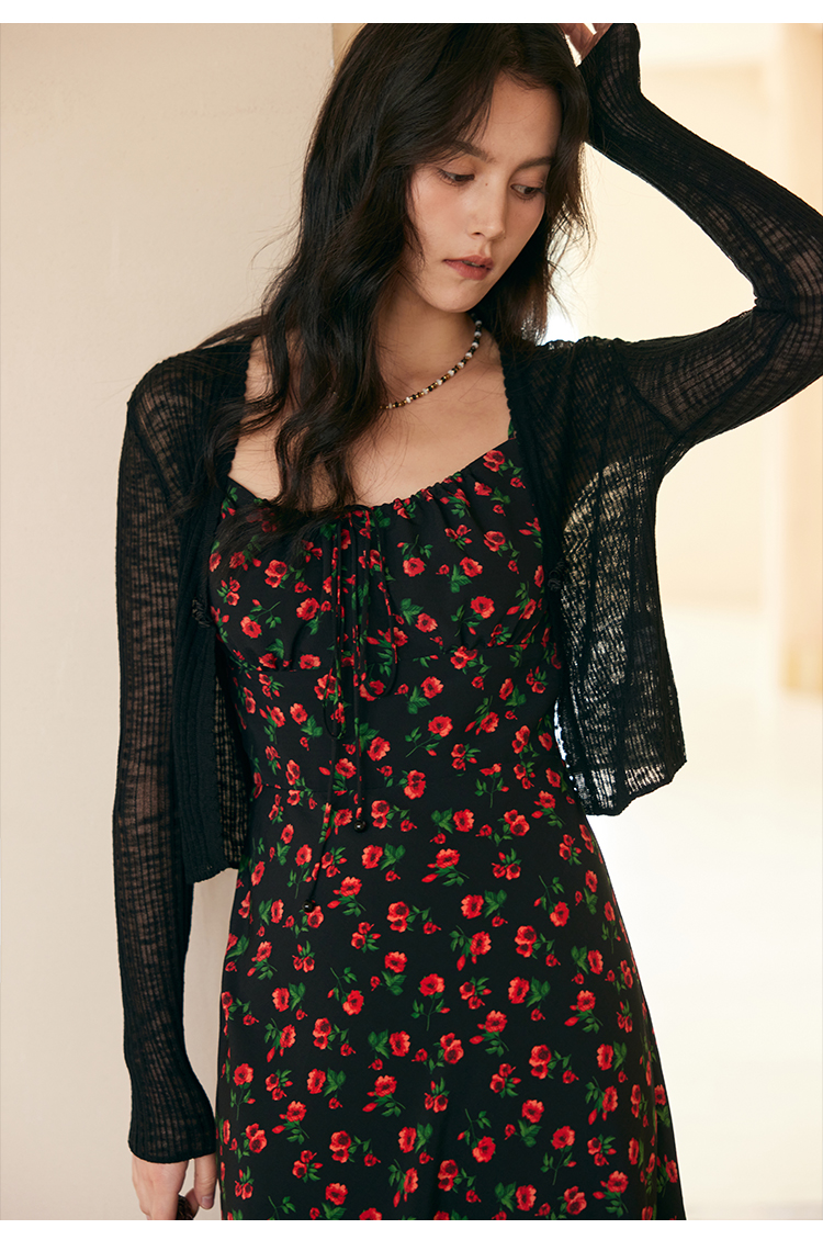 HeyDress原创玫瑰吊带连衣裙女夏季法式收腰浪漫海边度假印花裙子