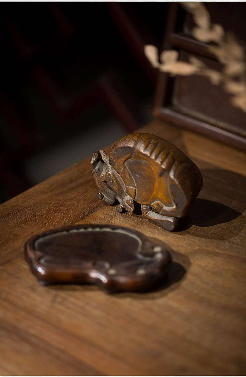 清 黄花梨百宝嵌花鸟诗文笔筒
