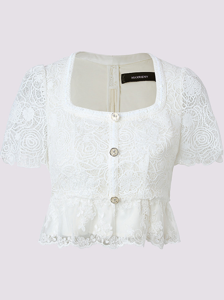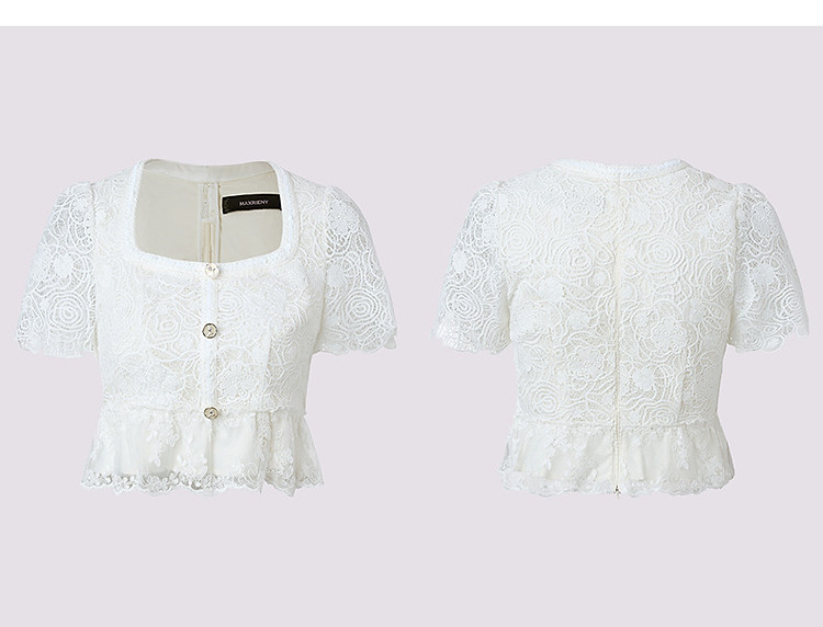 浪漫华丽感玫瑰花朵钉珠蕾丝上衣2025夏季(货号:MF86TP005A1001)