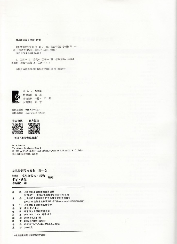莫扎特钢琴变奏曲(第一卷)