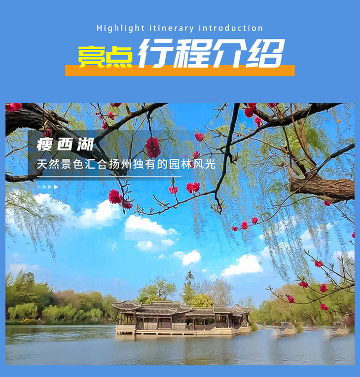 上午|早餐后,乘车前往扬州去瘦西湖游玩,江南水乡下的瘦西湖让你流连忘返。