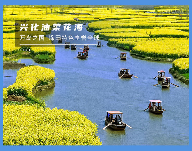上午|我们乘坐巴士前往兴化,欣赏沿路江南水乡的风景,我们首先游览千岛油菜花海。