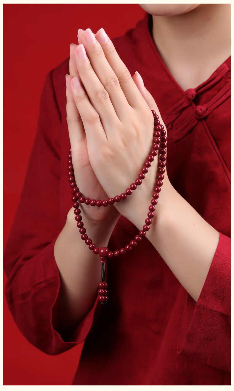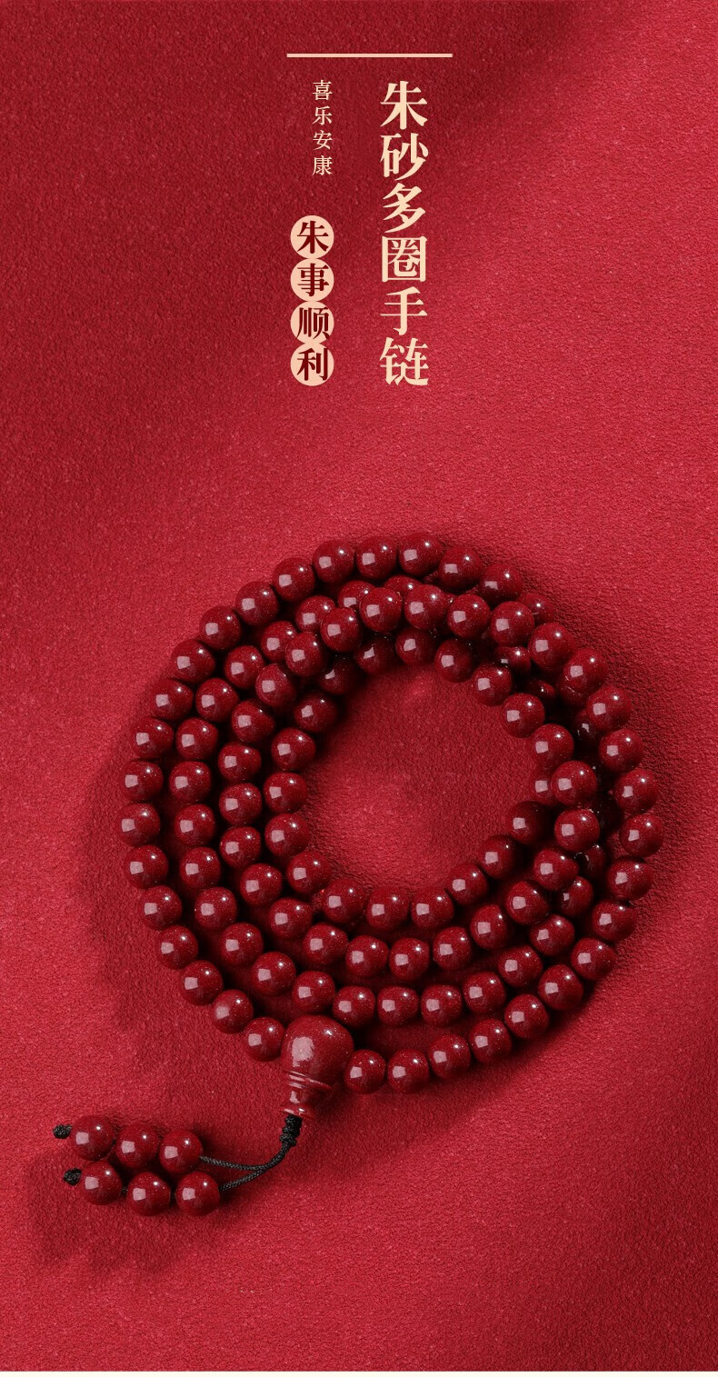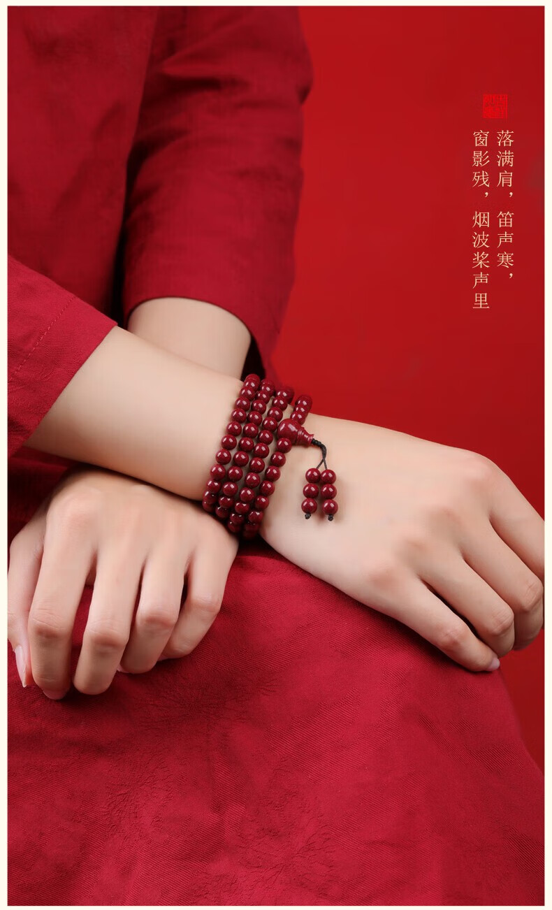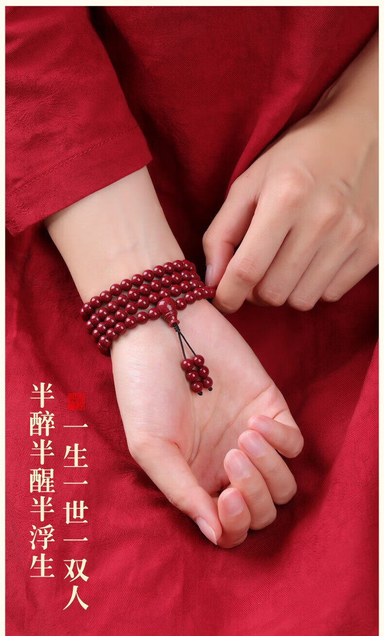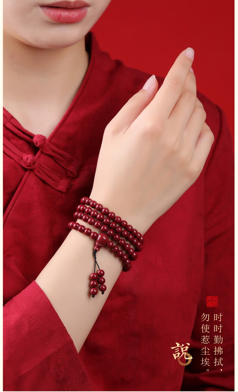 雀说 天然原矿朱砂手串 男女款108颗佛珠精品紫金砂90%含量(内外满星光)