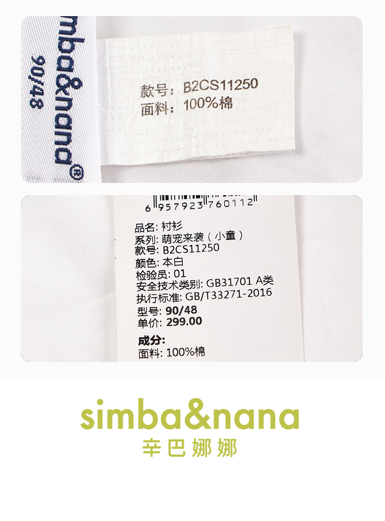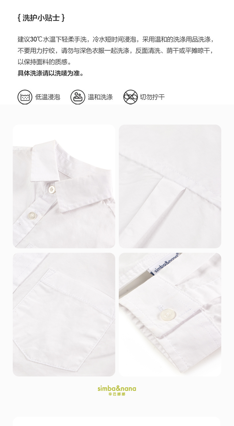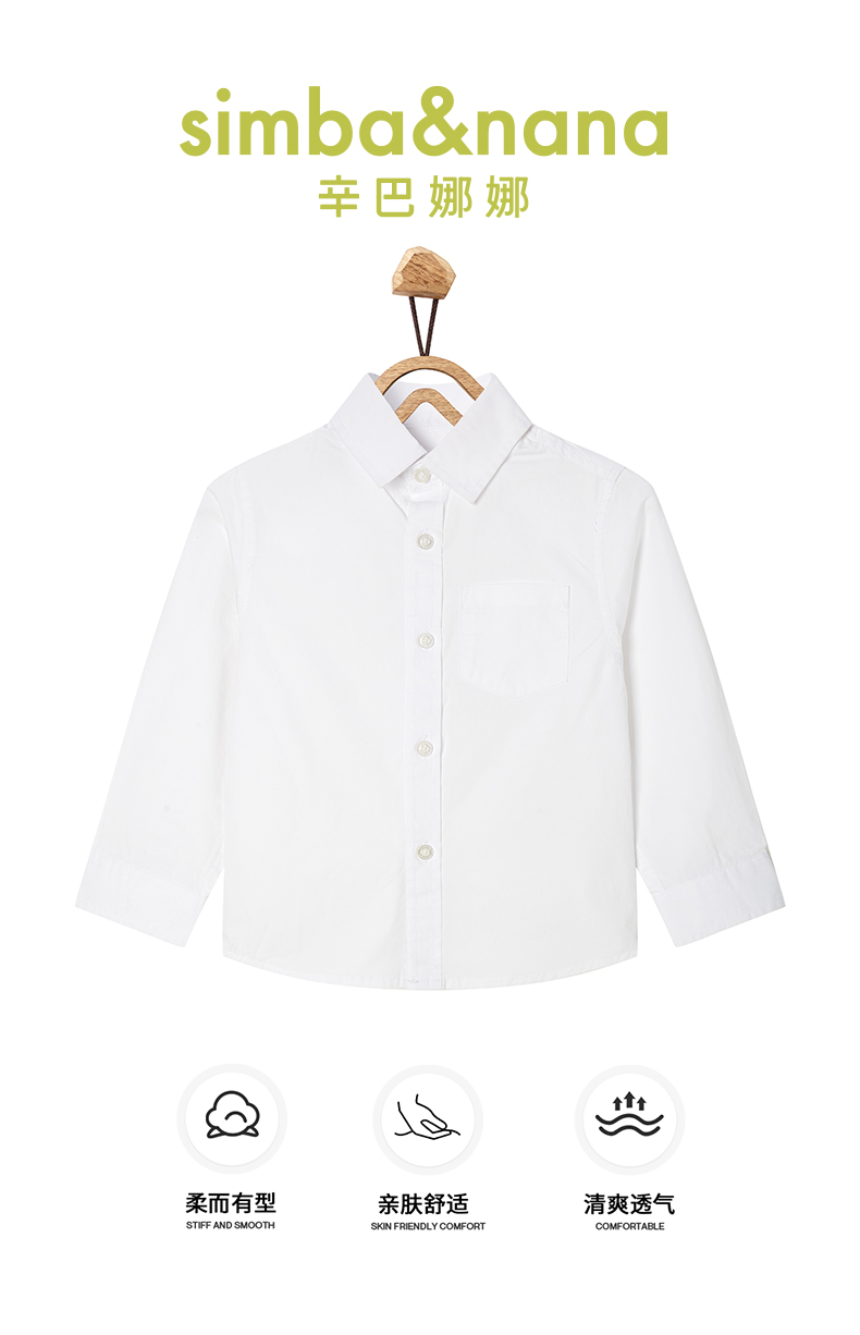 【辛巴娜娜】simbanana【大童】男童春秋款纯色长袖纯棉男孩衬衣