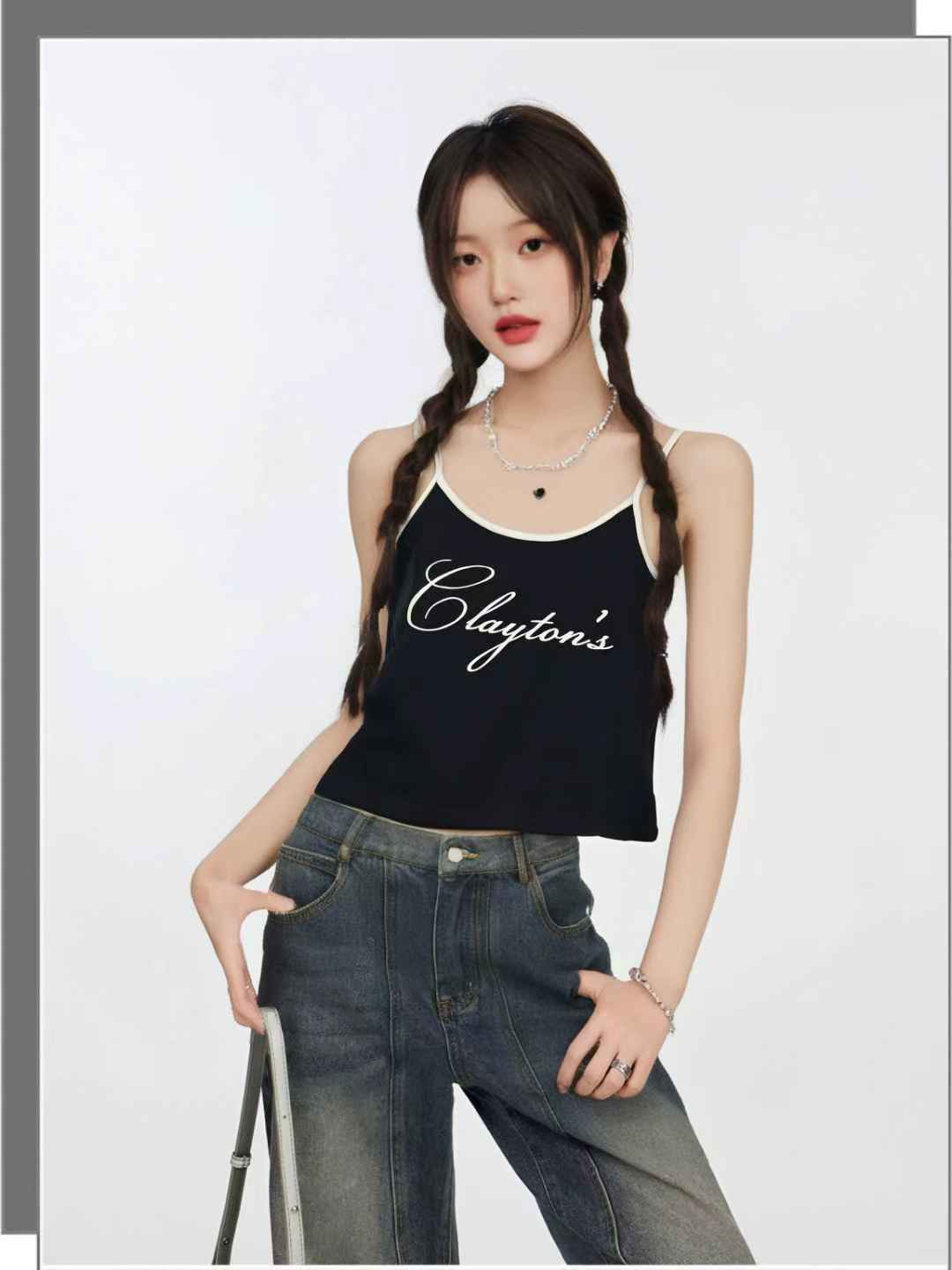 【诗铭洛可】W823撞色吊带白色边B13-2