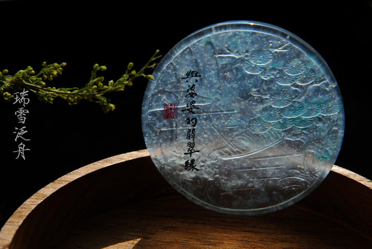 翡翠的品质上上之选,玻璃种,看不到任何翡翠的结构,冰透到放在手背上可以看到手上的青筋,已经是最极品的种,在雕刻上也是极致的细腻。