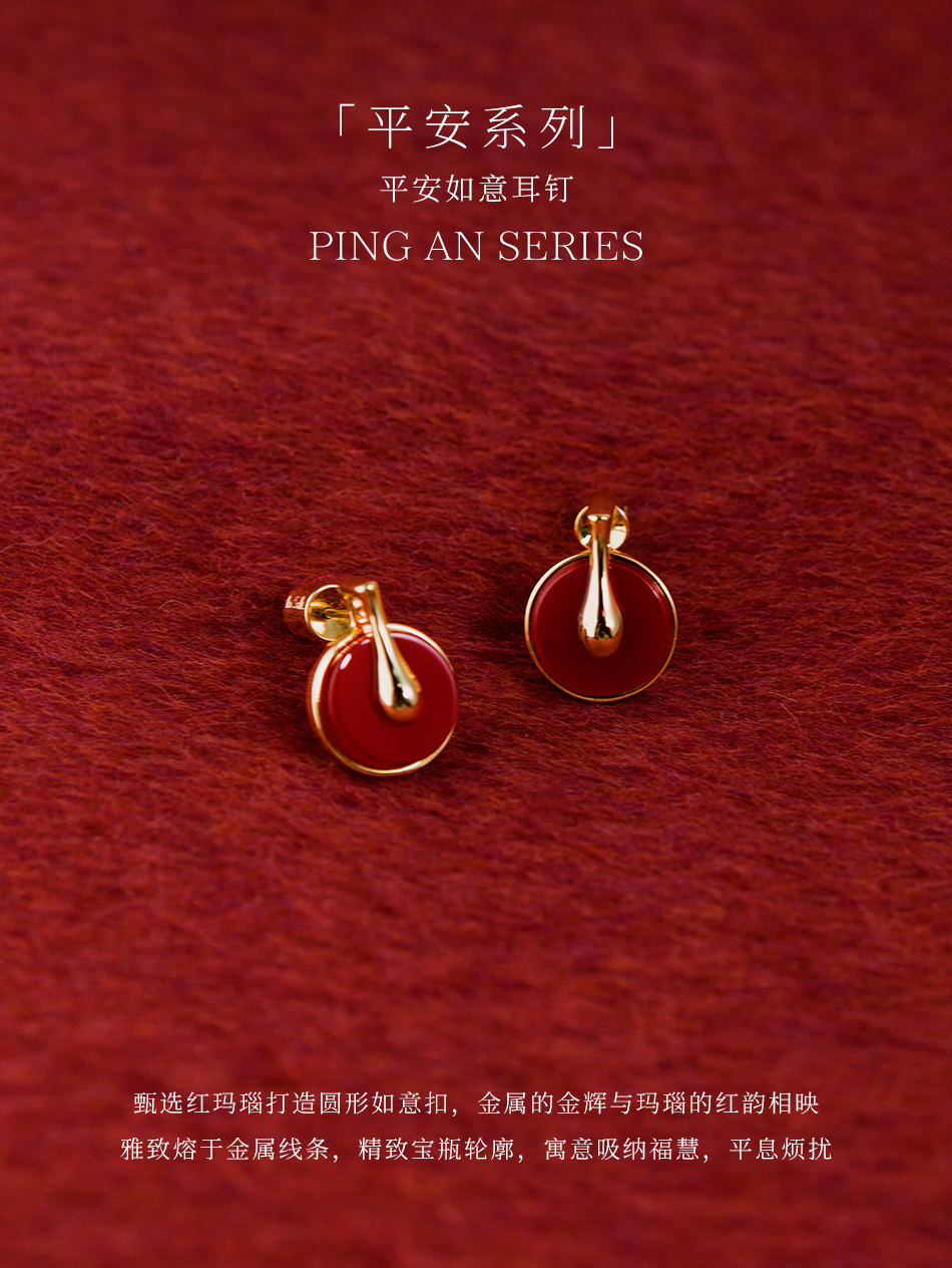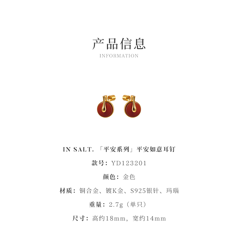 盐岛 平安系列 平安如意耳钉