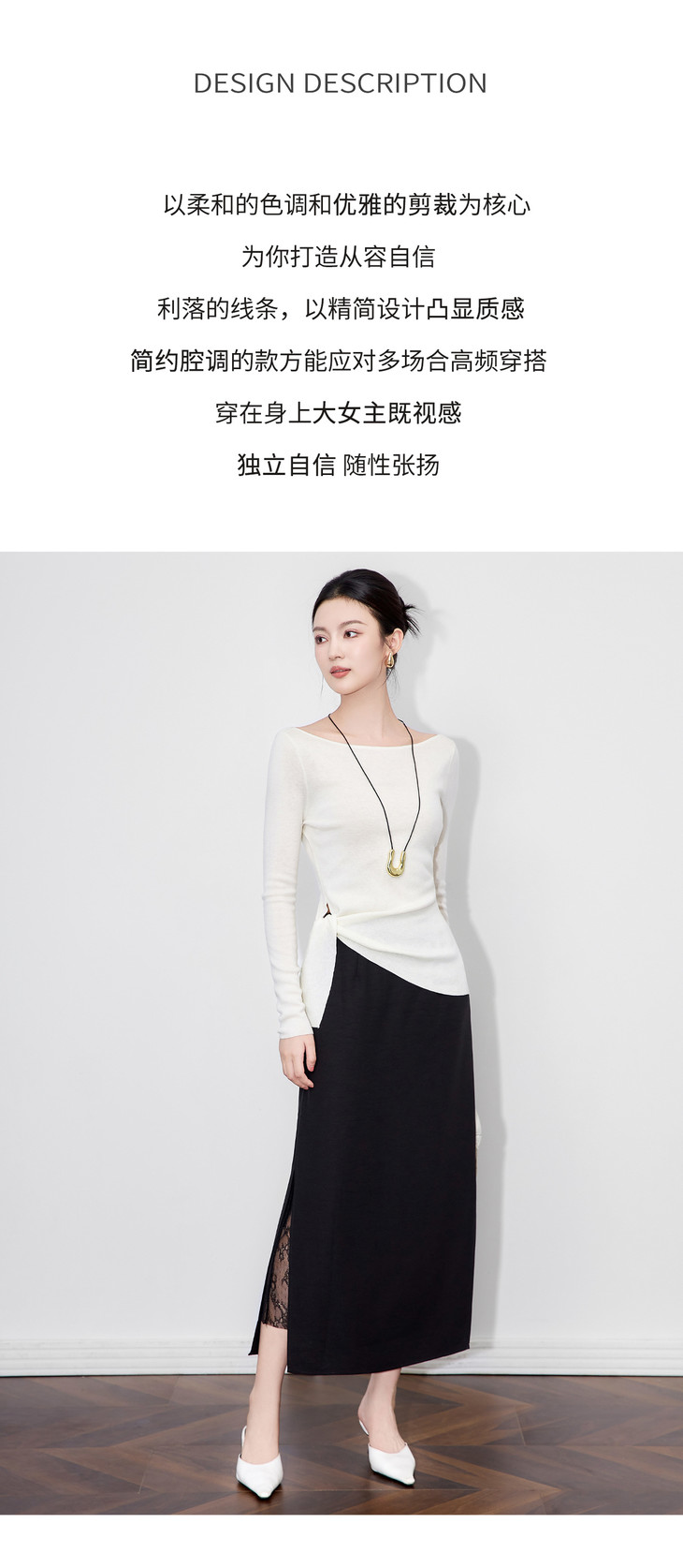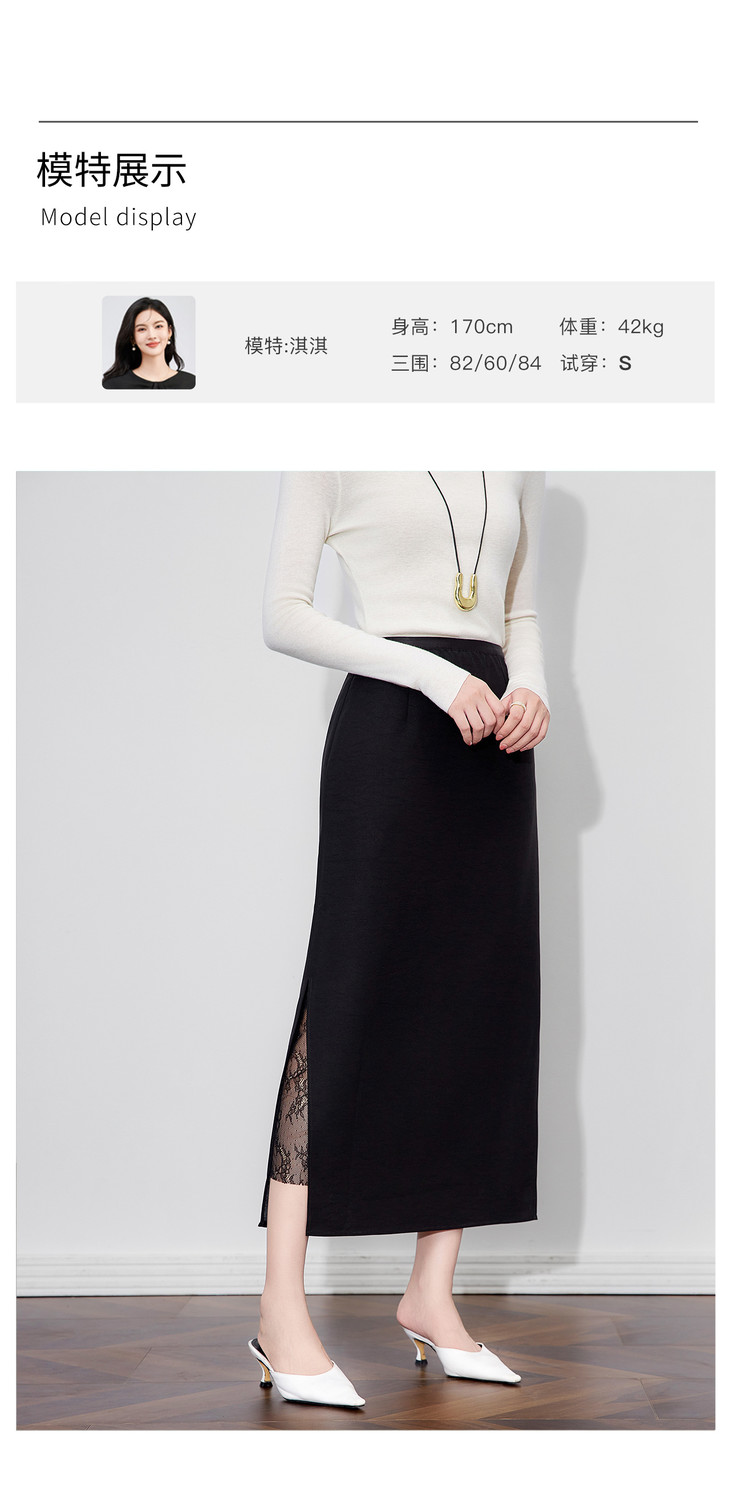 极简修身知性通勤,拼蕾丝松紧腰开衩半身裙WLZD-2511201