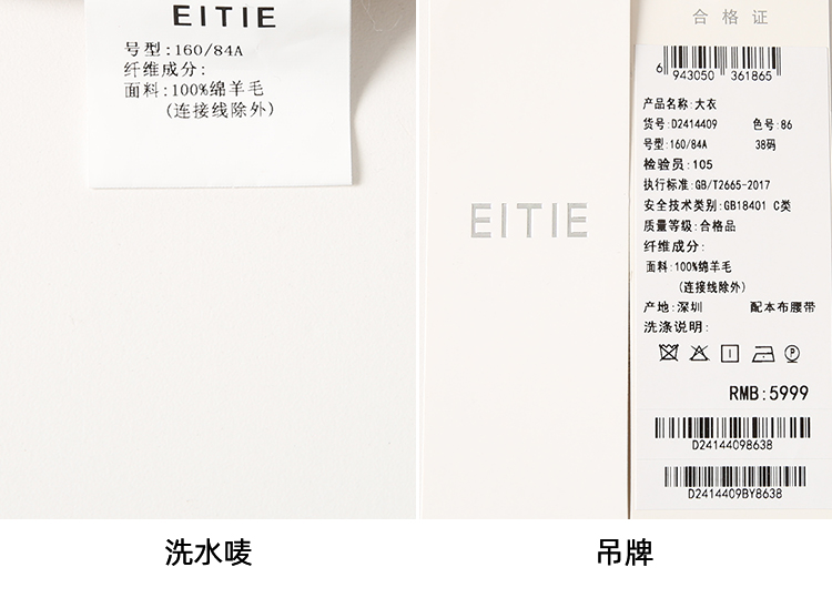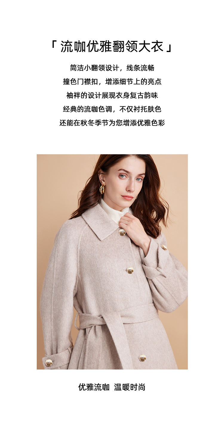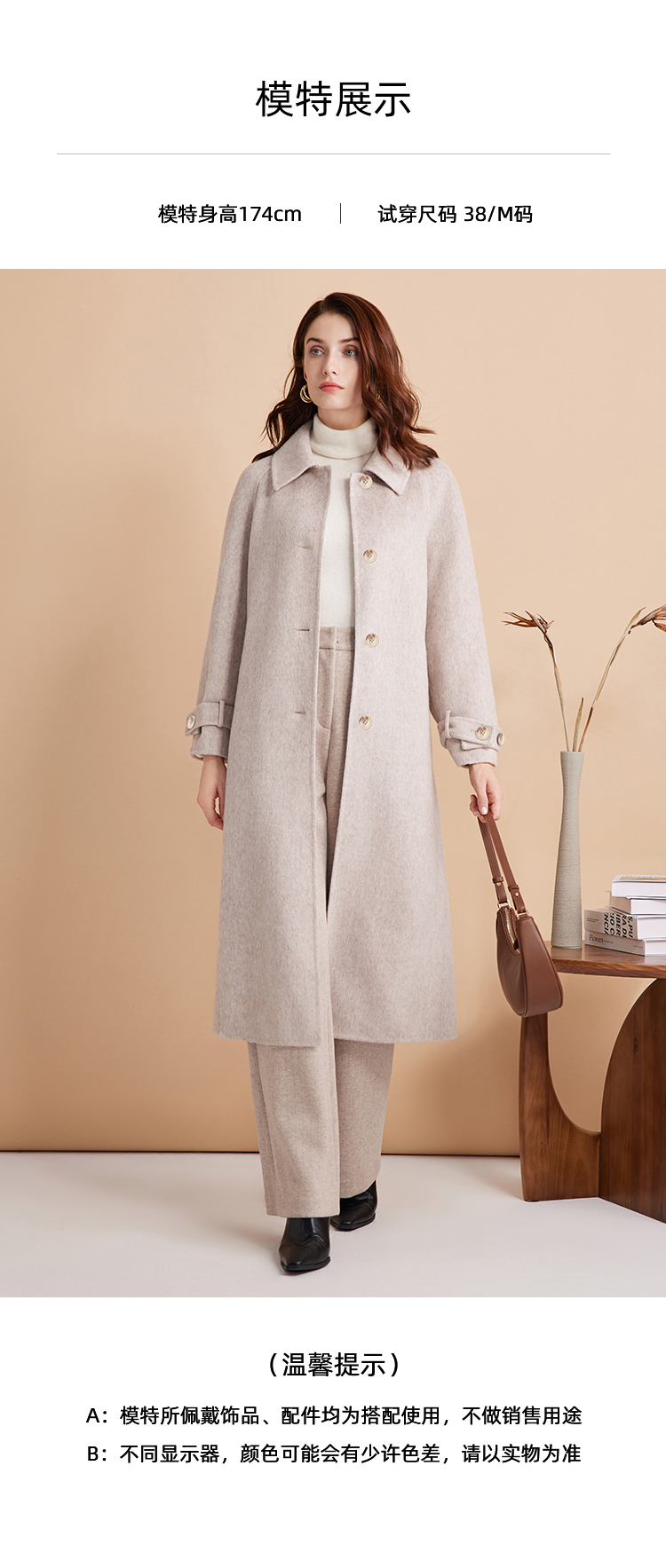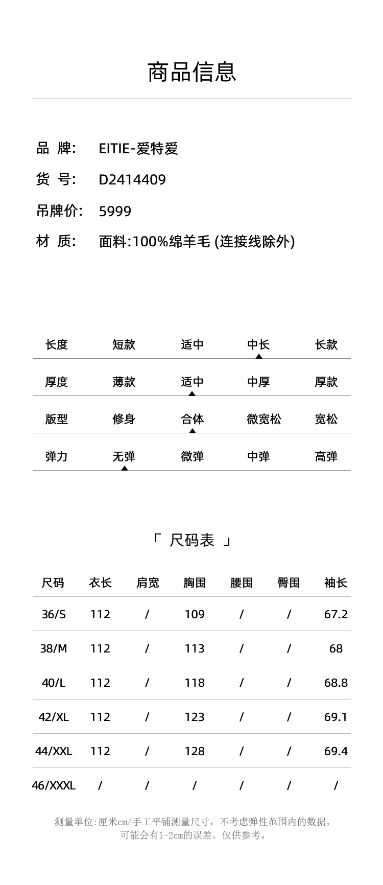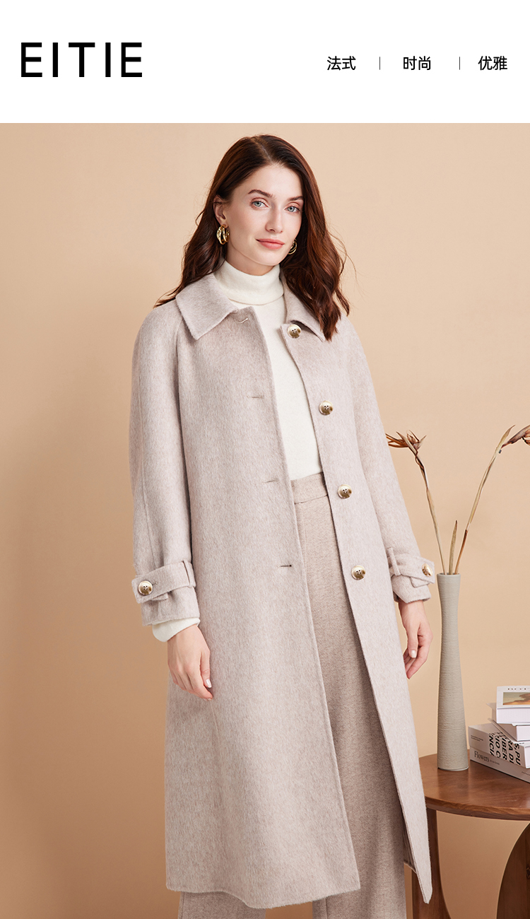 EITIE爱特爱冬季新款修身a版显瘦通勤100%绵羊毛高级时尚毛呢大衣D2414409