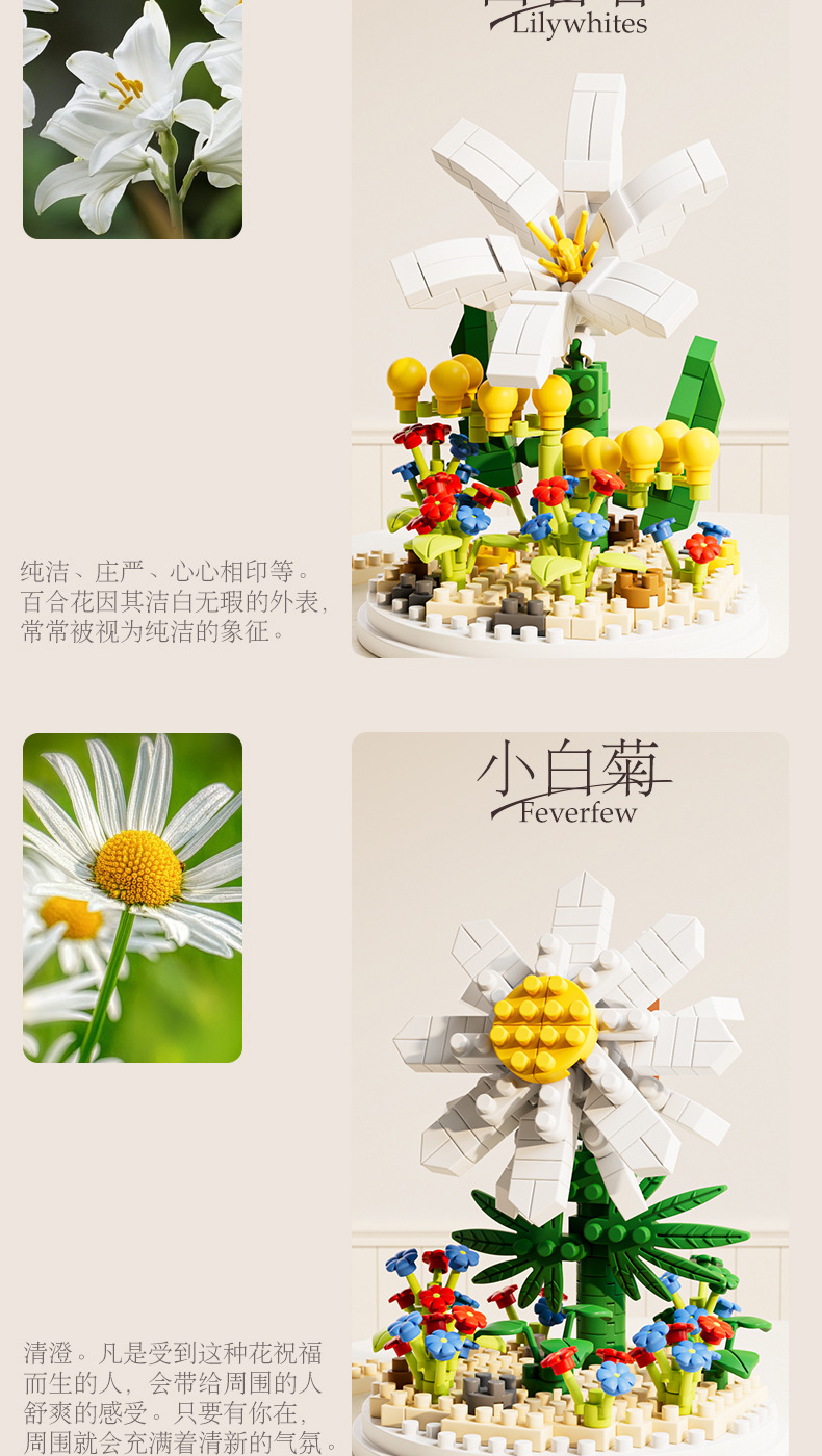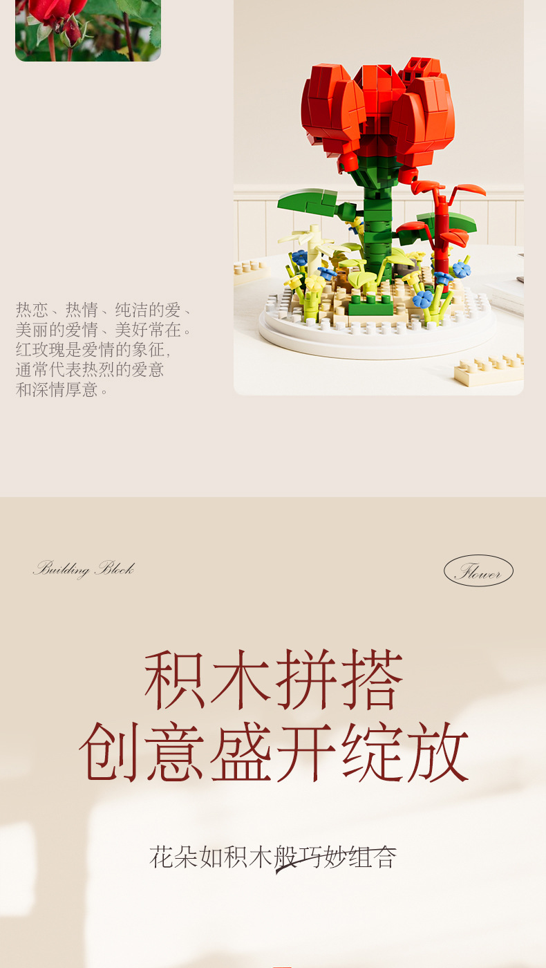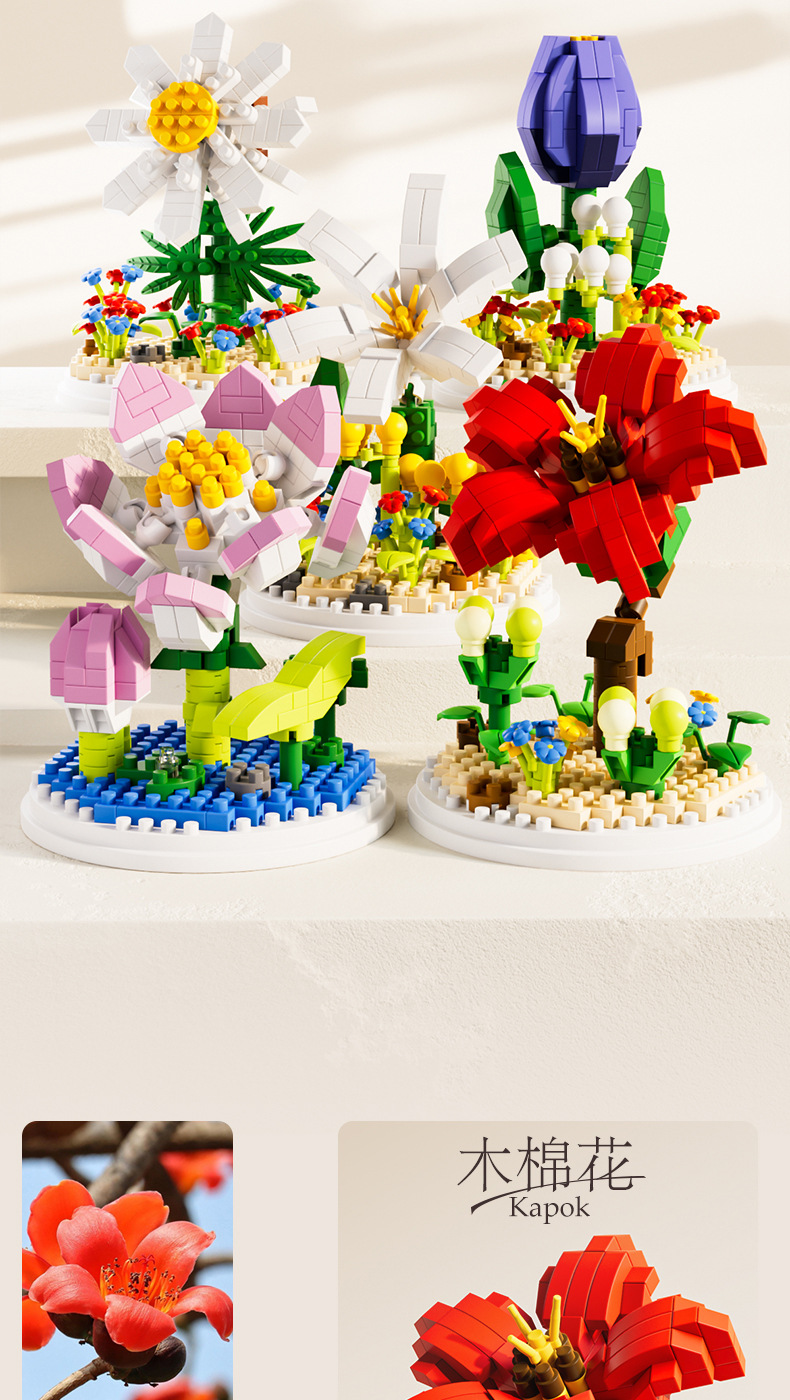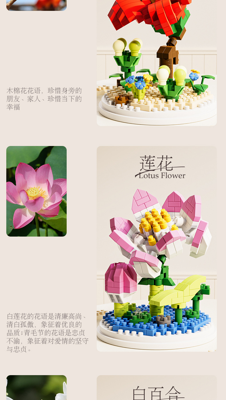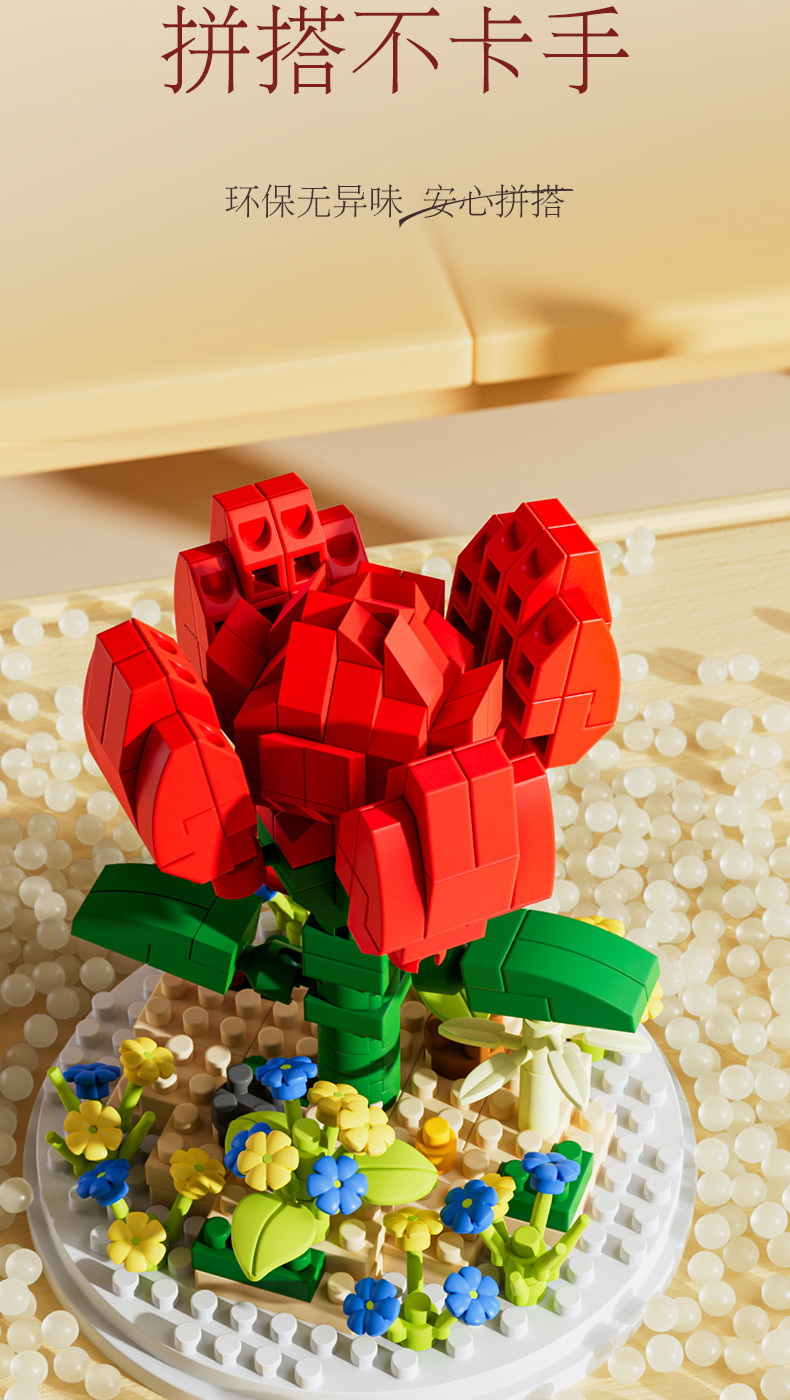 【29.9任选3件】积木花玩具益智拼装积木小颗粒女孩积木花束礼物摆摊礼物兼容乐高