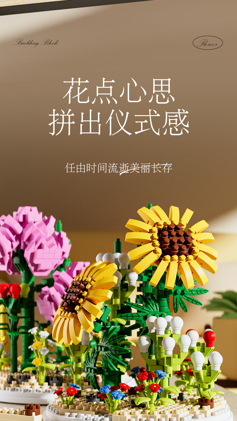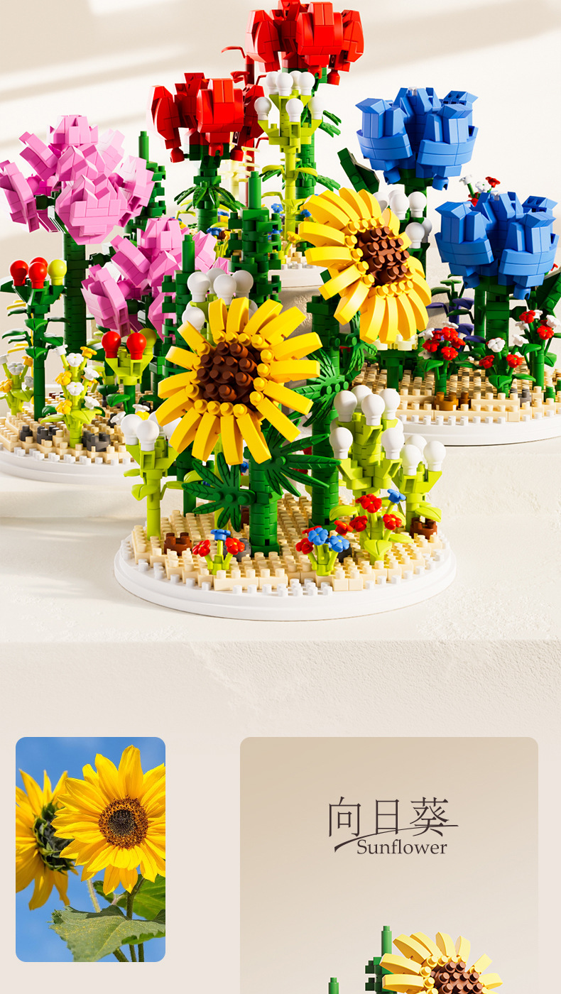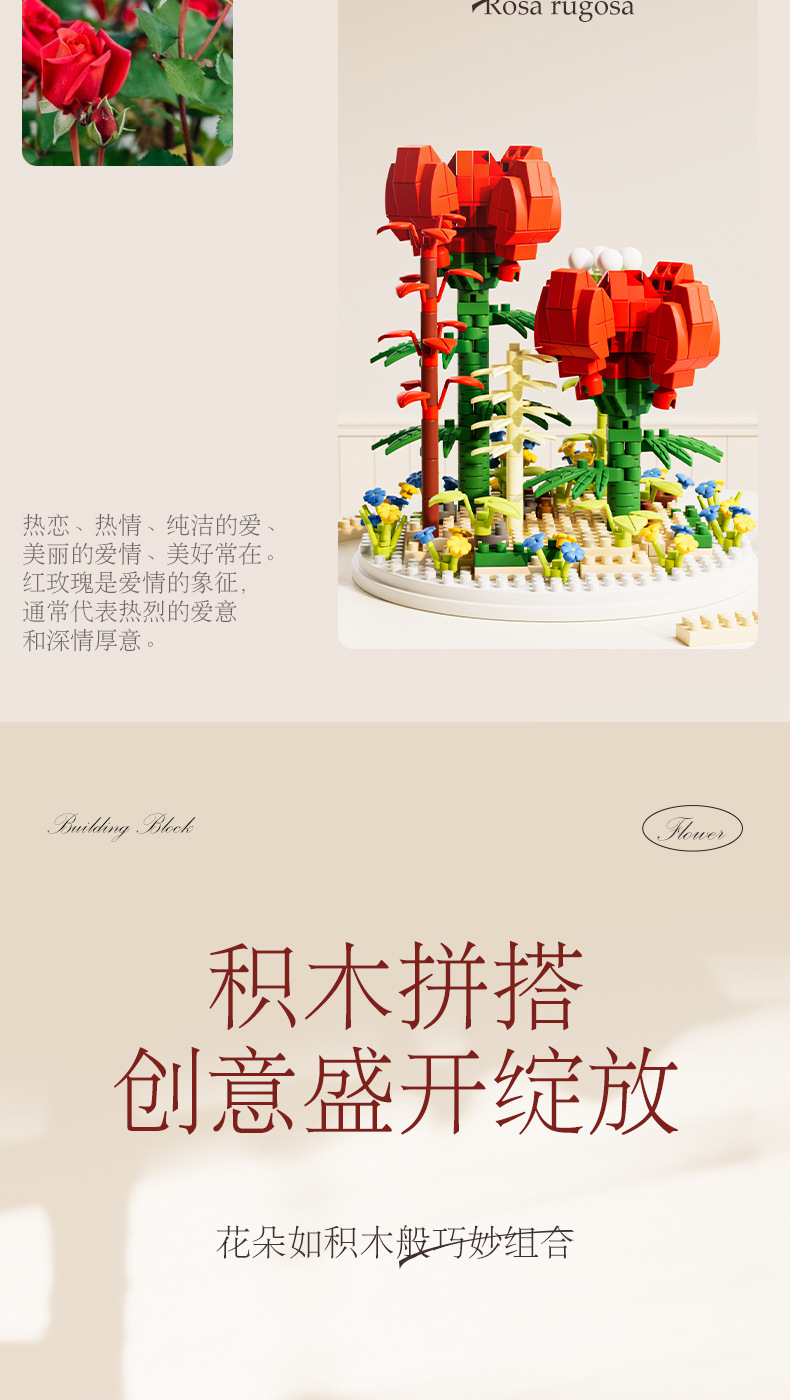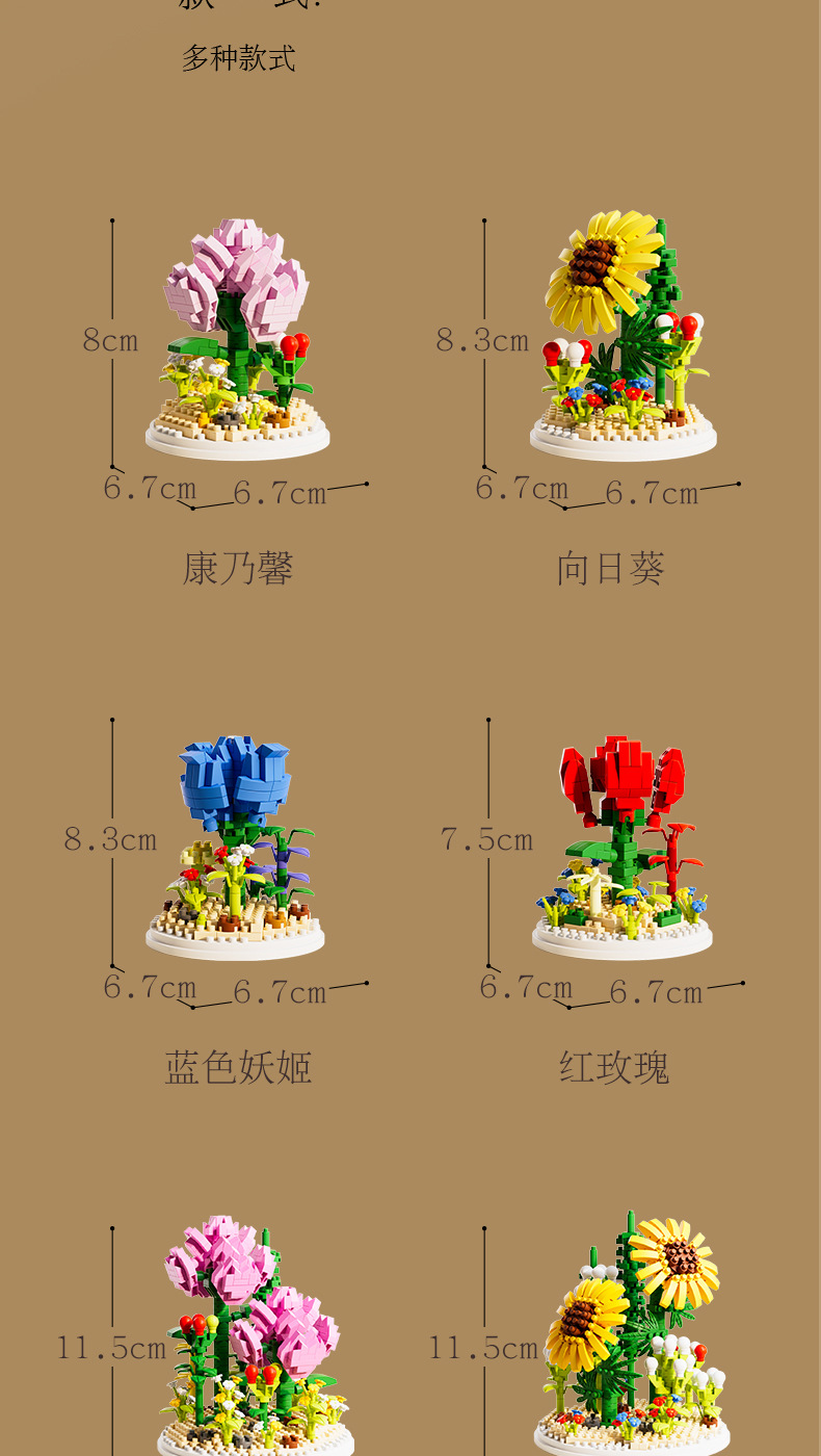 【29.9任选3件】积木花玩具益智拼装积木小颗粒女孩积木花束礼物摆摊礼物兼容乐高