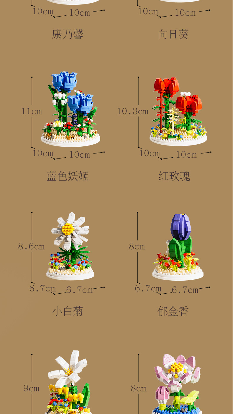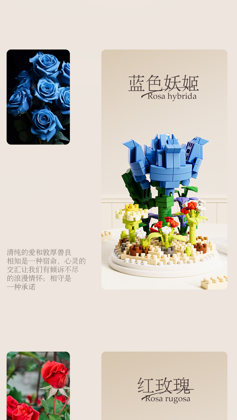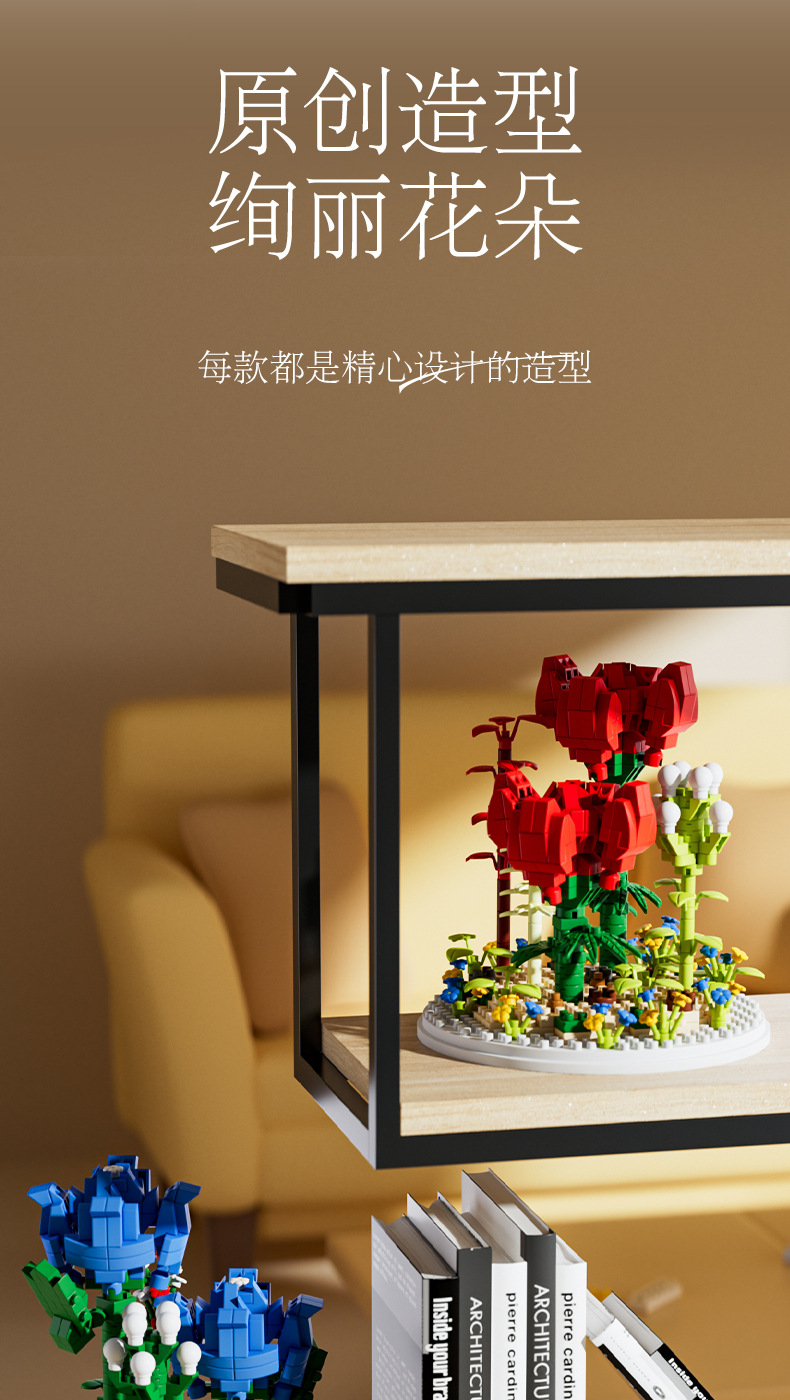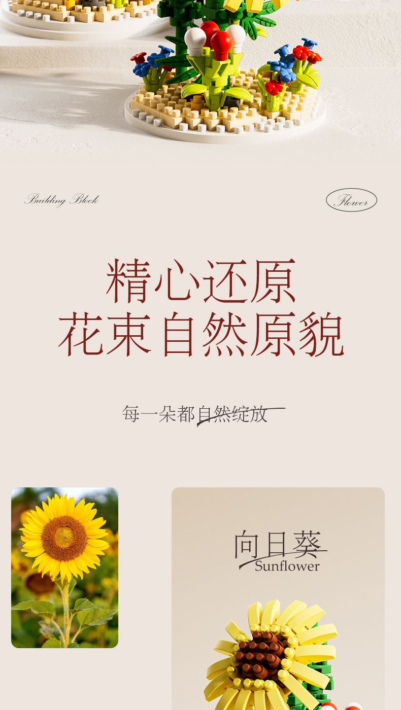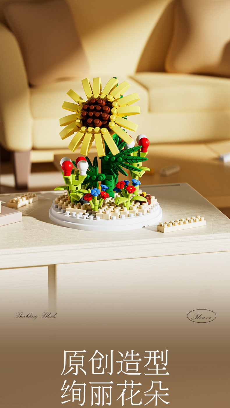 【29.9任选3件】积木花玩具益智拼装积木小颗粒女孩积木花束礼物摆摊礼物兼容乐高