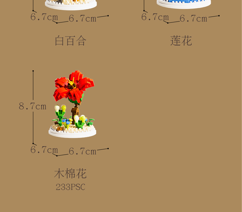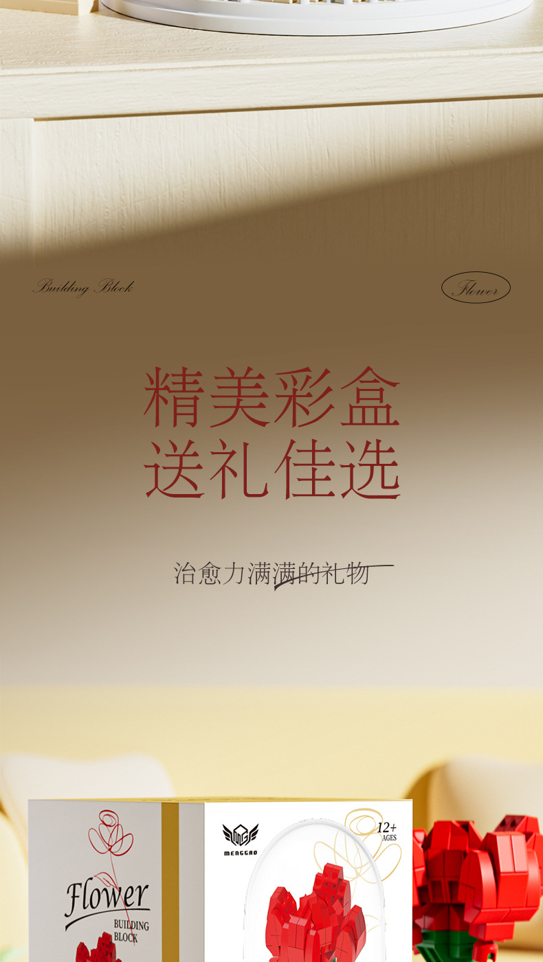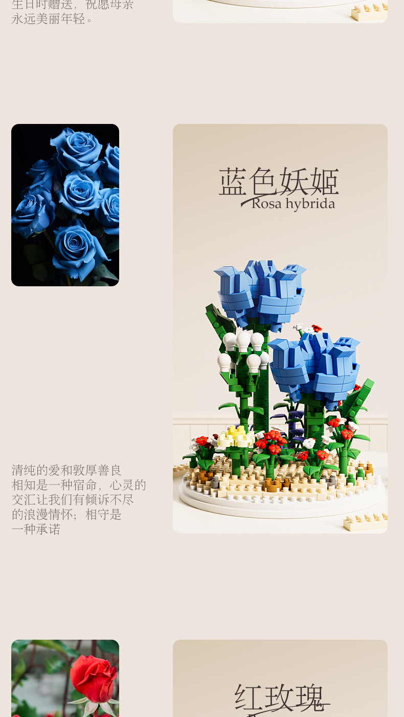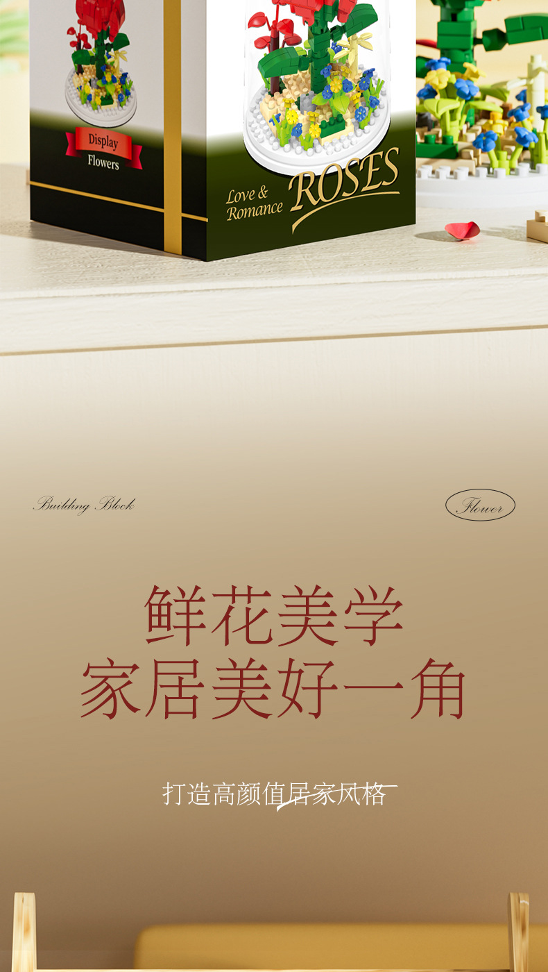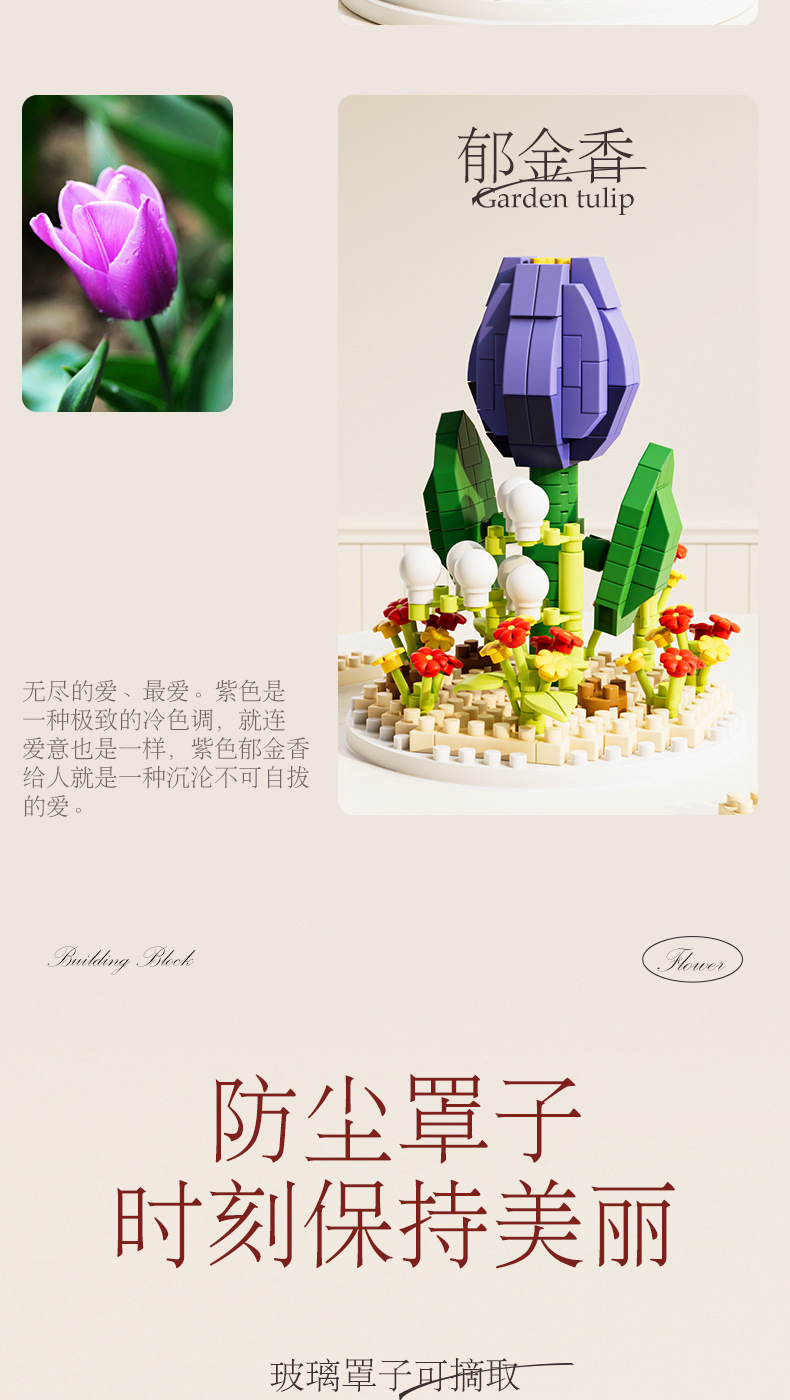 【29.9任选3件】积木花玩具益智拼装积木小颗粒女孩积木花束礼物摆摊礼物兼容乐高