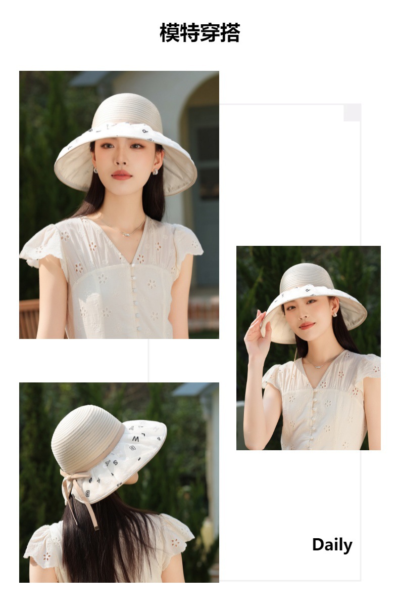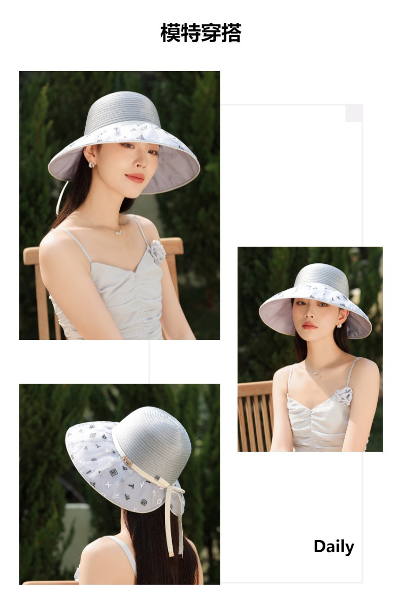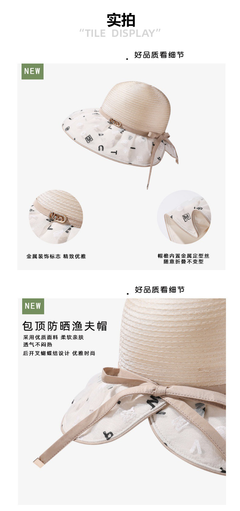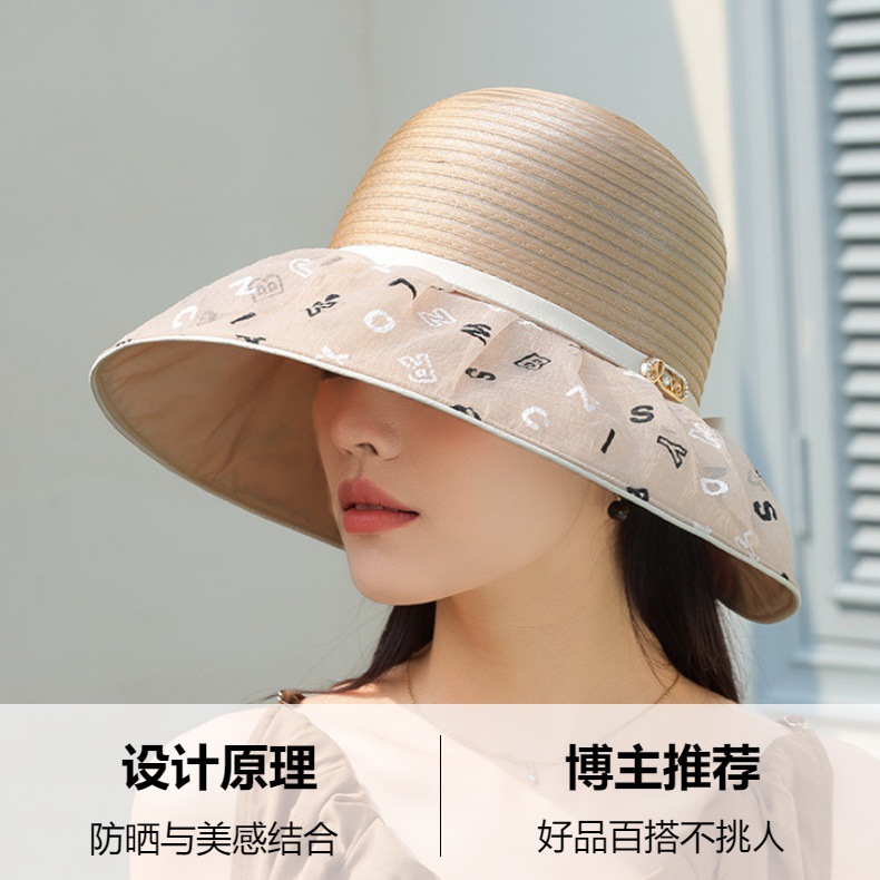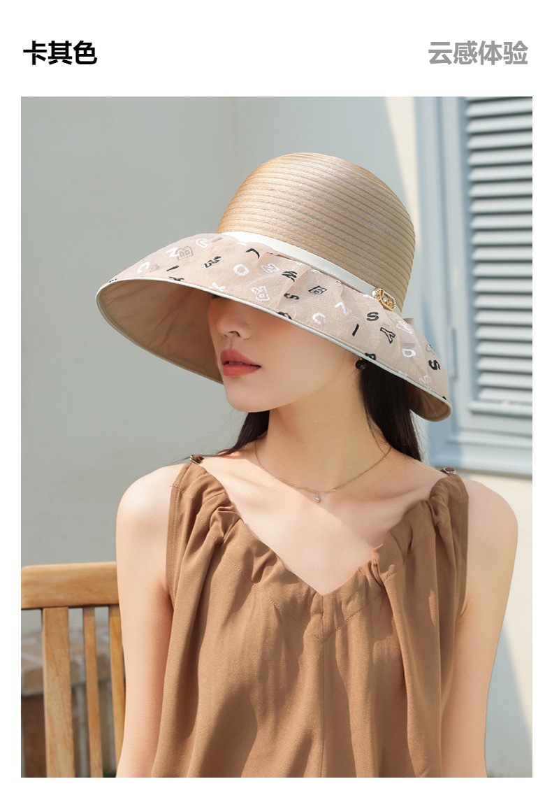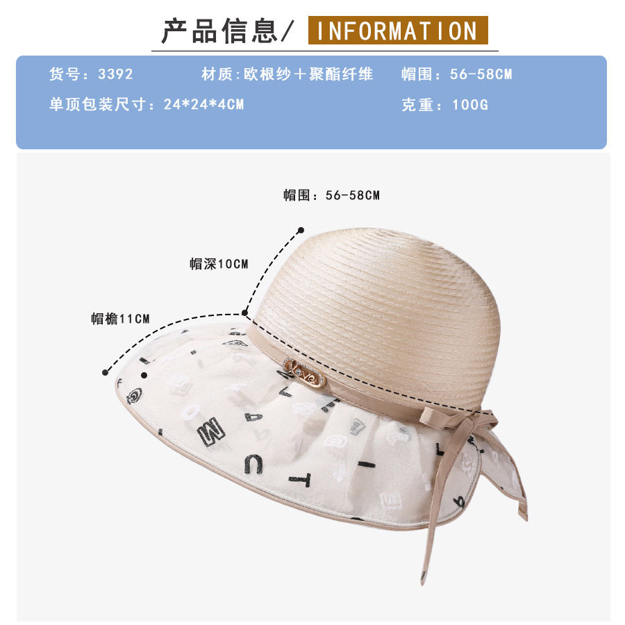 薄款透气欧根纱大沿防晒帽,气质百搭字母遮阳帽高级感太阳帽M3392