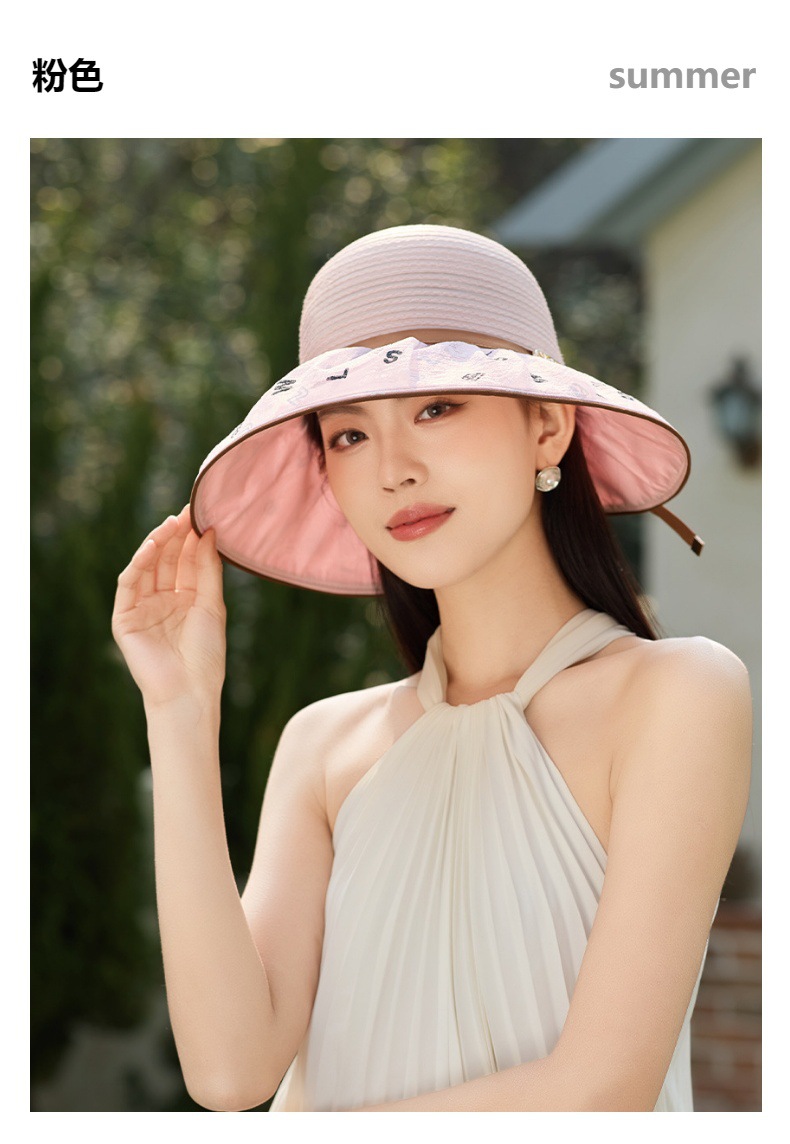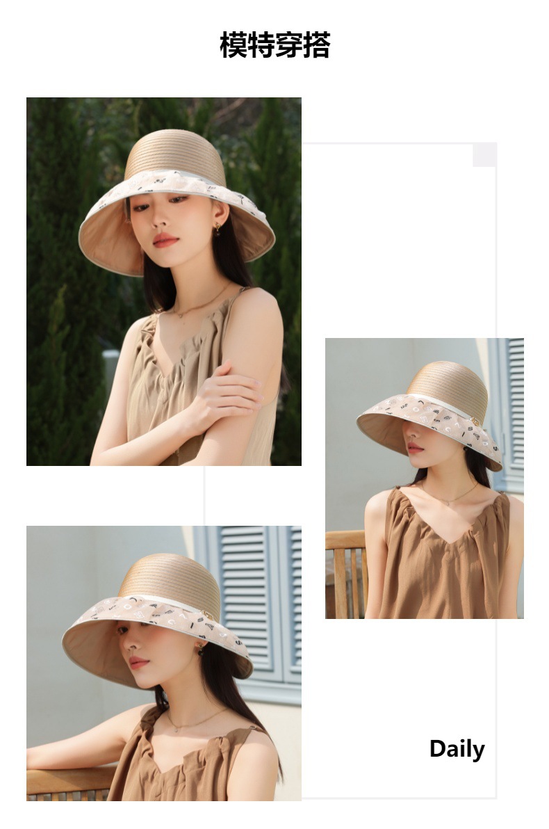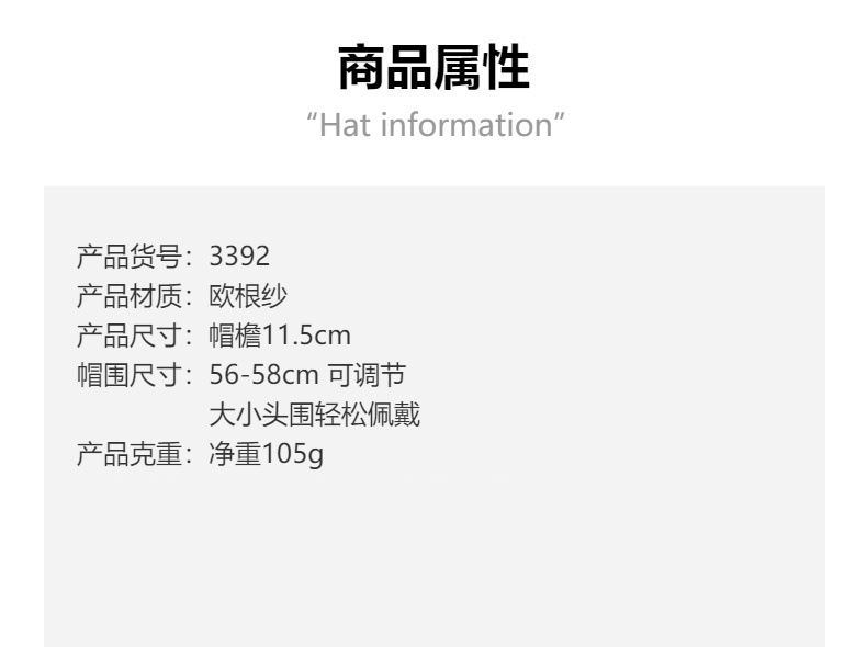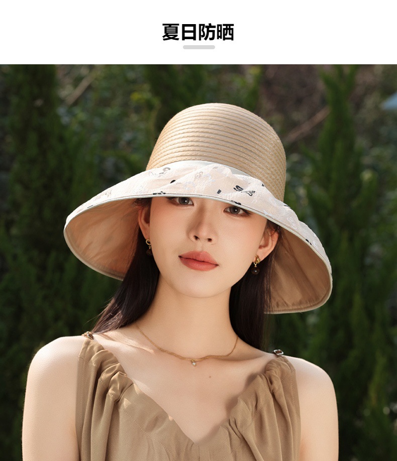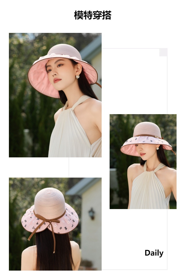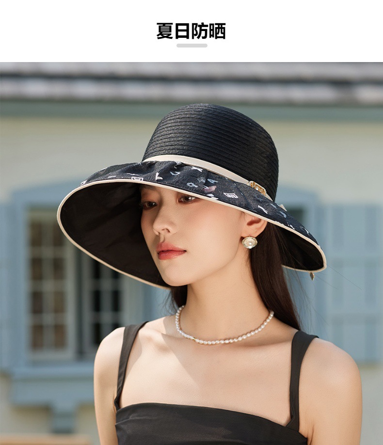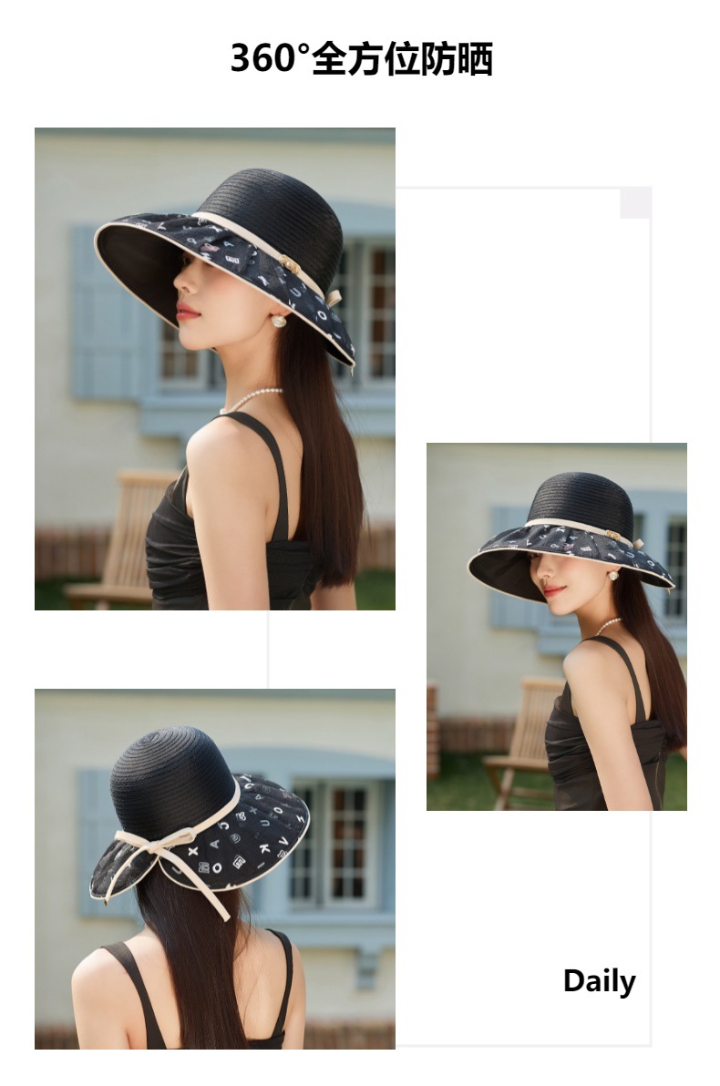 薄款透气欧根纱大沿防晒帽,气质百搭字母遮阳帽高级感太阳帽M3392