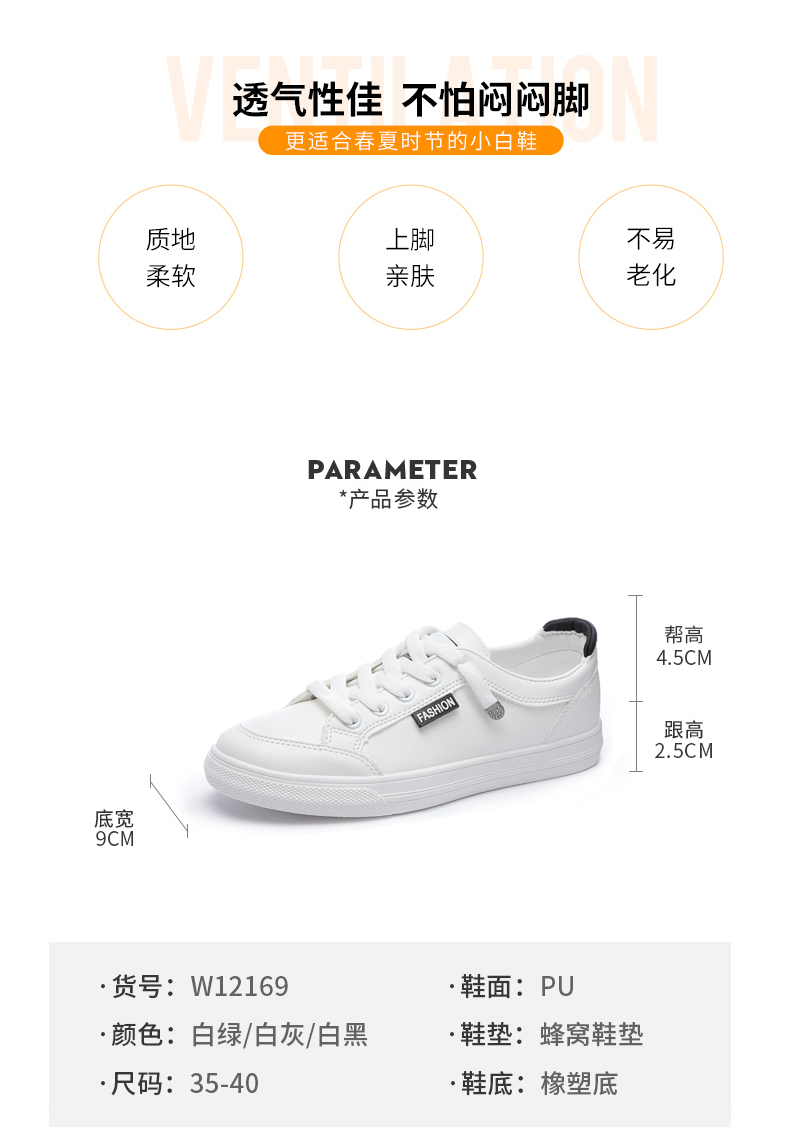 【万沃青春至上软底小白鞋】加宽鞋头舒适不挤脚亲肤柔软轻爽不易老化采用手感柔软的PU材质,为你解决磨脚烦恼属于你的青春活力