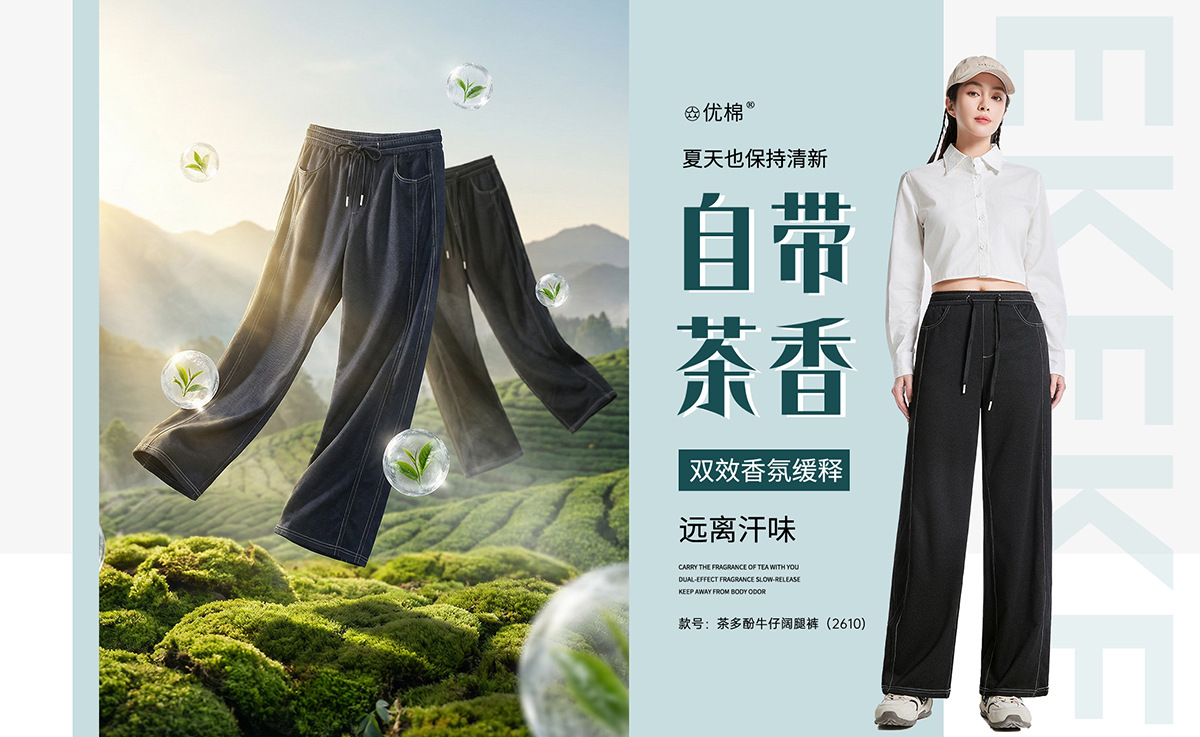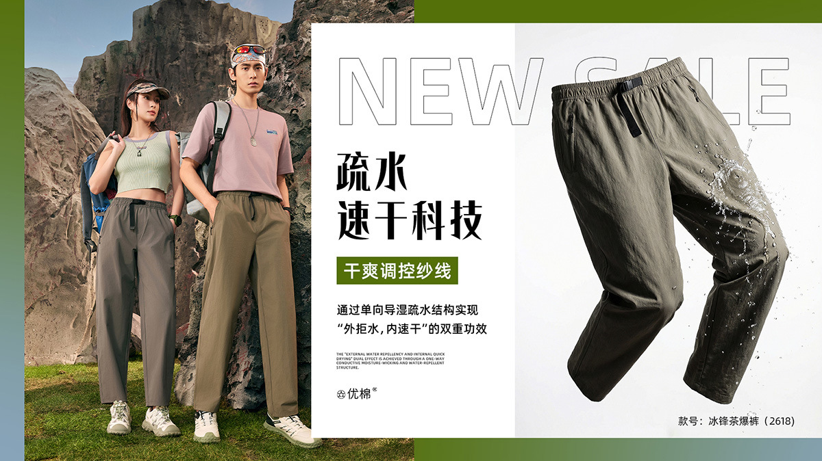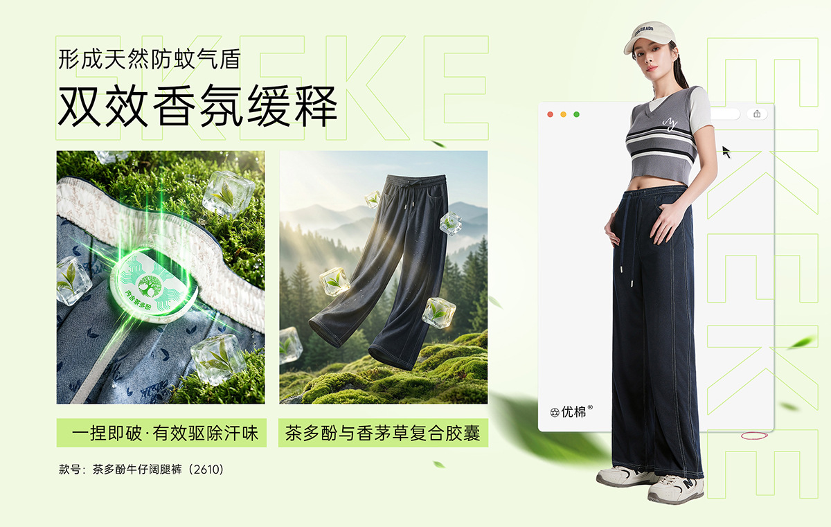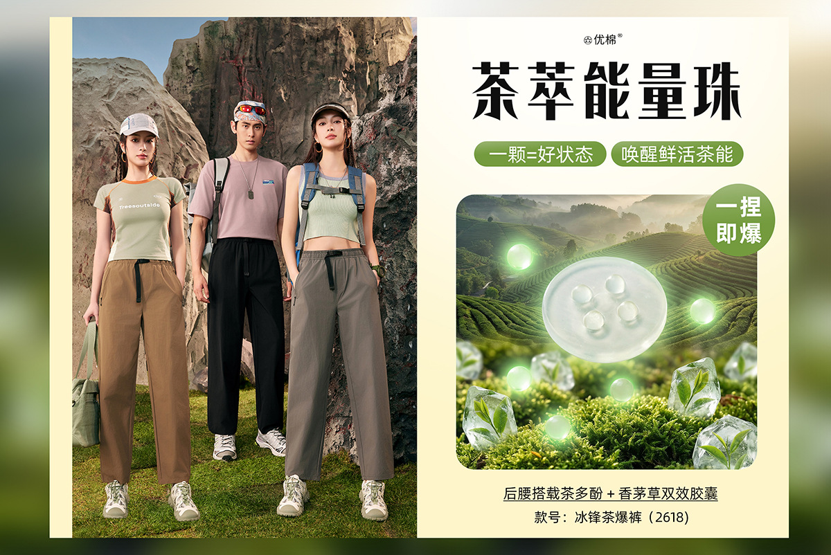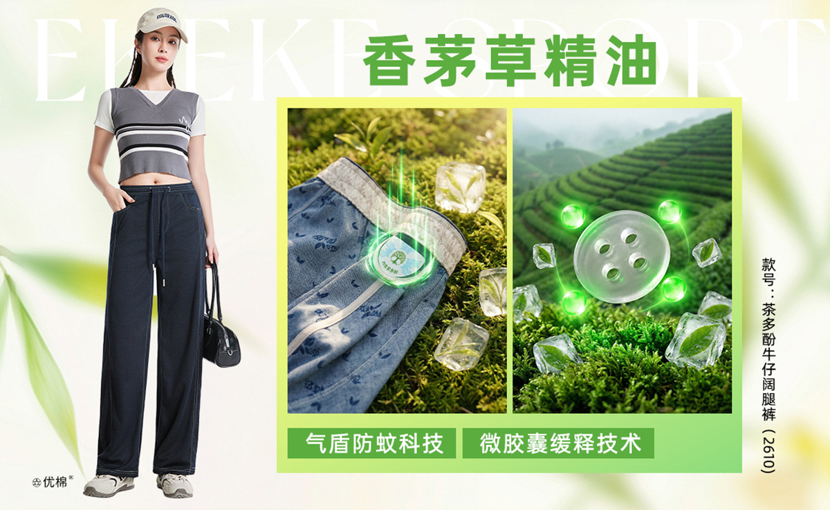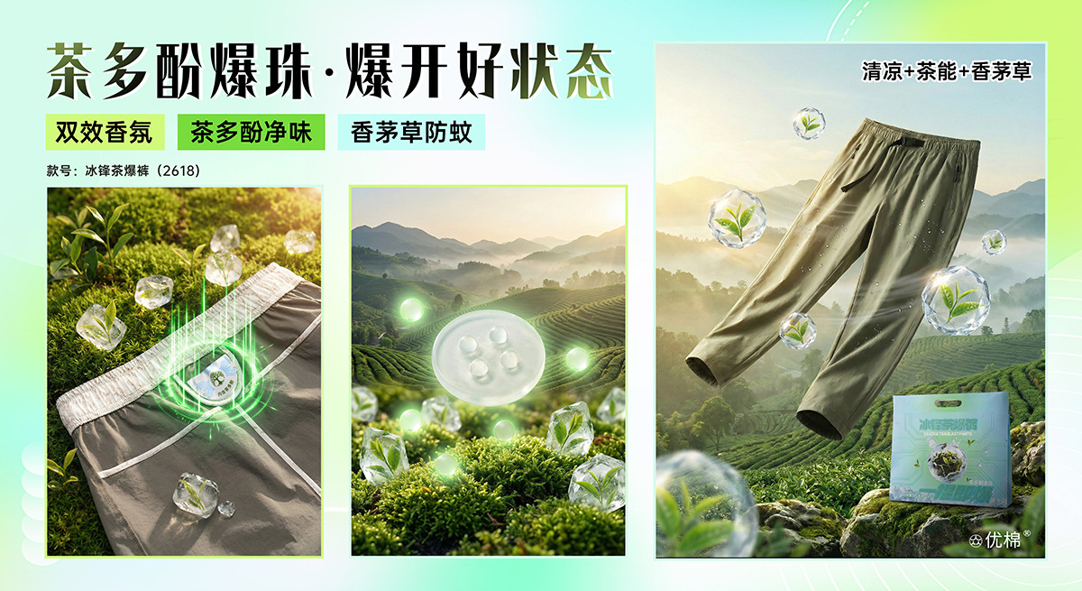 【茶多酚+香茅草精油 防泼水防晒防蚊 COOL冰峰纱线】众优棉即感清凉茶氧裤集合