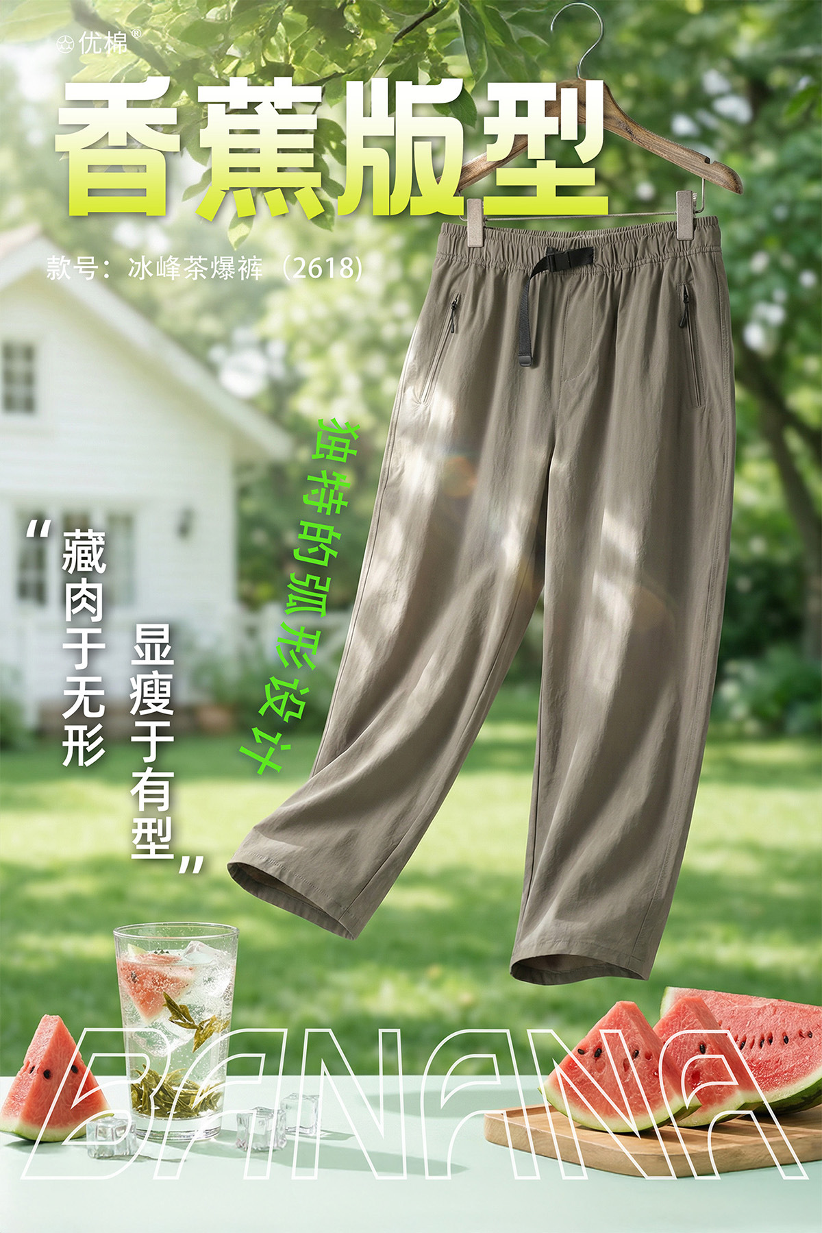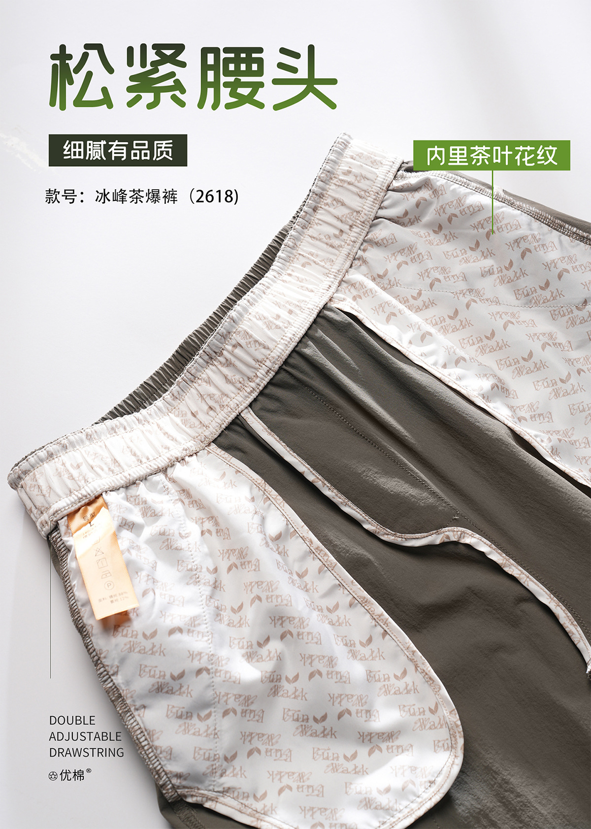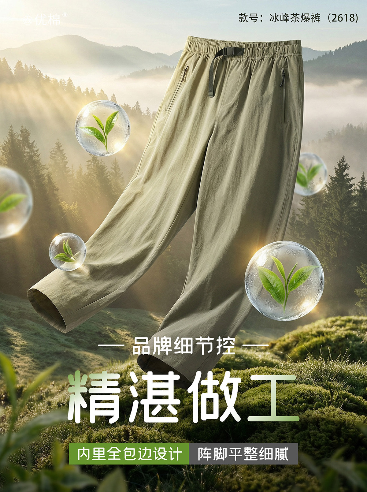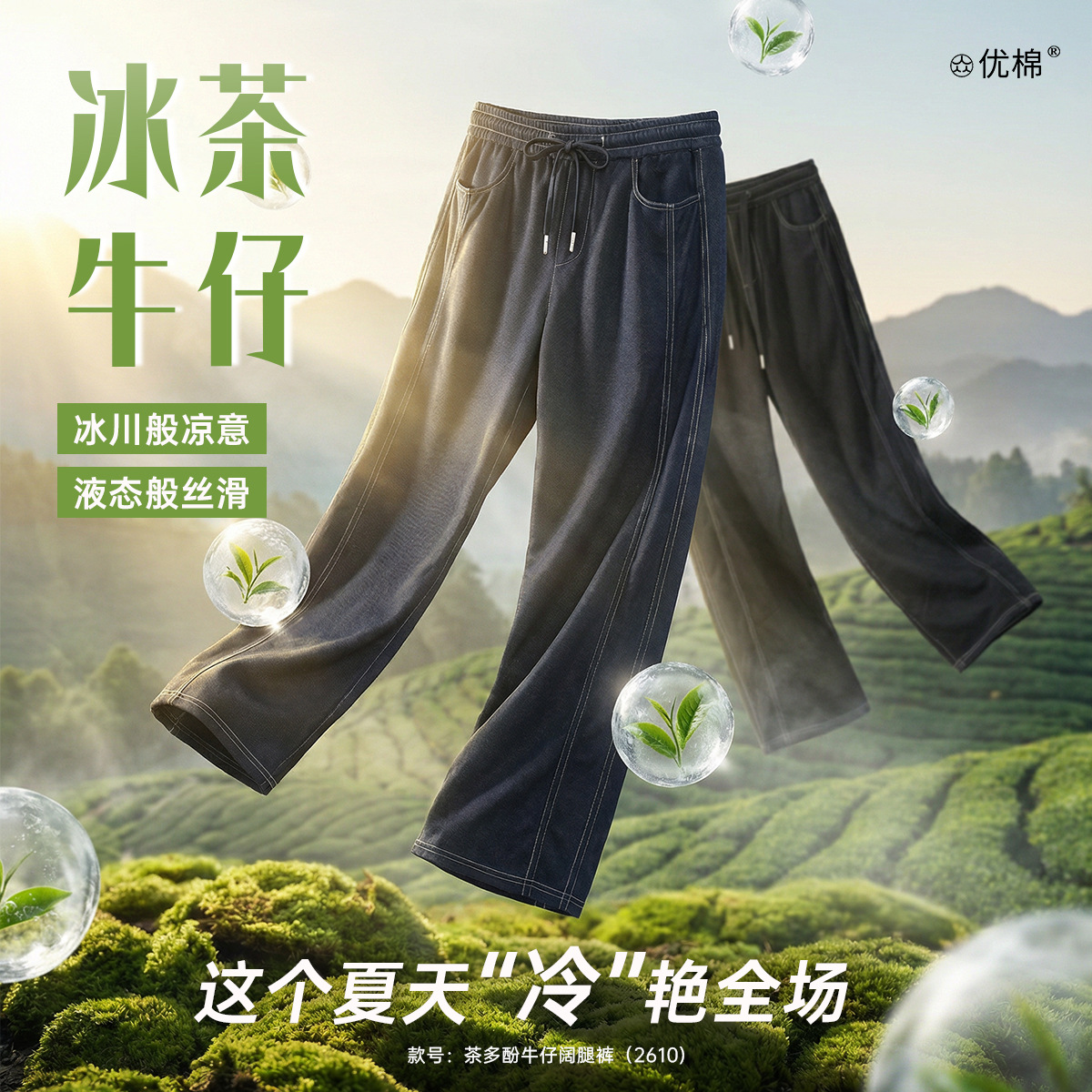 【茶多酚+香茅草精油 防泼水防晒防蚊 COOL冰峰纱线】众优棉即感清凉茶氧裤集合