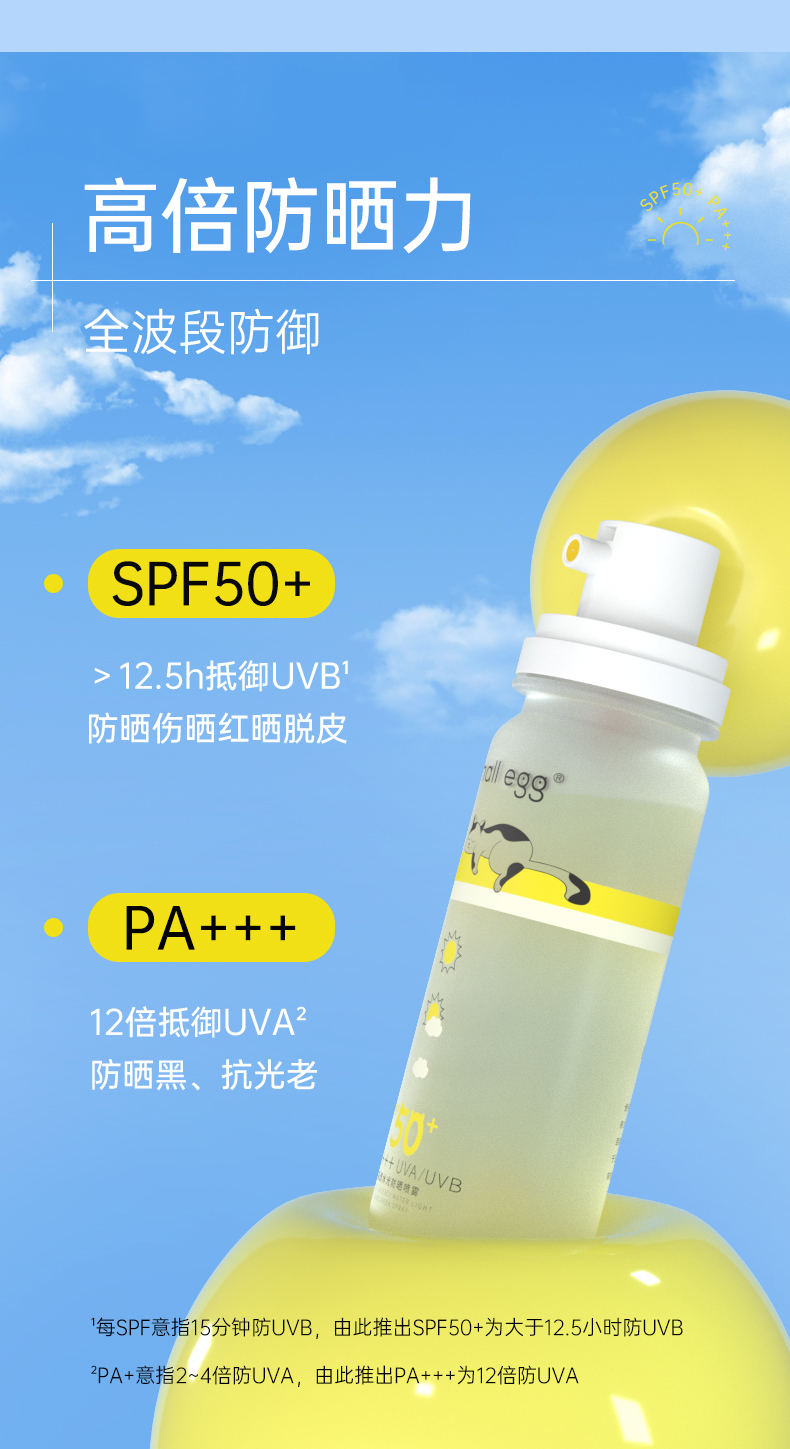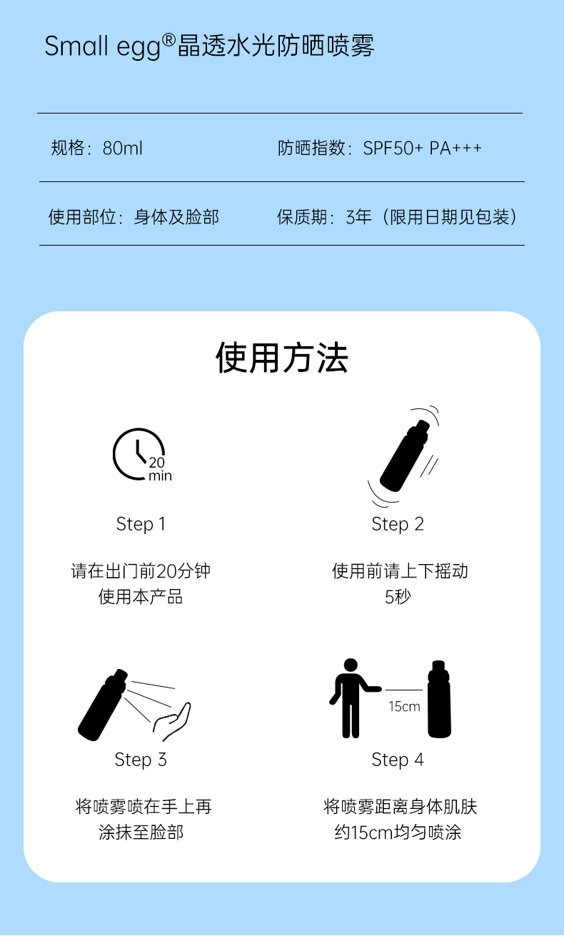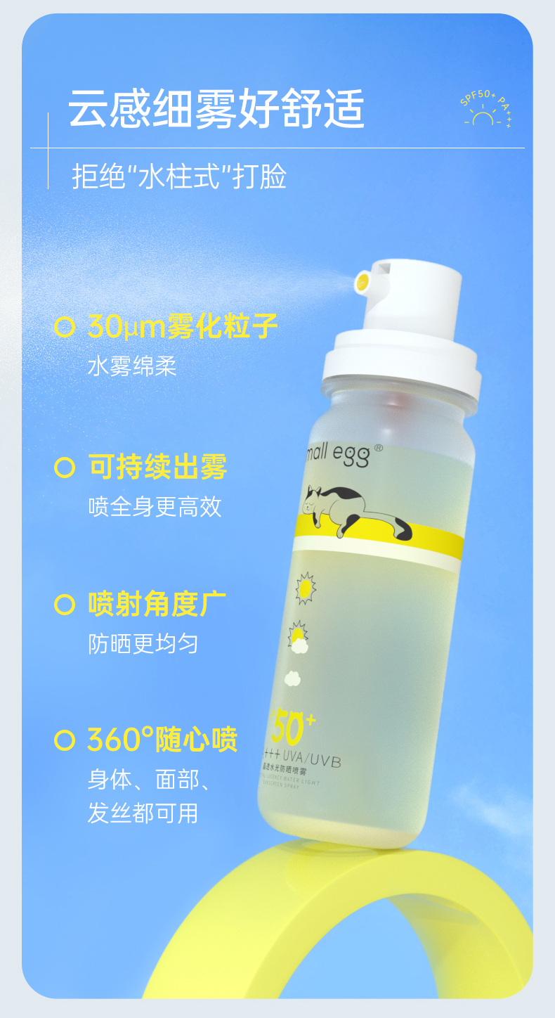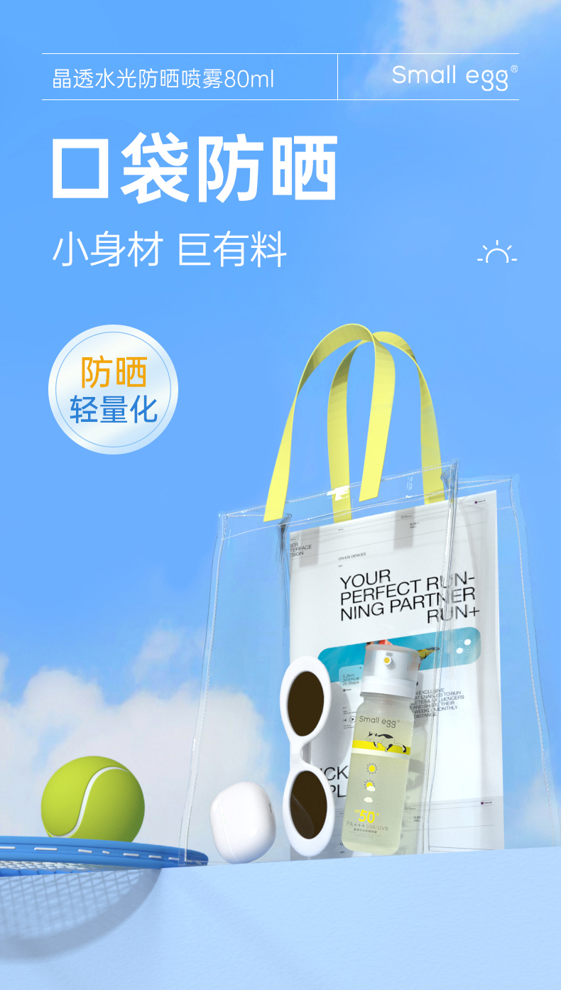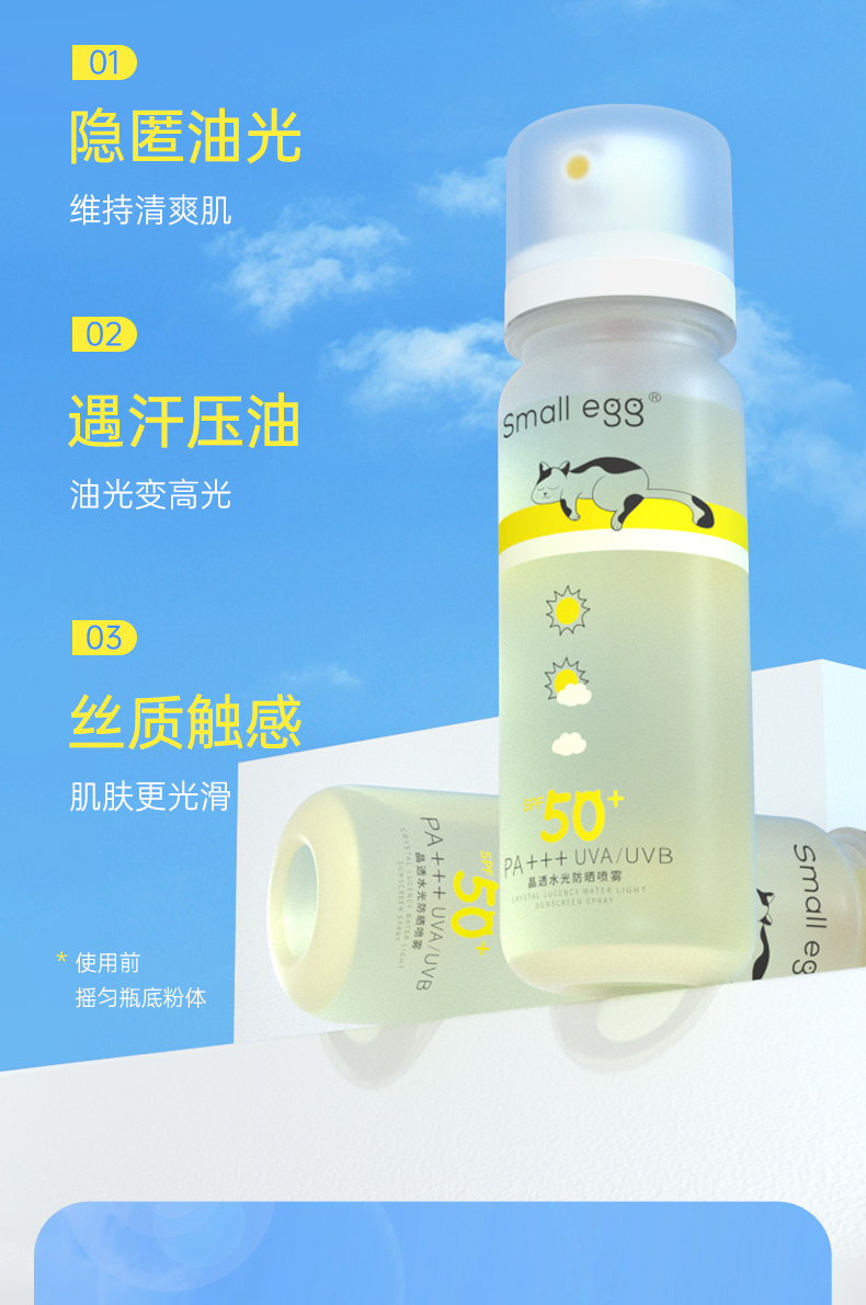 Small egg小鸡蛋防晒水 晶透水光防晒喷雾 清爽 轻柔不花妆 SPF50+ 80ml/瓶(购买3瓶赠送挂绳+香片)