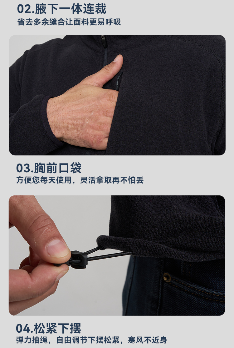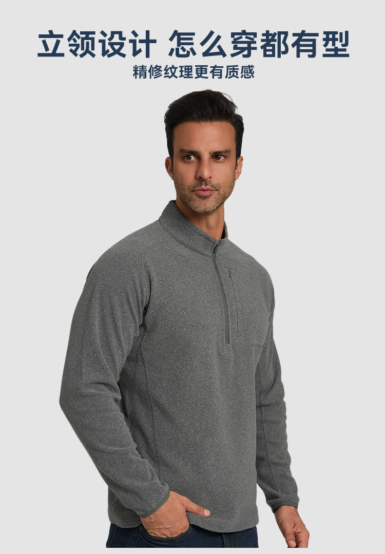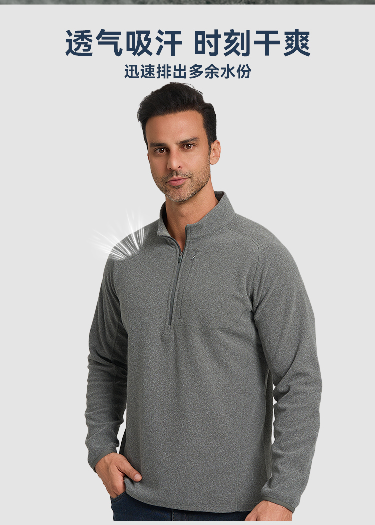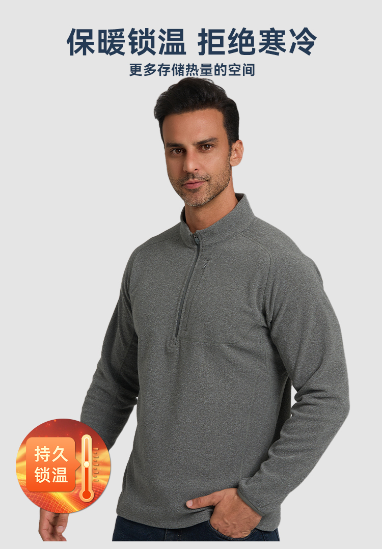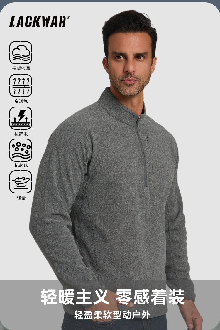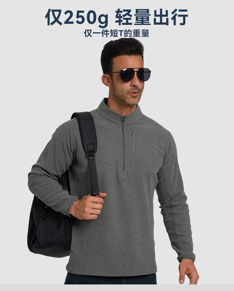 【仅250g 亲肤抗静电 轻暖战术】云裹L2级阳离子半拉链户外高弹打底衫抓绒 ds(zb)