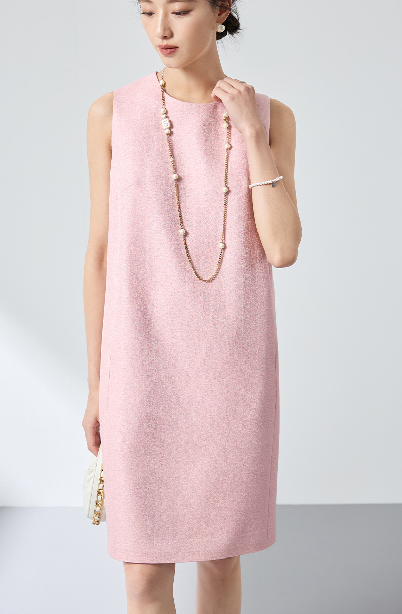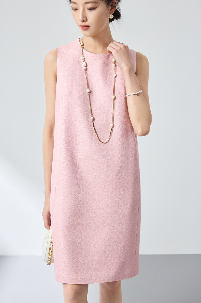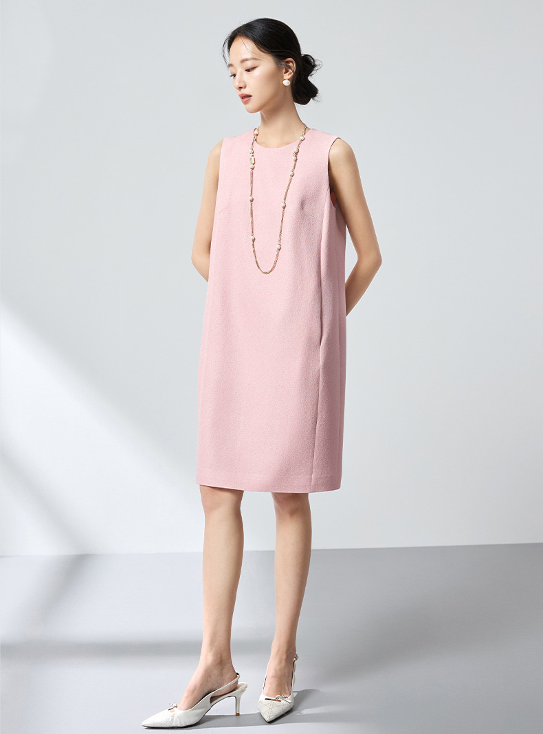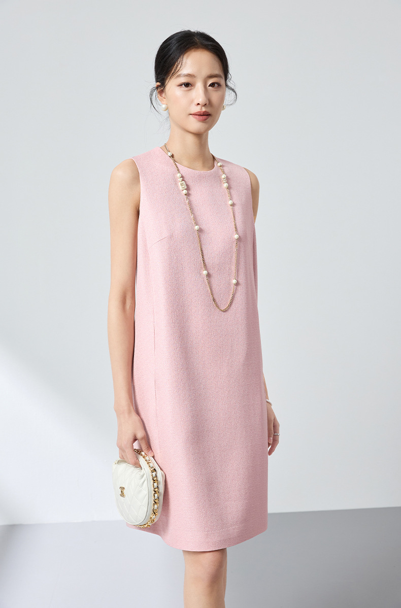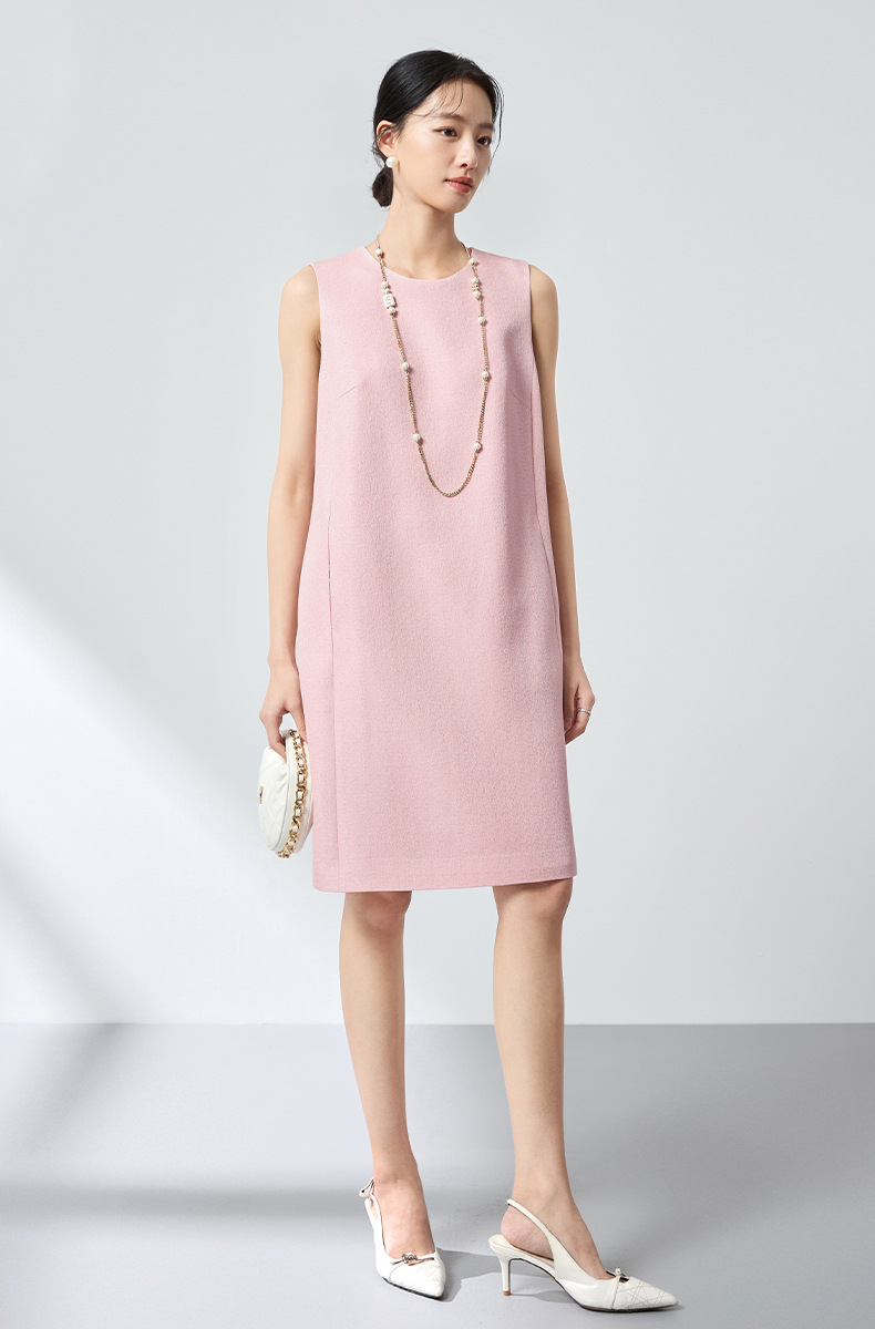QS原创绵羊毛温柔减龄连衣裙26春新款无袖长裙淡粉气质显瘦百搭2835