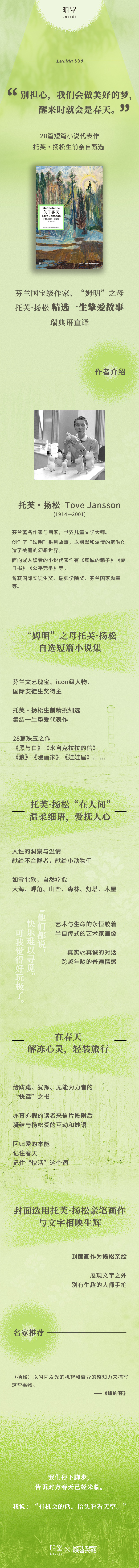 关于春天:托芙・扬松短篇自选集 |“姆明” 之母、芬兰国宝级作家托芙・扬松亲选一生挚爱代表作,给踌躇、犹豫、无能为力者的 “快活” 之书