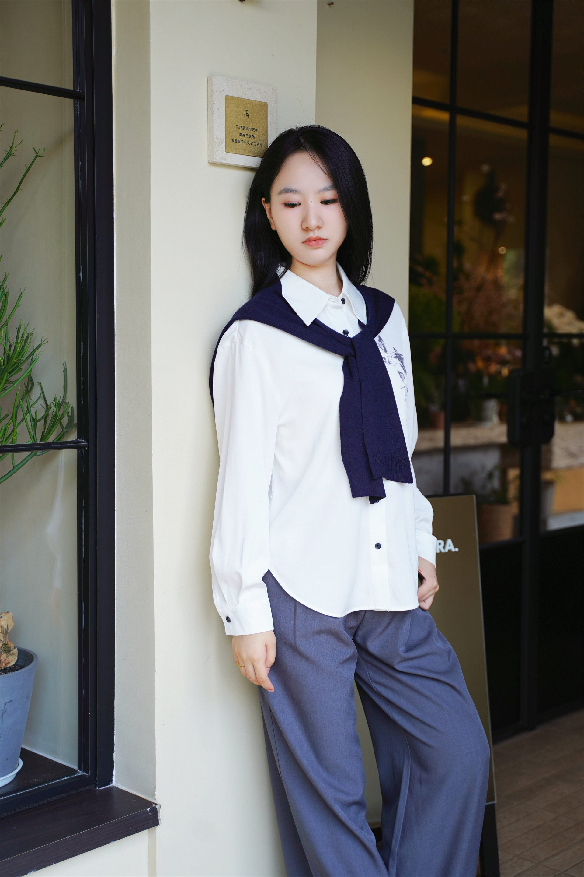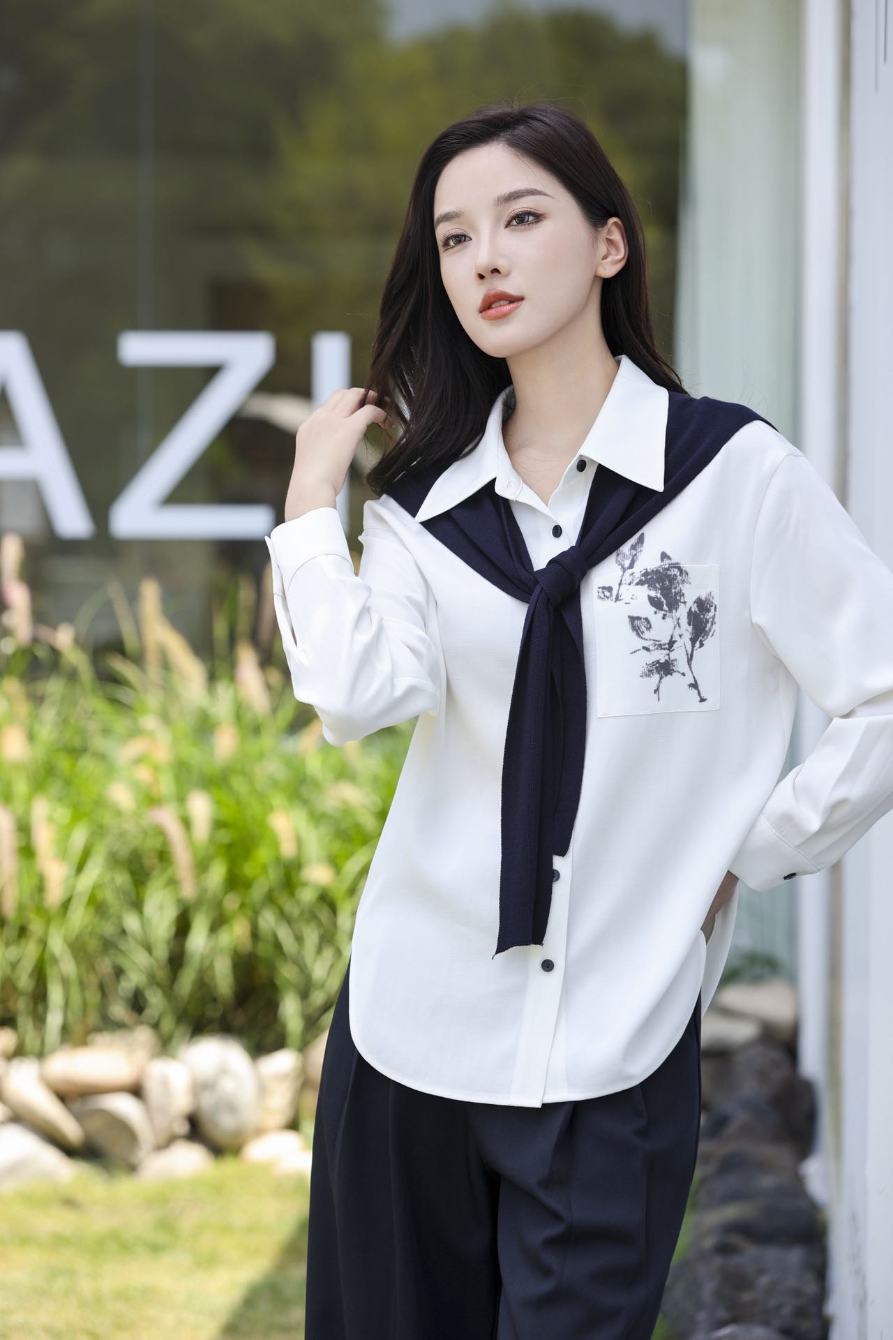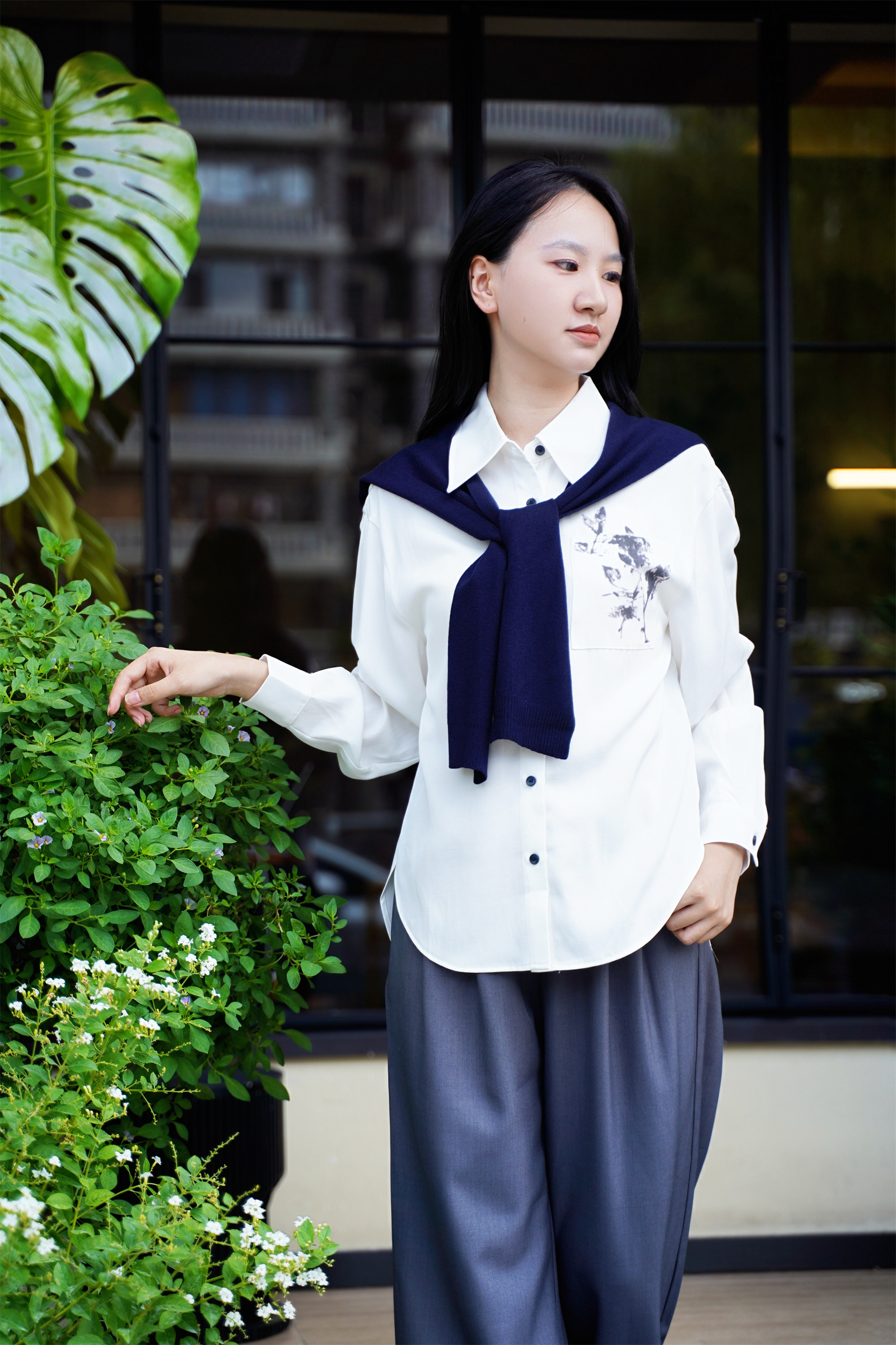 略宽松衬衫+可拆卸针织披肩=1+1>2的搭配王炸💥