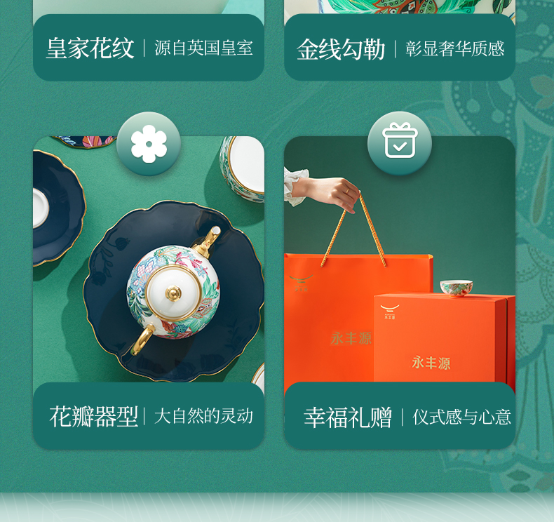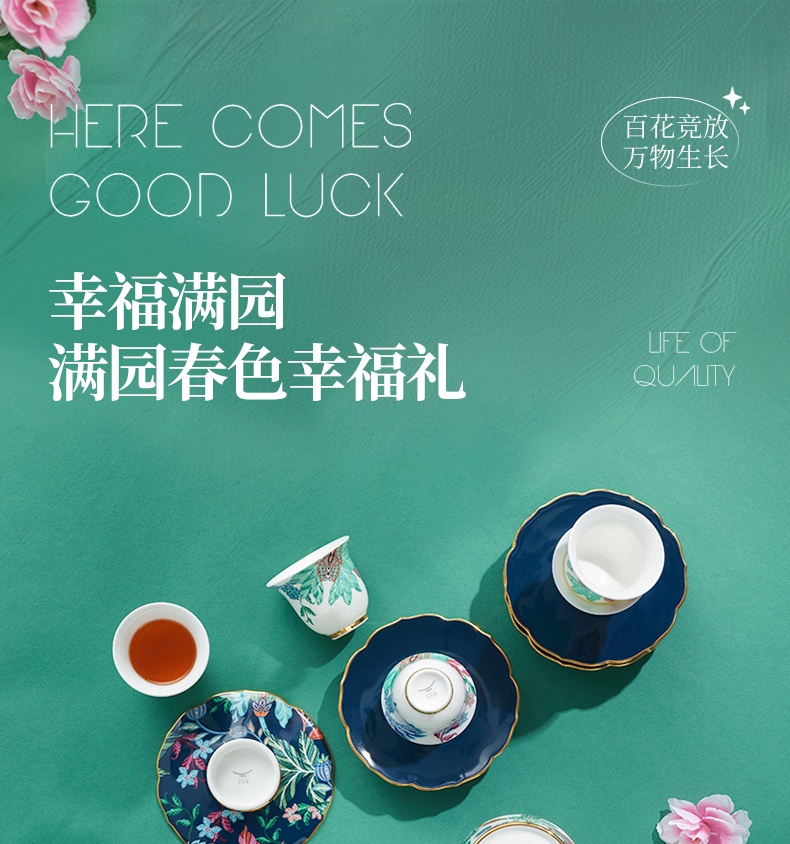 【彼达思】永丰源 幸福礼 幸福满园 2人位6头茶具 轻奢茶礼