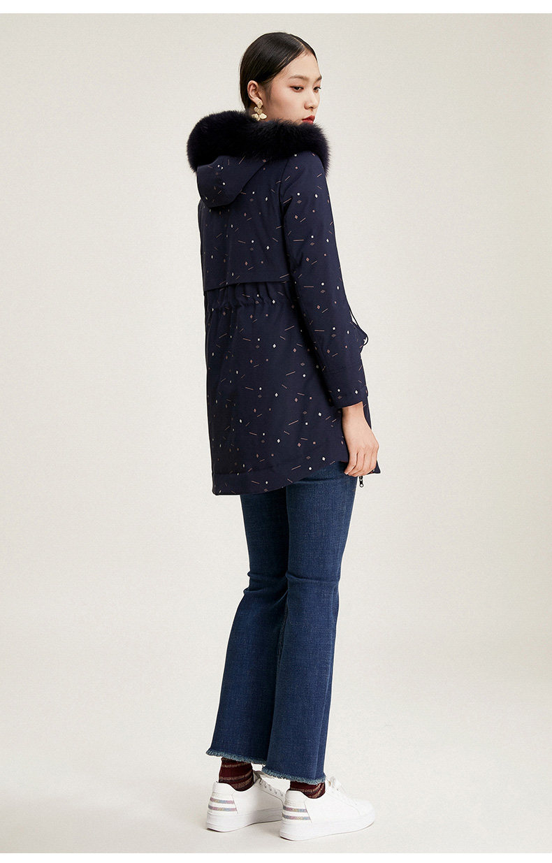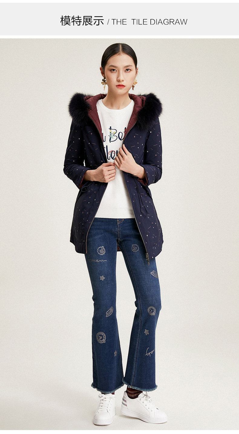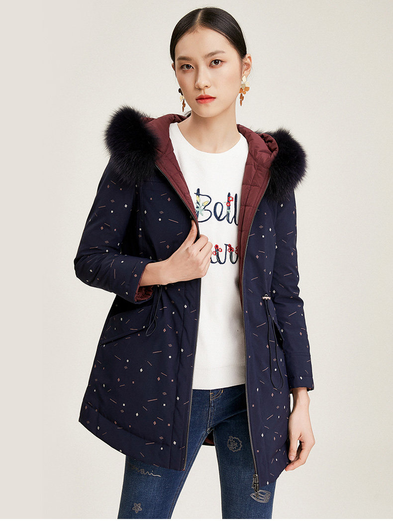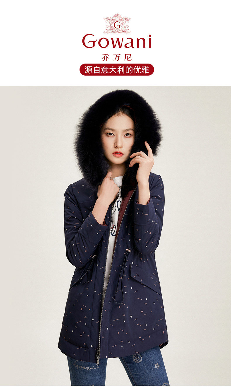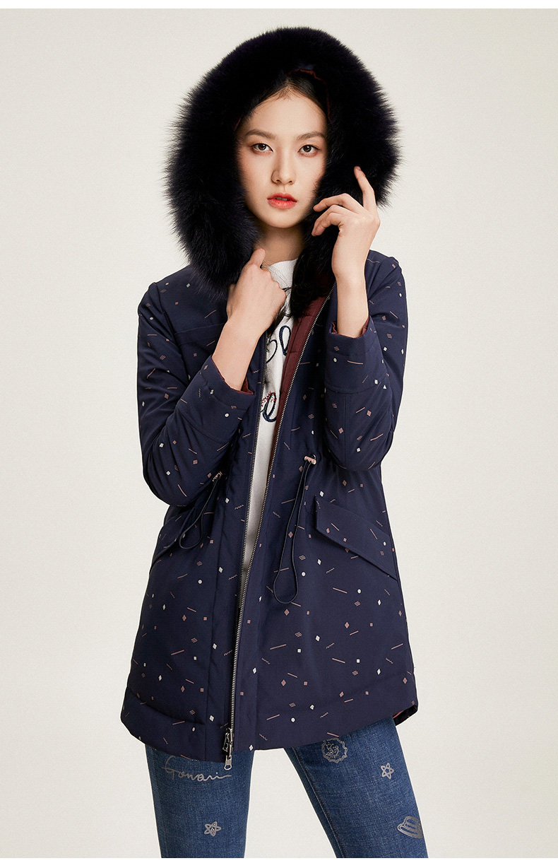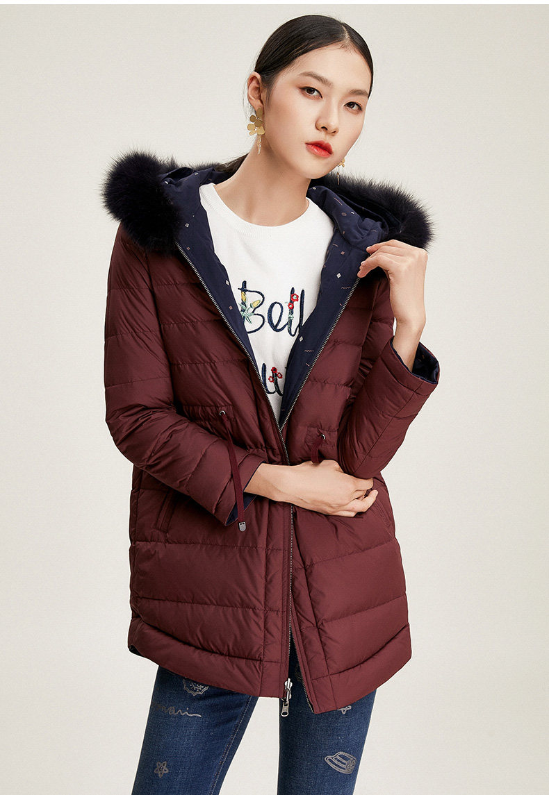 乔万尼白鸭绒休闲宽松双面羽绒服冬季连帽保暖外套女EN4T746
