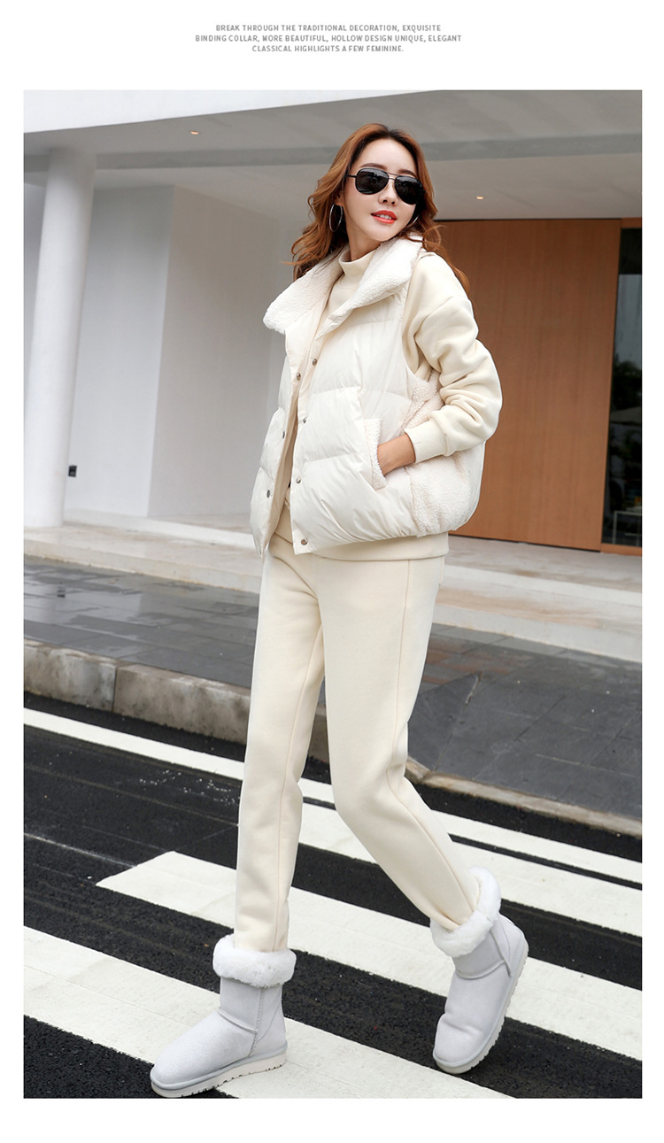 SP-LJF6298255新款时尚洋气加绒加厚半高领长袖卫衣马甲裤子三件套