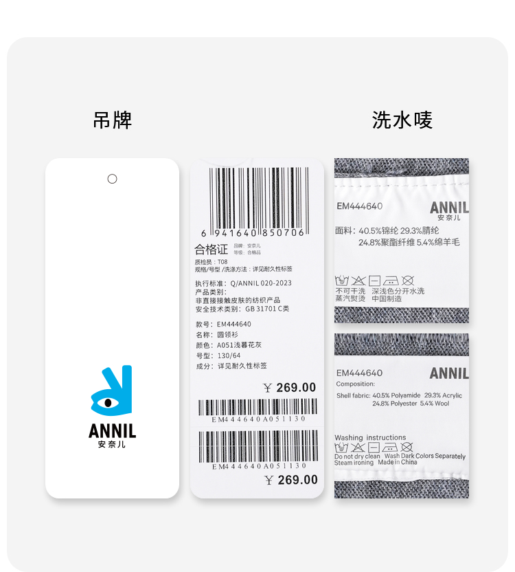男童女童圆领衫冬季新款安奈儿童装EM444640