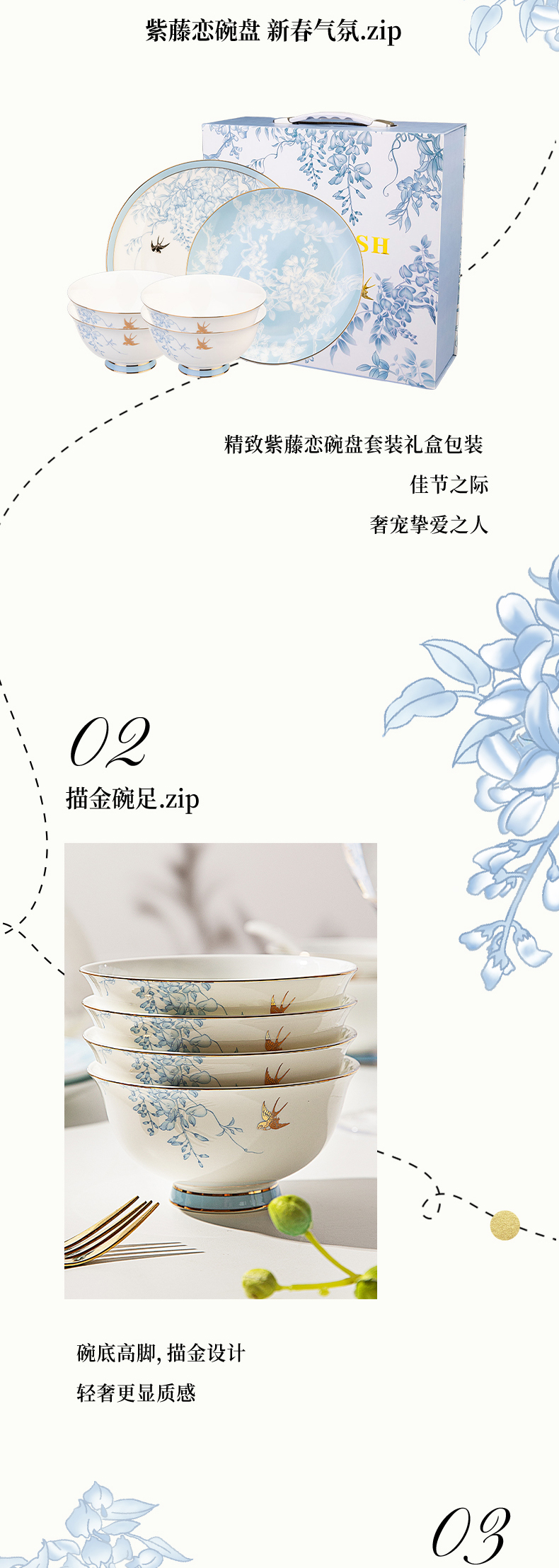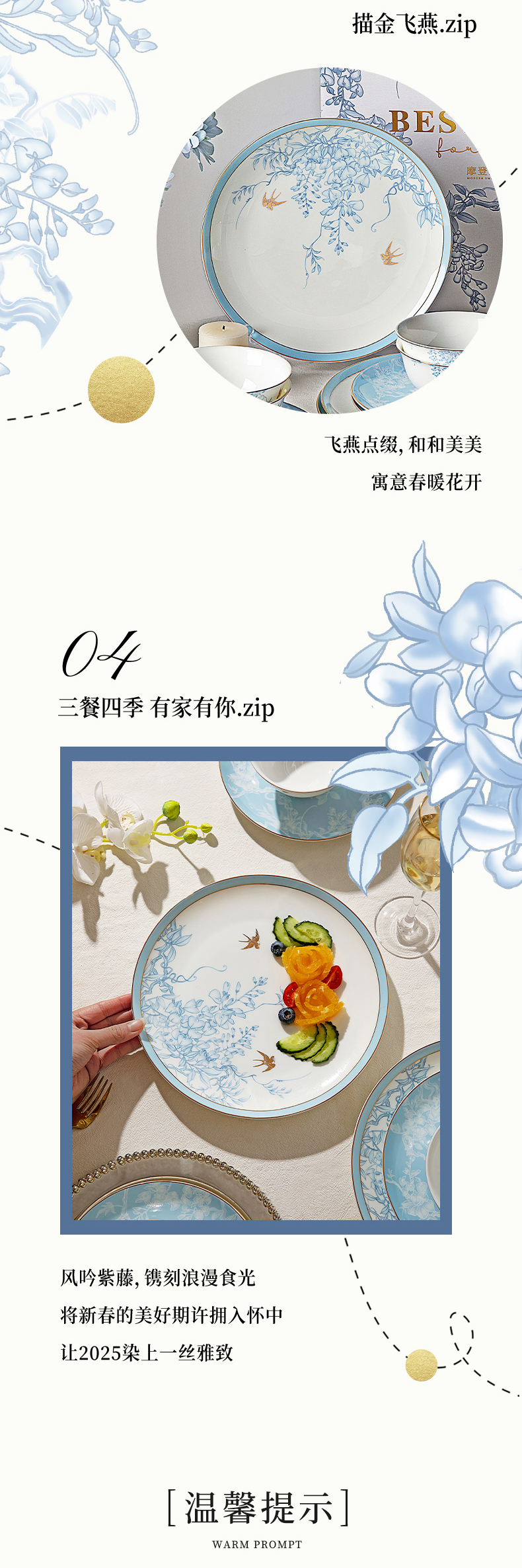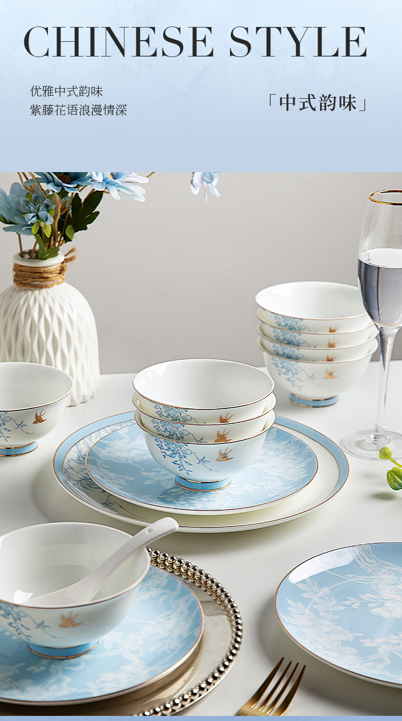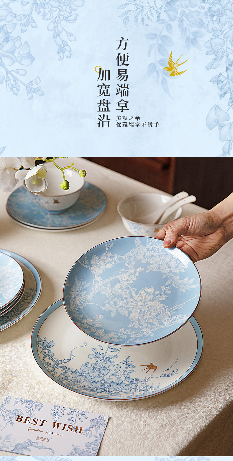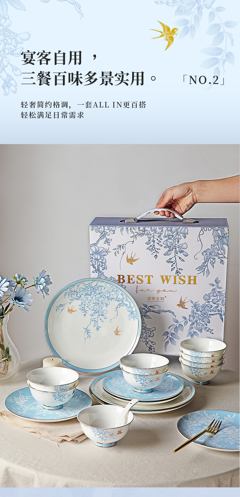 摩登主妇 高级感菜盘子家用乔迁新居碗碟套装中式轻奢骨瓷餐具礼盒