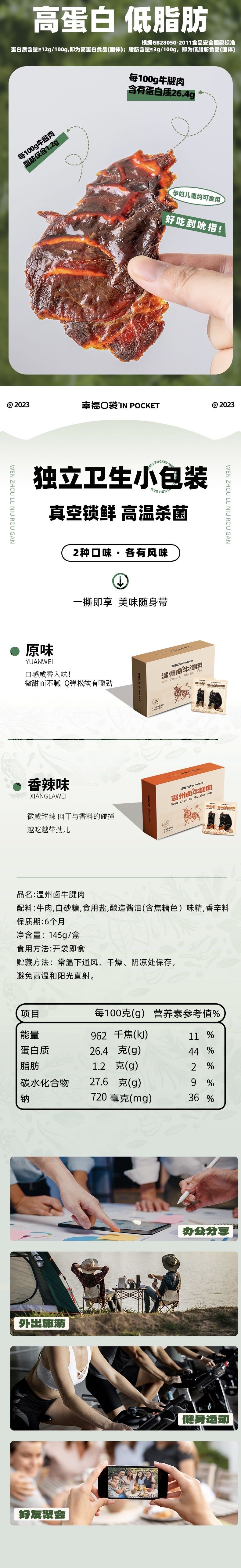 6.原味/香辣2个口味,原味;甜咸口味,口感咸香入味!Q弹松软有嚼劲;香辣味:咸香甜辣混合牛腱肉的Q弹口感,越嚼越香。