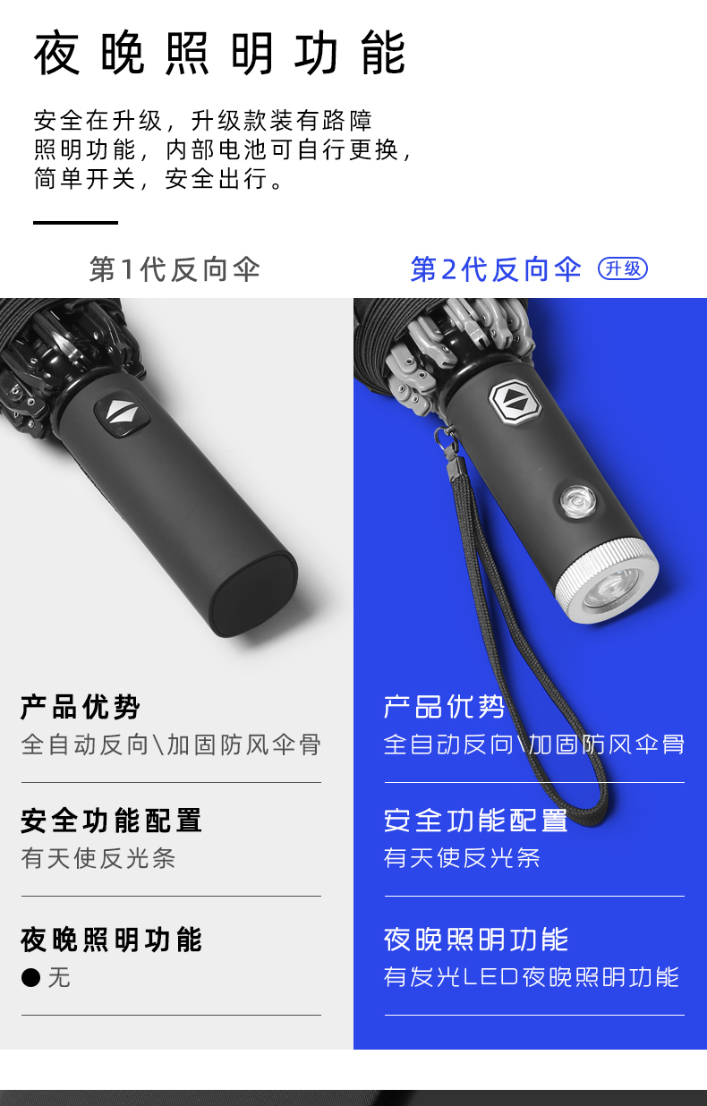 【一甩即干 黑胶防晒 LED照明】升级款全自动晴雨伞