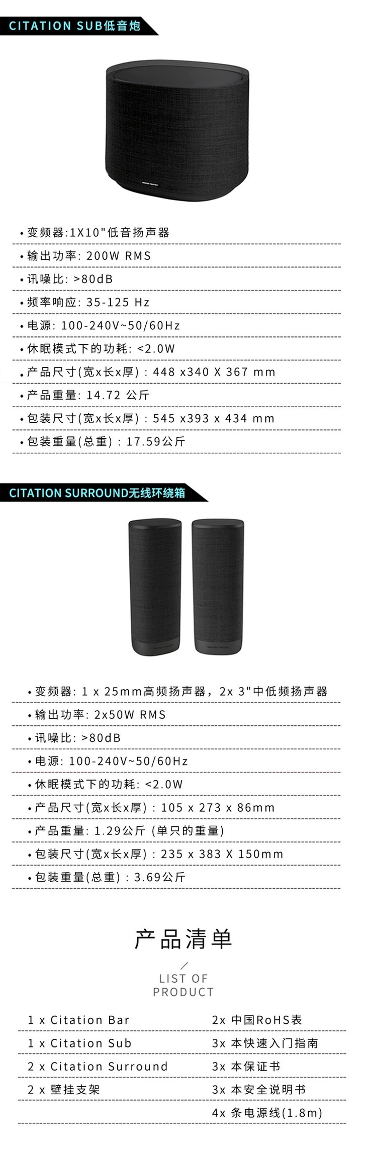哈曼卡顿harman/kardon Citation5.1套装无线蓝牙回音壁音响家