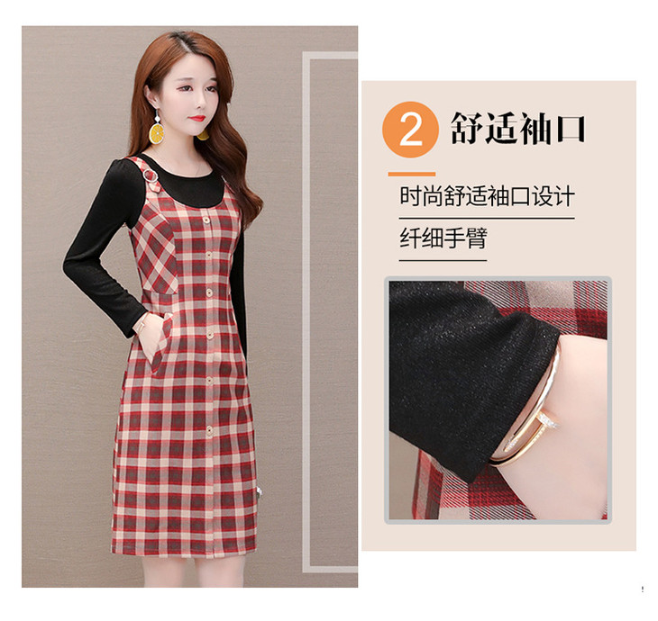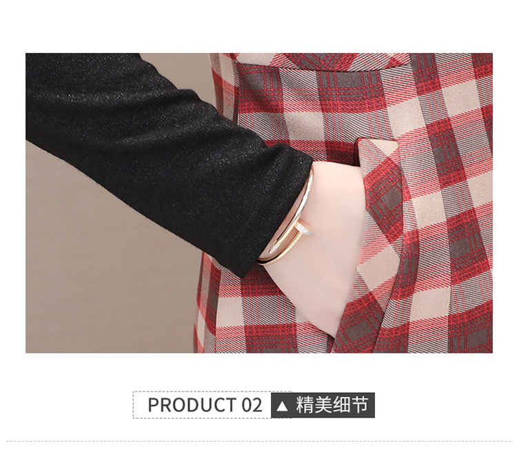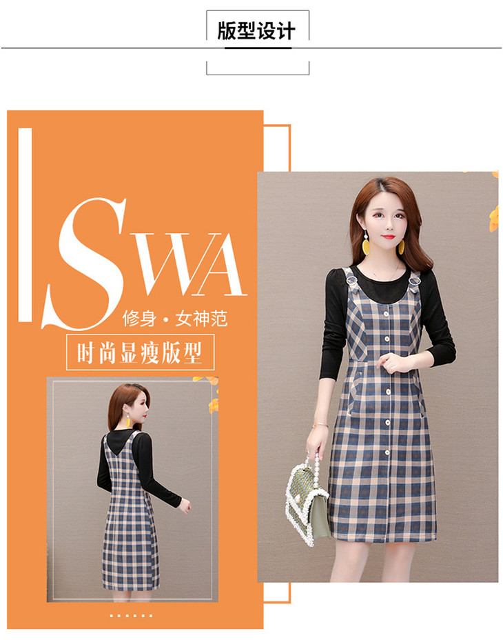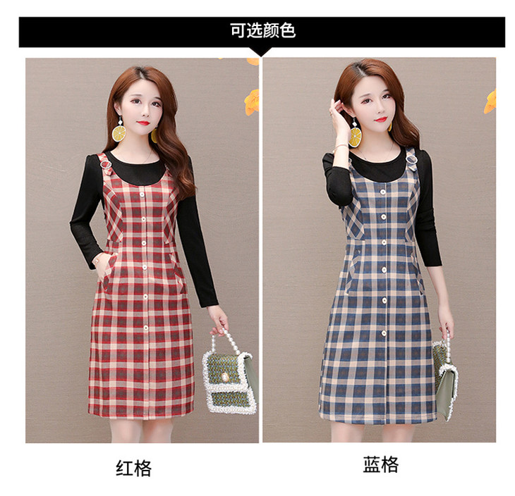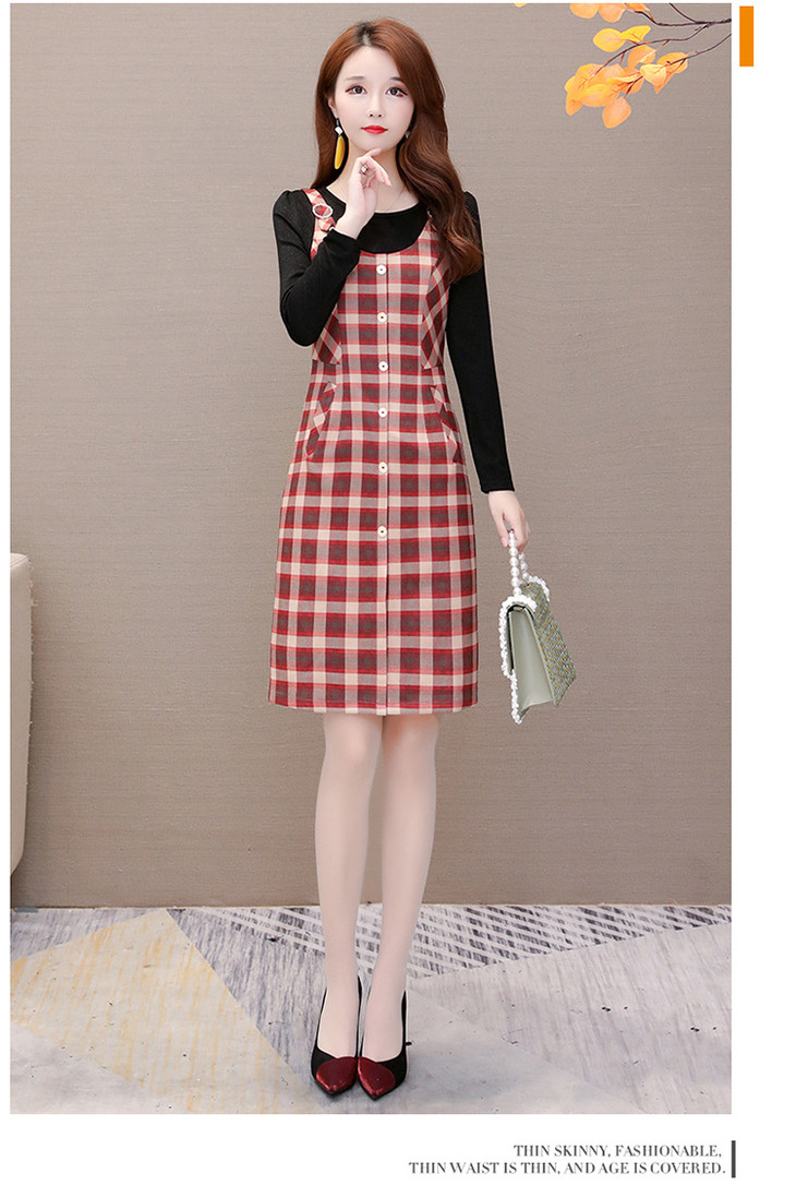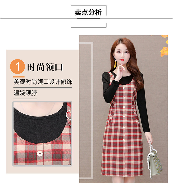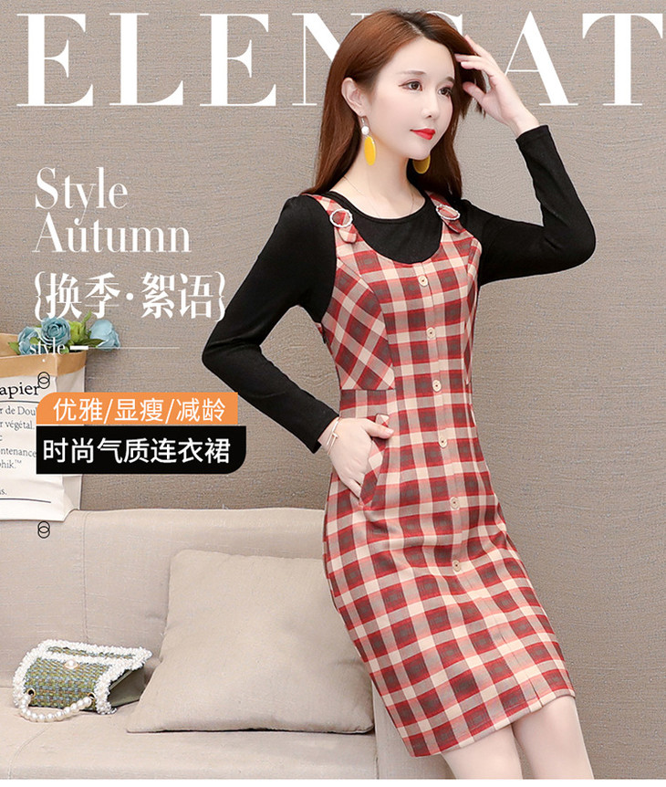 YWE-XH-ST19831秋装新款修身气质减龄时尚翻领格子连衣裙
