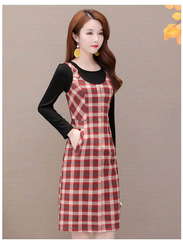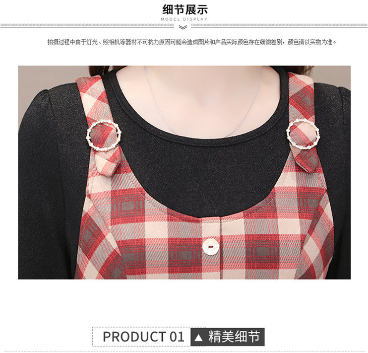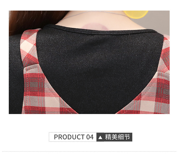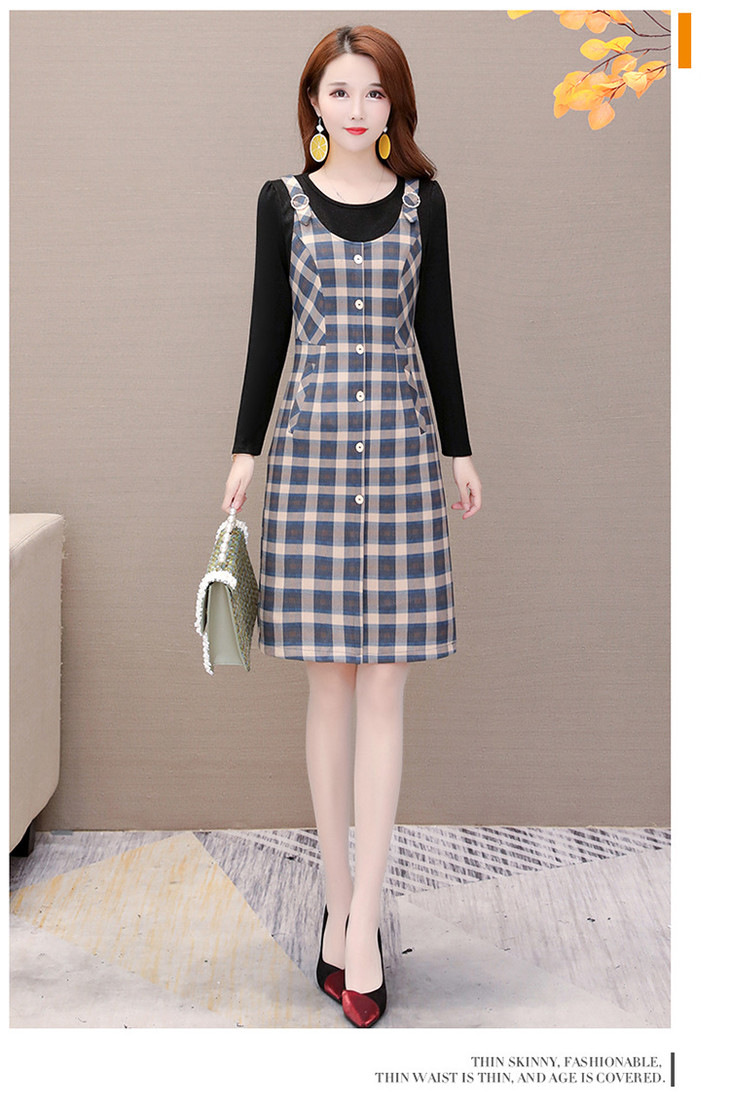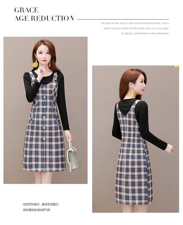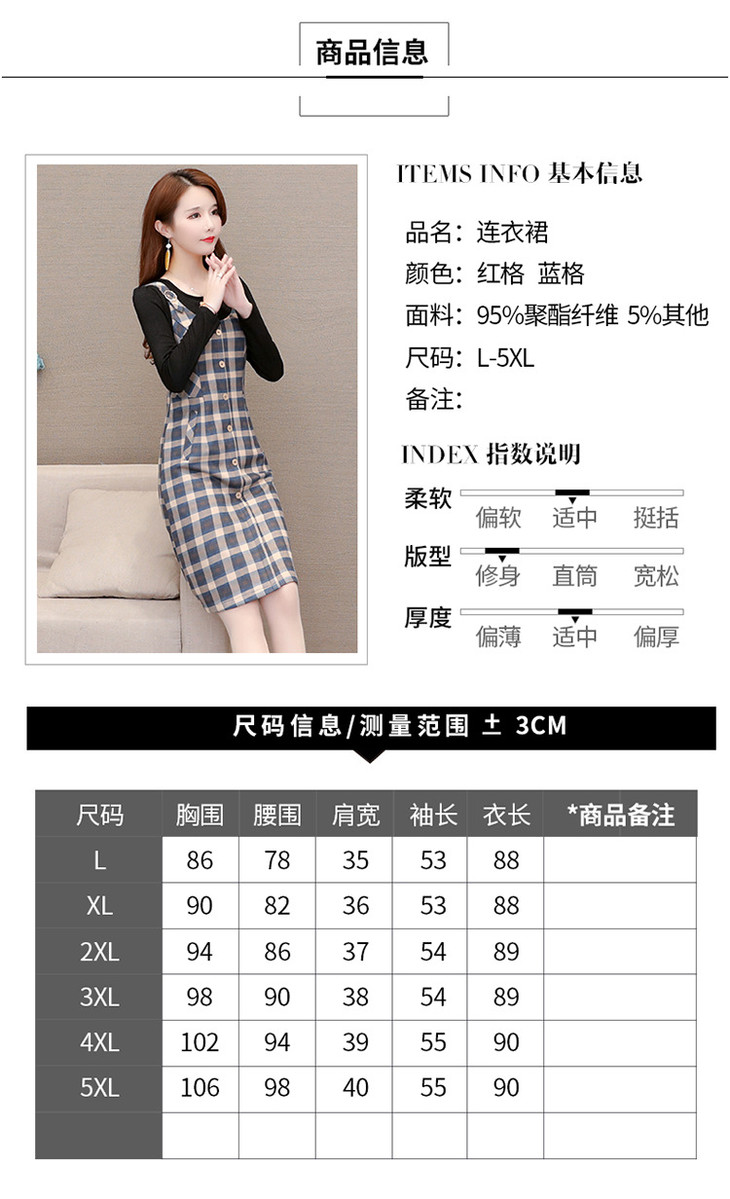 YWE-XH-ST19831秋装新款修身气质减龄时尚翻领格子连衣裙