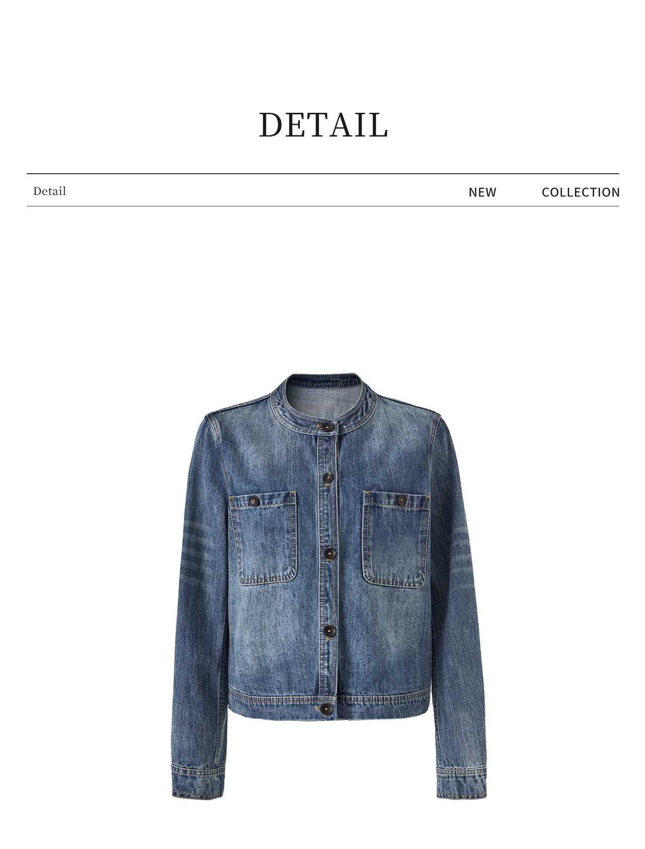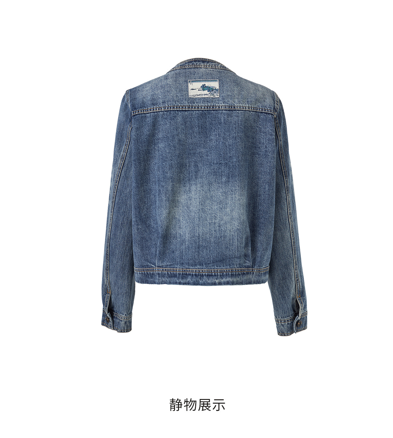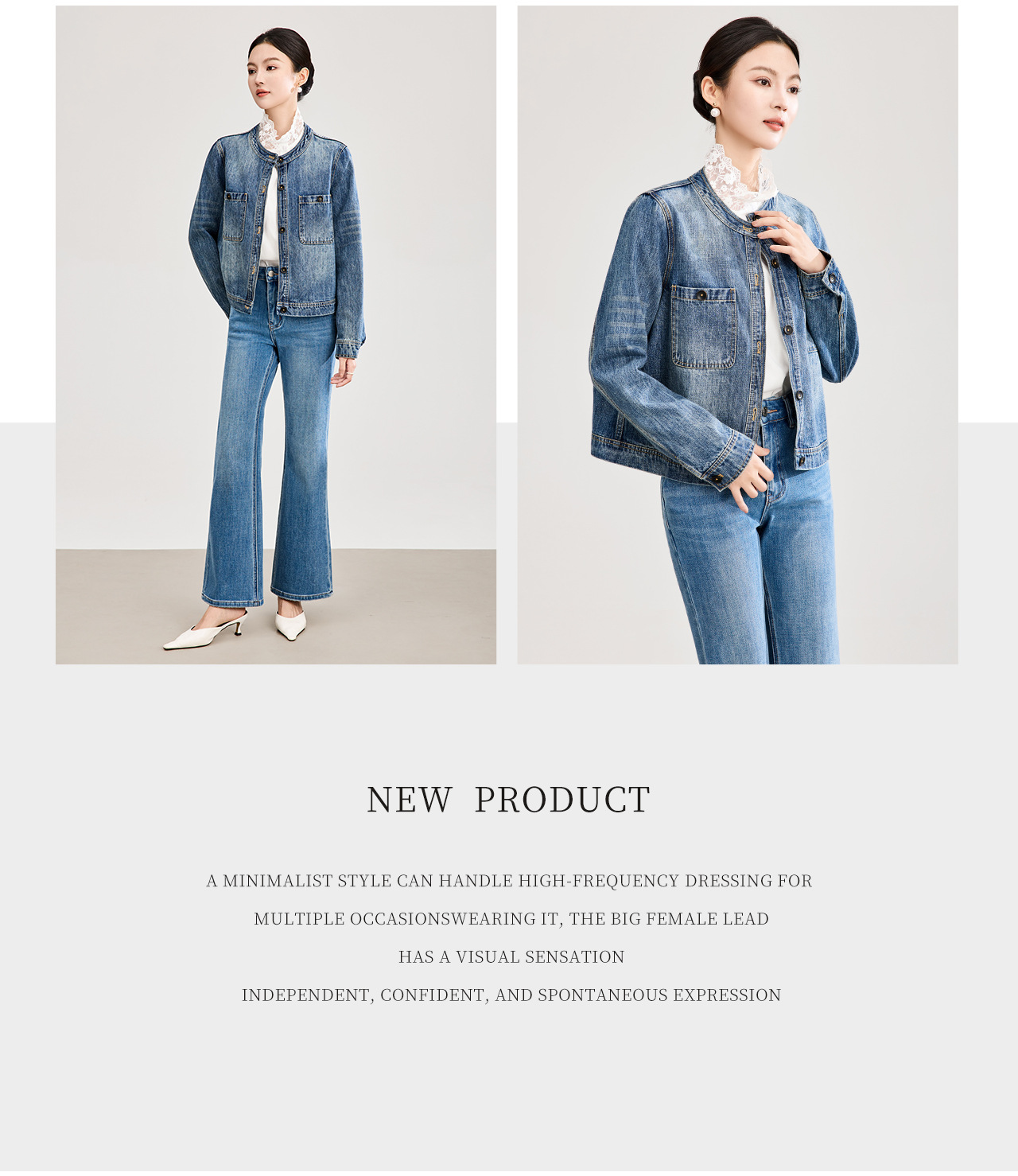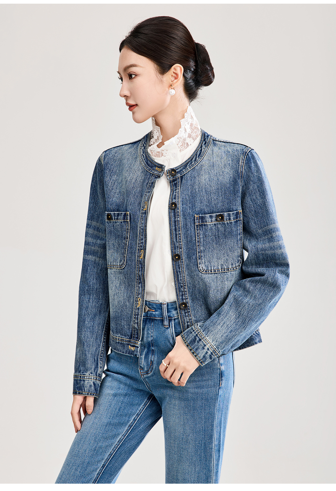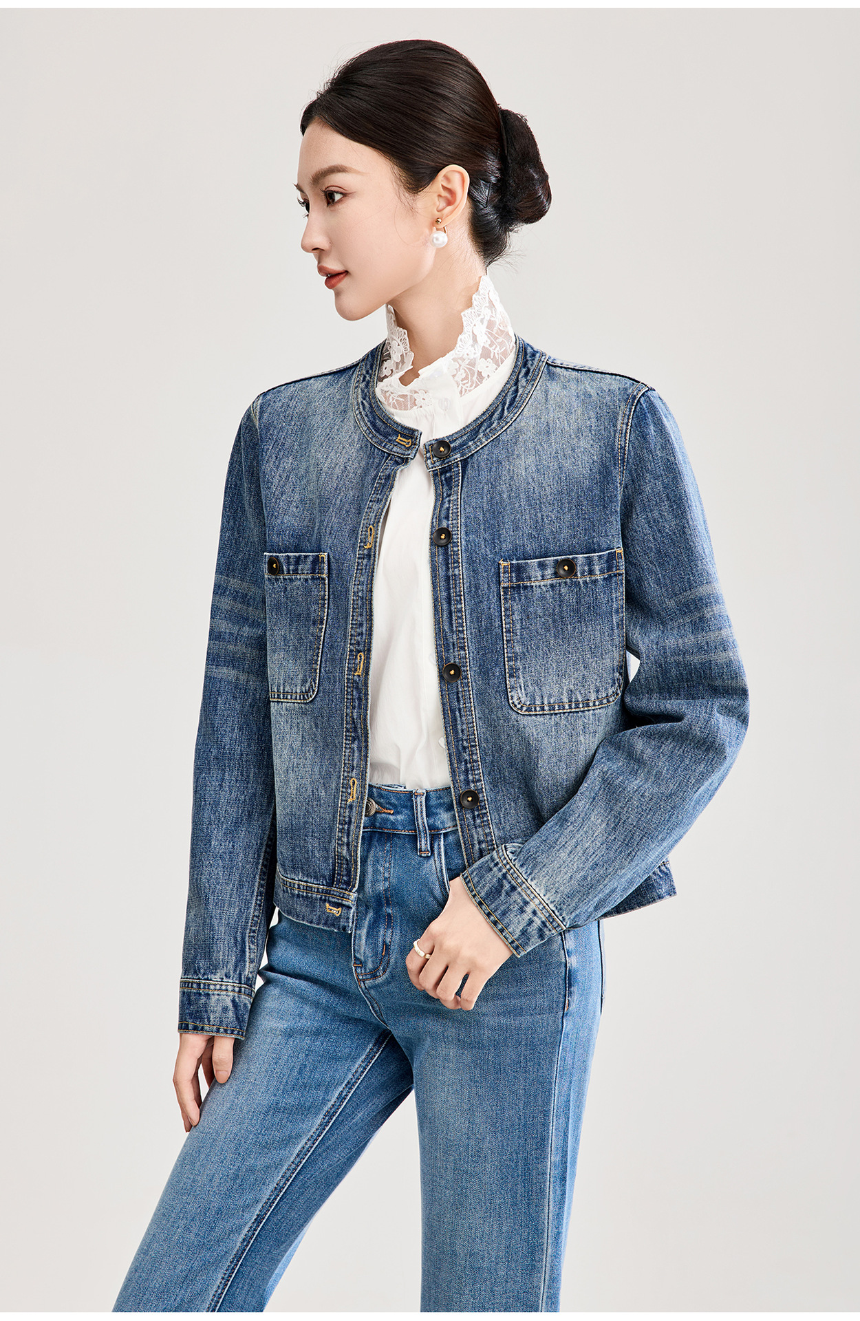 「高货wl」全新升级【铂金会员330/天猫449/差价119】(00936)洛诗琳复古丹宁风水洗棉圆领外套2026春夏新款通勤牛仔外套女