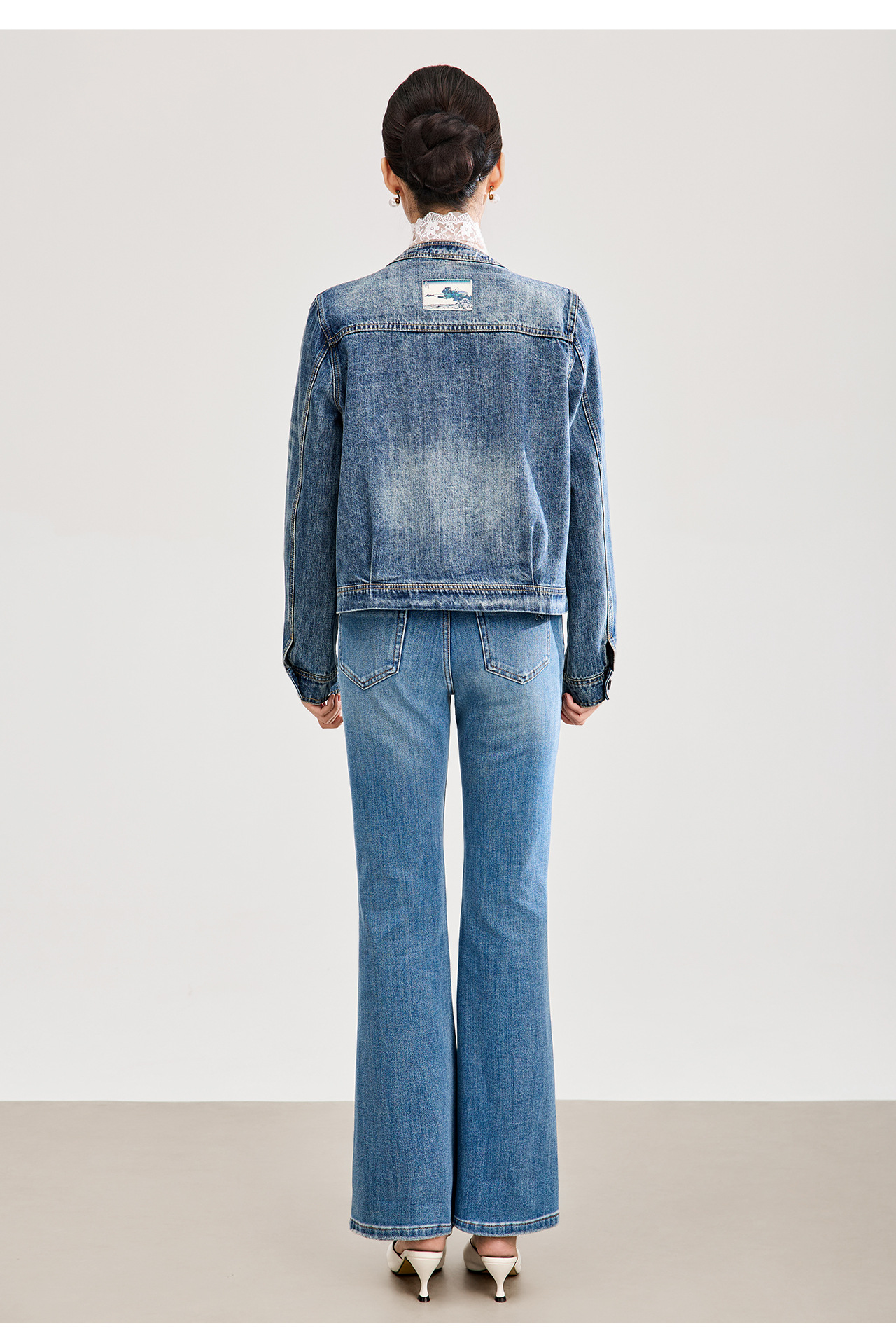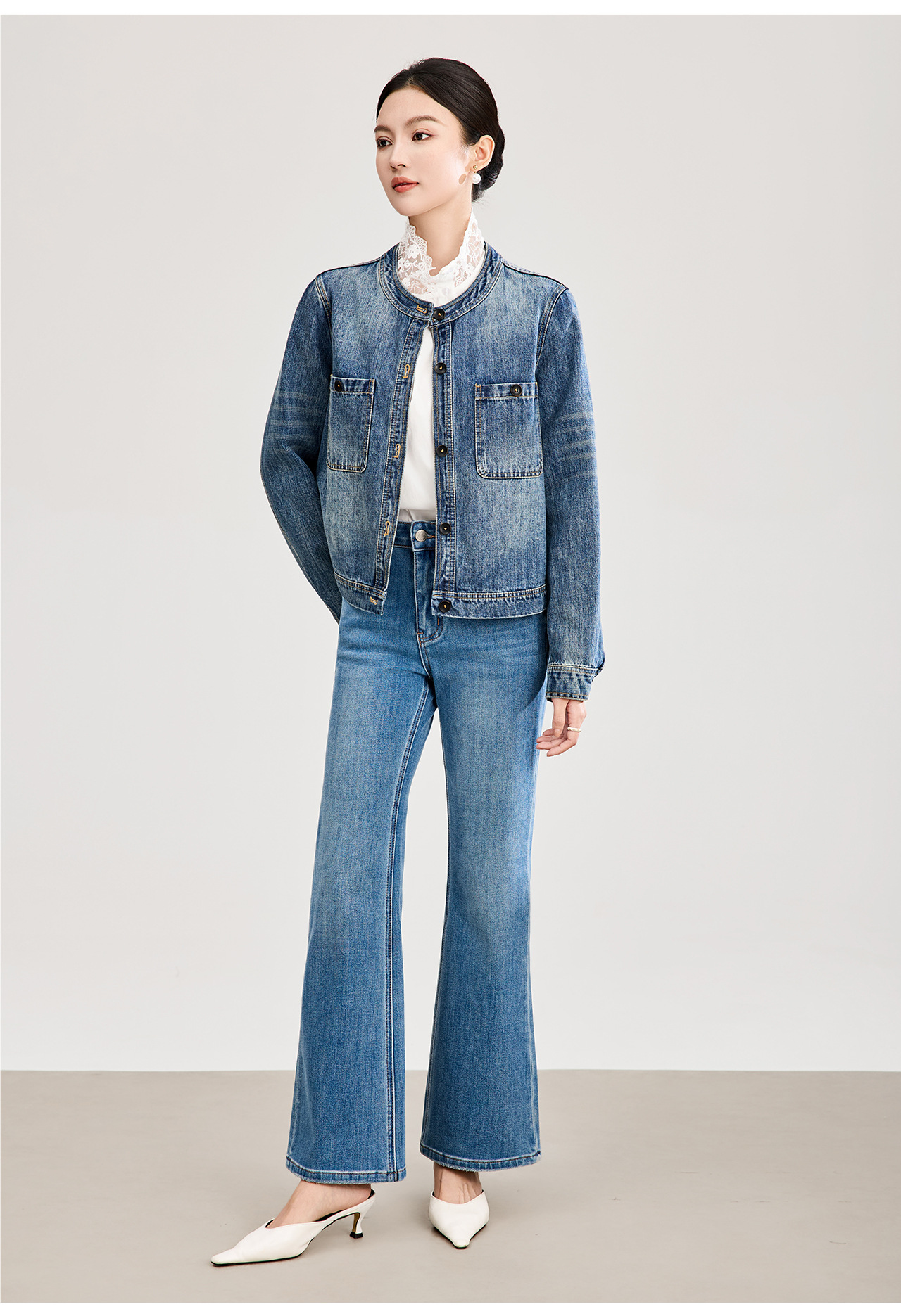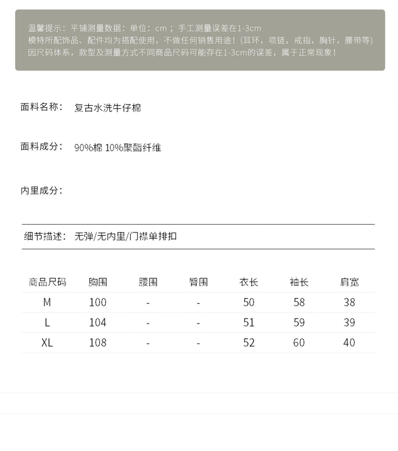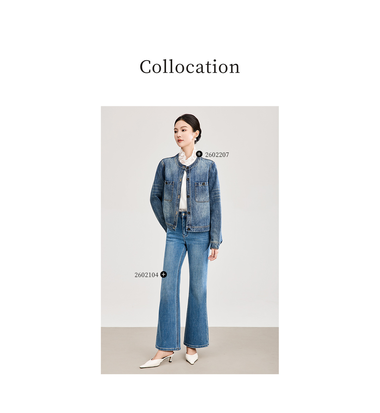 「高货wl」全新升级【铂金会员330/天猫449/差价119】(00936)洛诗琳复古丹宁风水洗棉圆领外套2026春夏新款通勤牛仔外套女