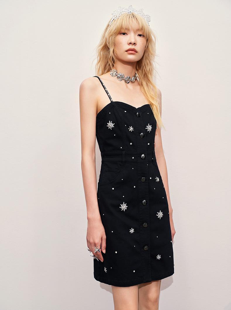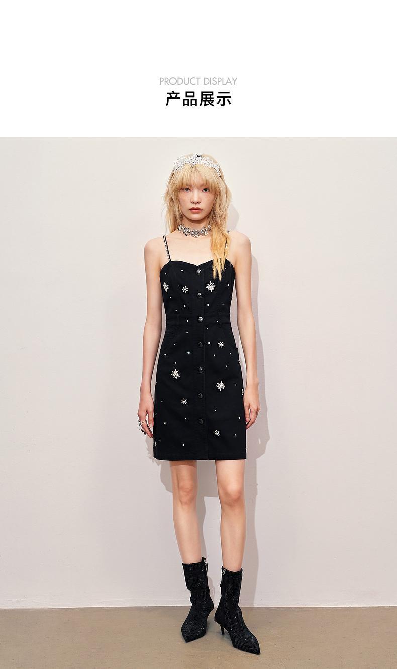MAXRIENY【银河精灵-商场同款】精致华丽感满钻吊带连衣裙显瘦法式(货号:MC85DR367)