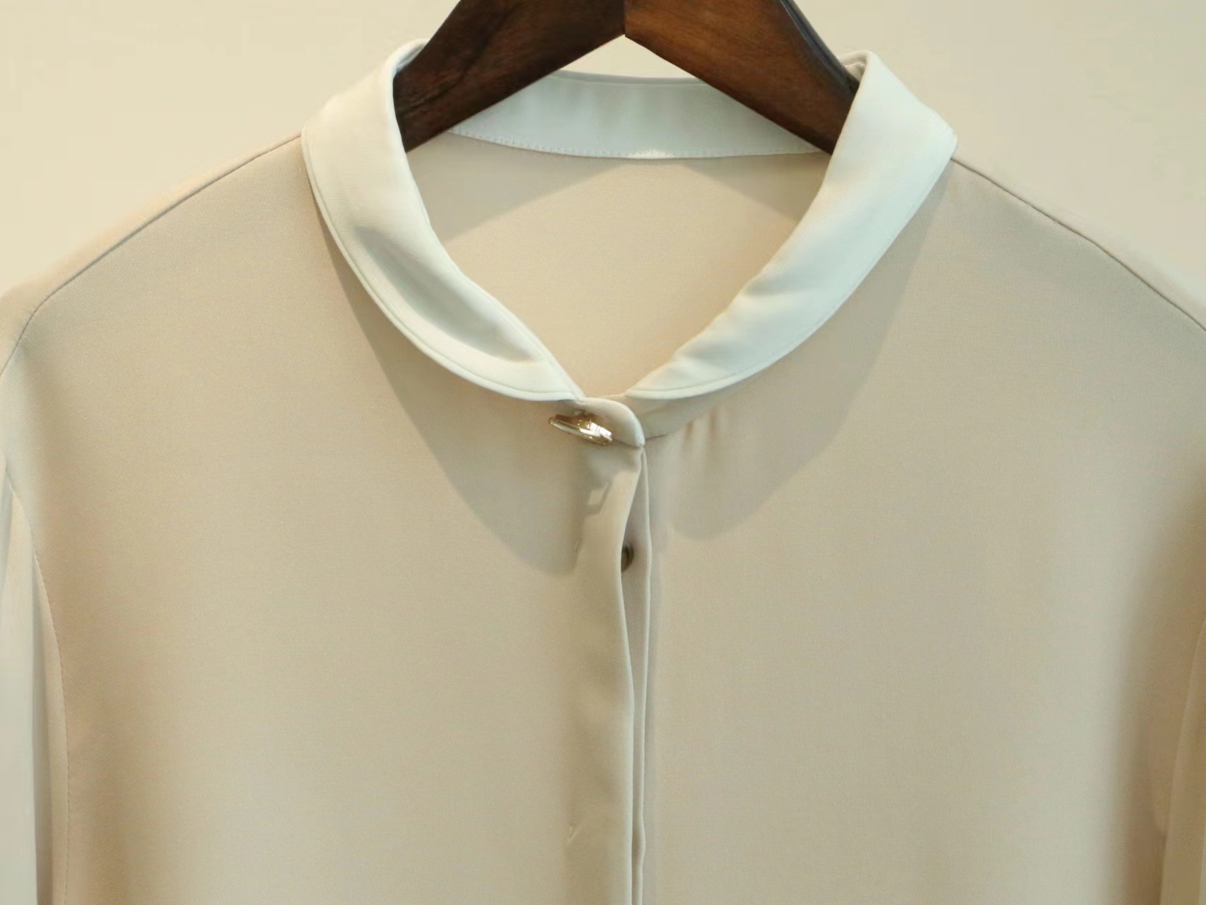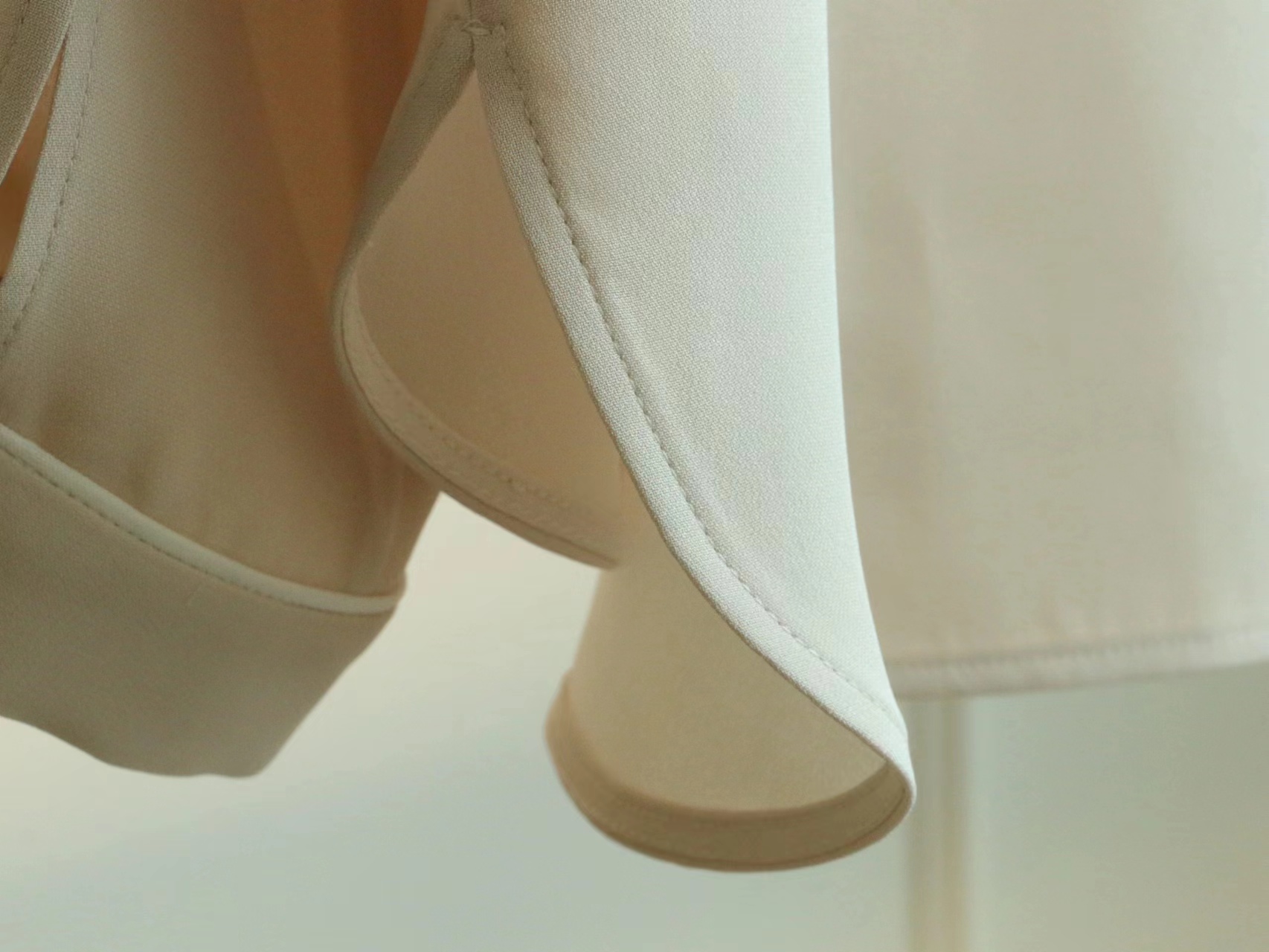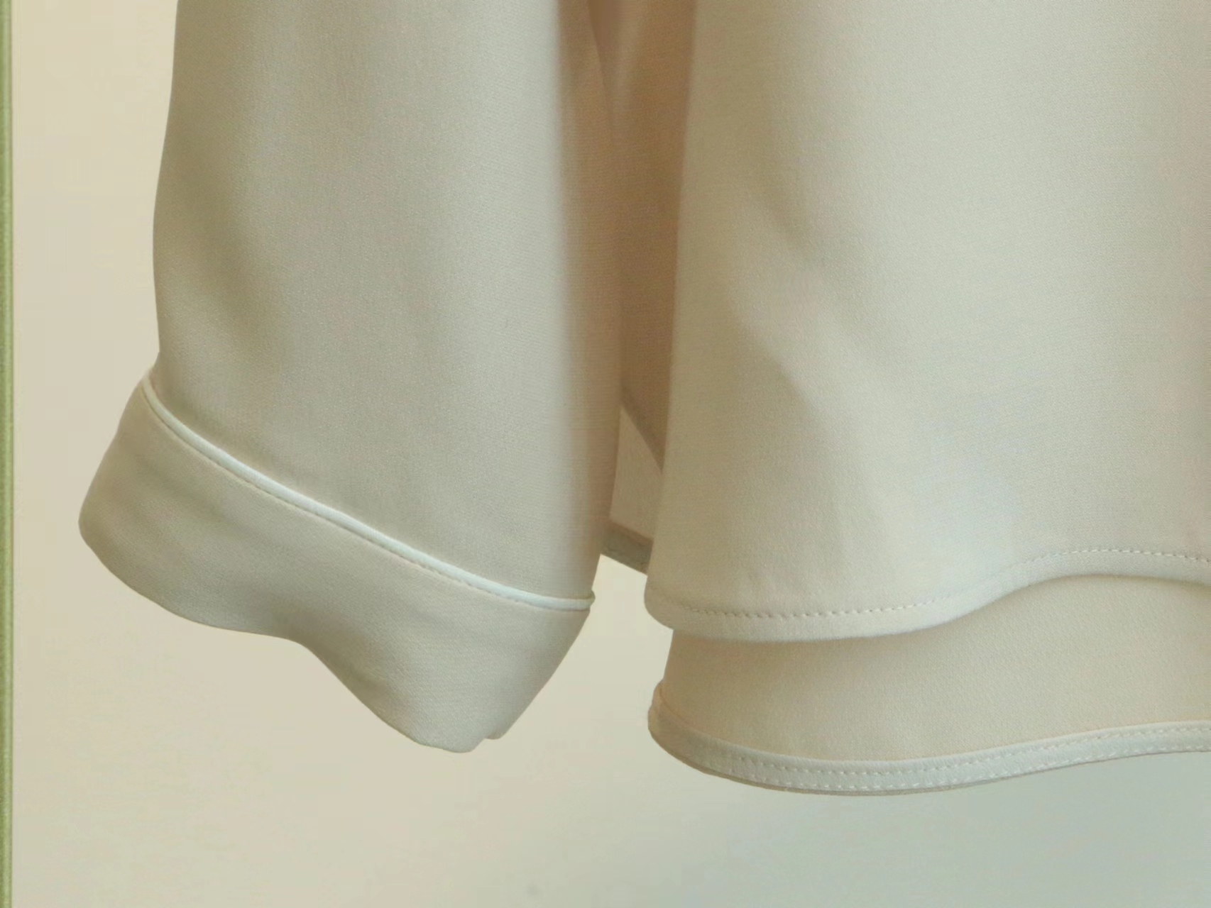月牙形的领子和袖克夫使用了本白色的30姆米真丝重绉,