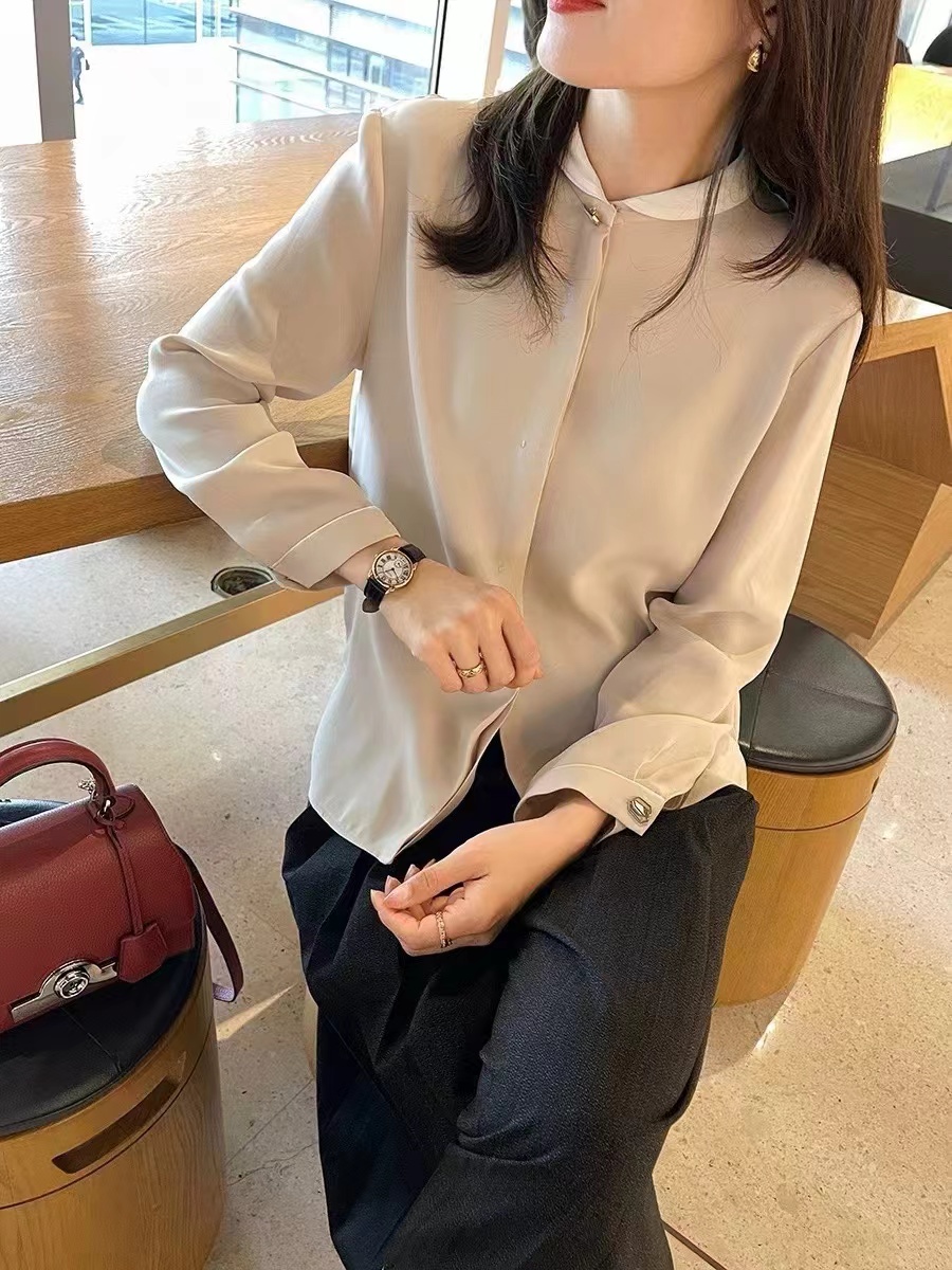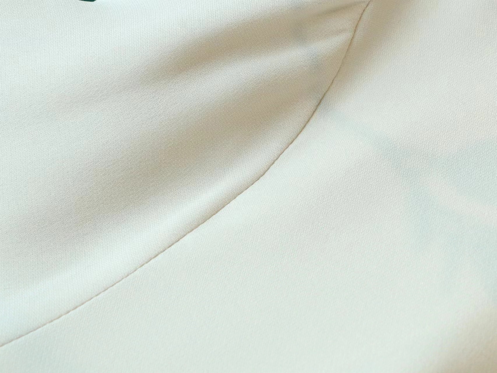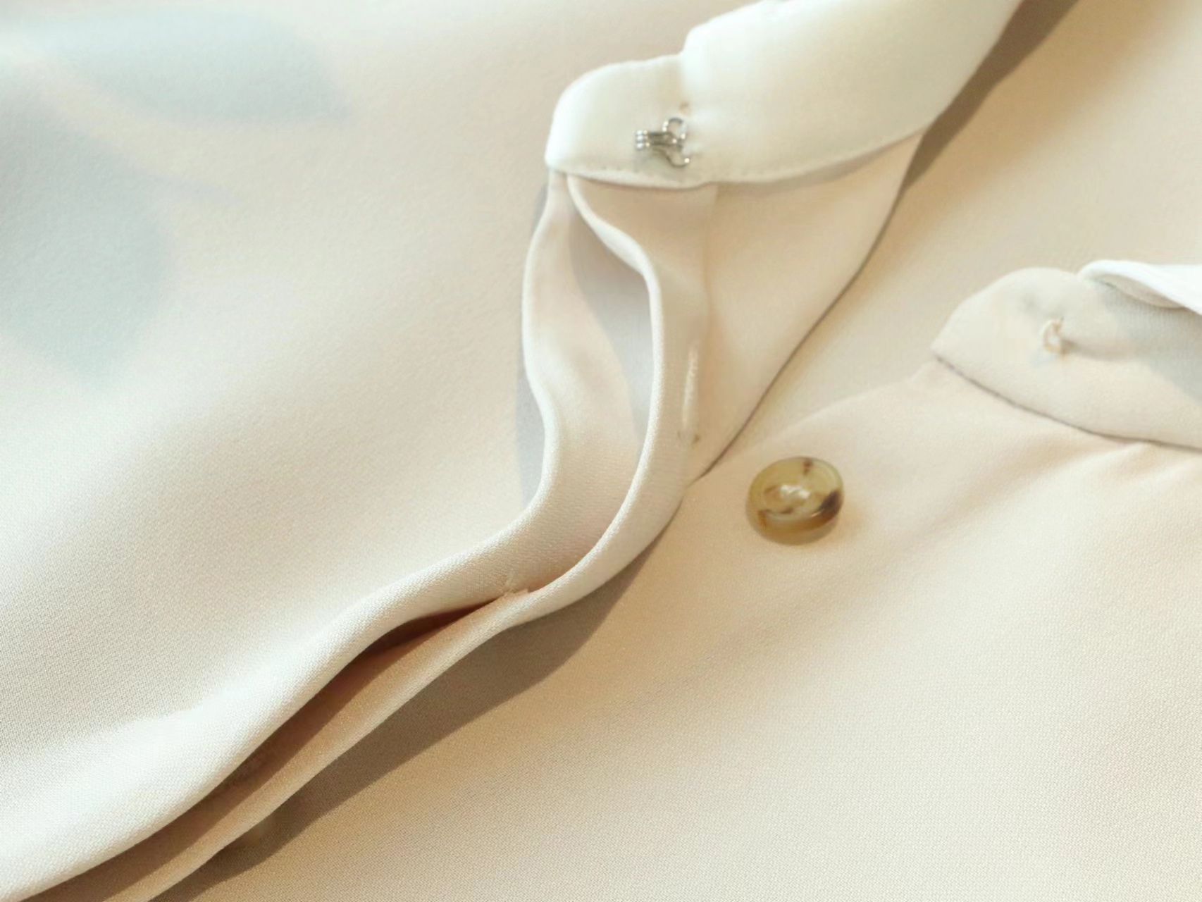 月牙形的领子和袖克夫使用了本白色的30姆米真丝重绉,