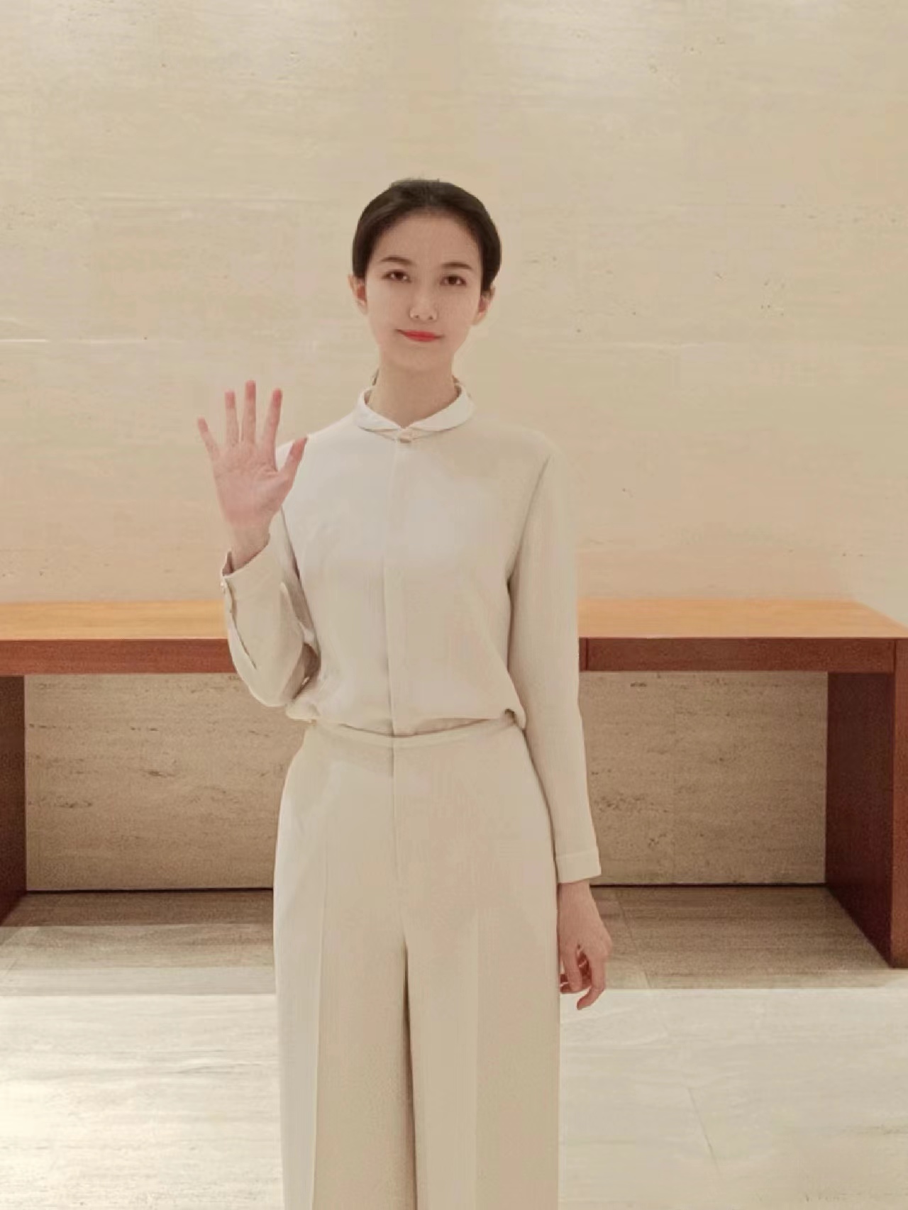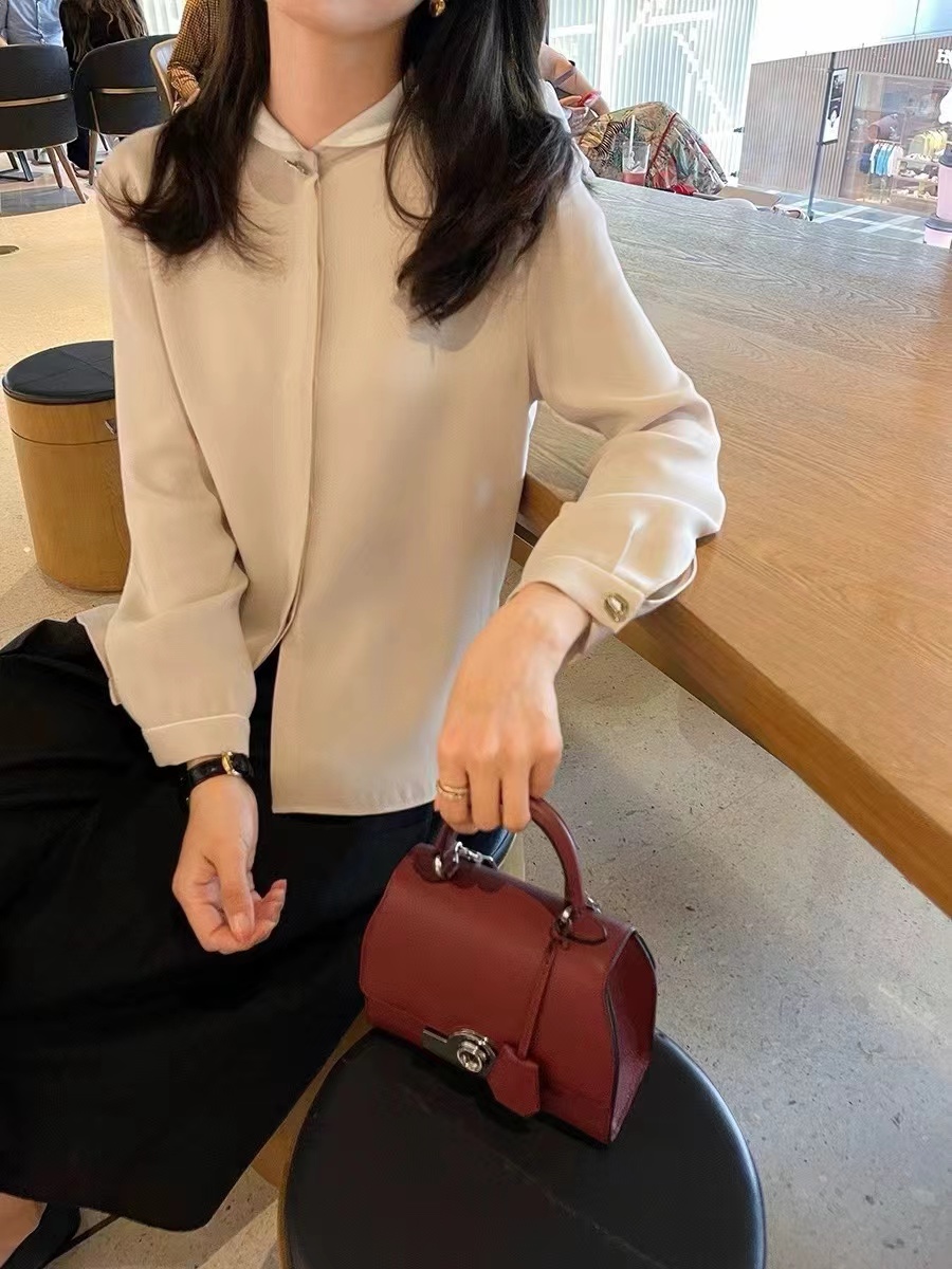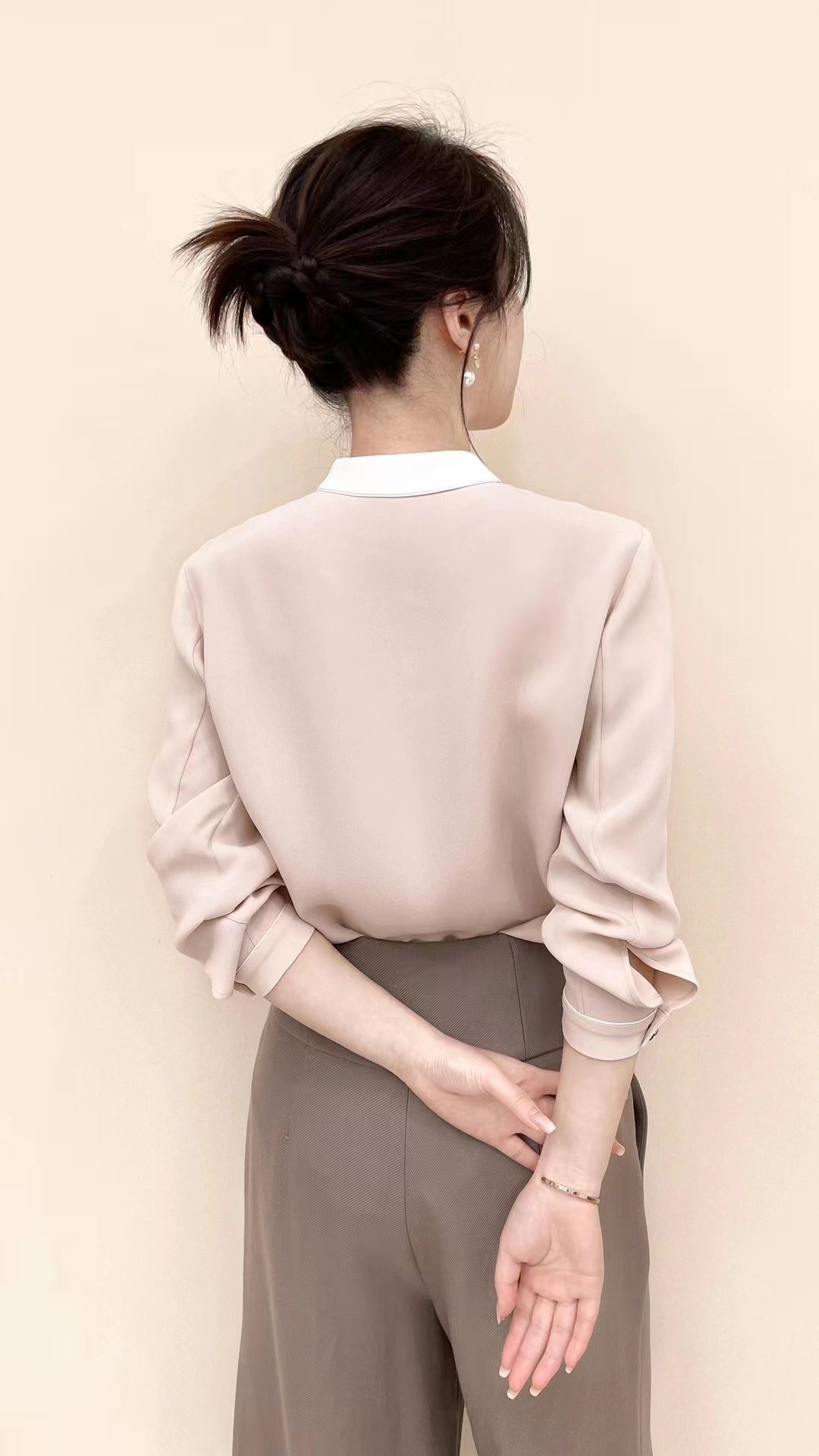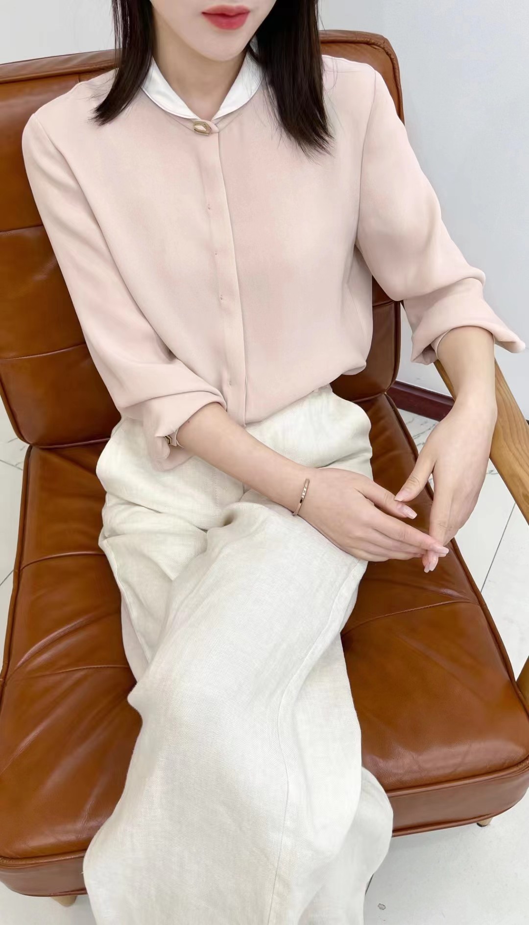 独特少见的领型隽秀内敛,边缘有本身布宽只1mm左右的镶边装饰