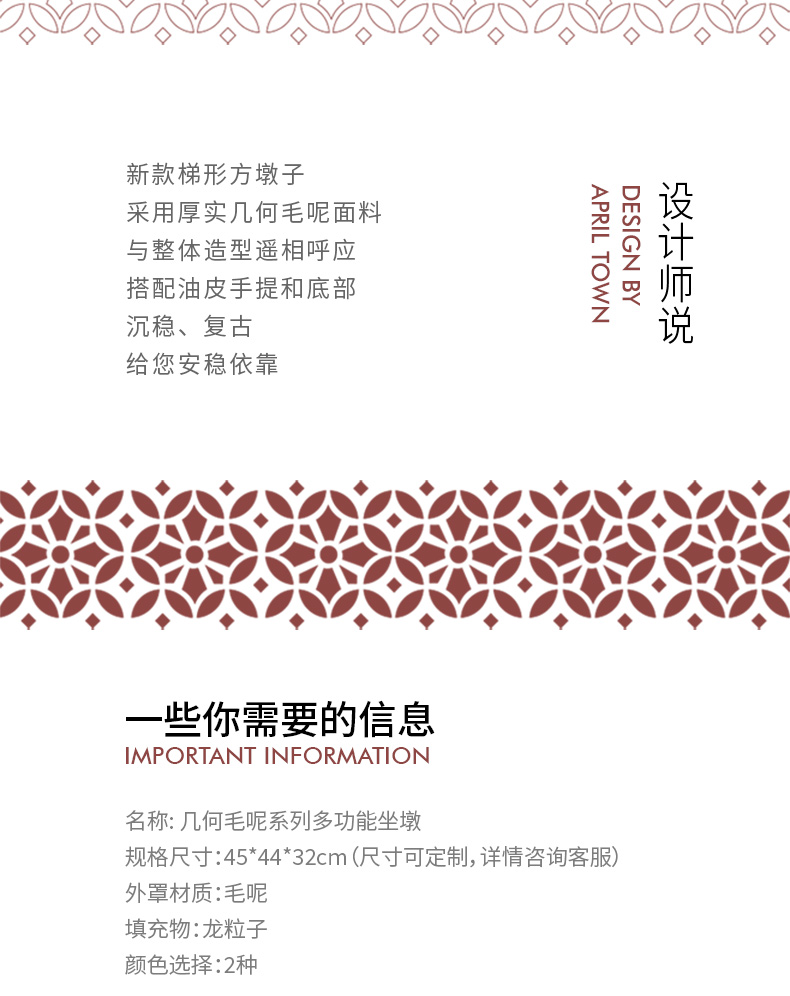 几何毛呢系列多功能坐墩客厅飘窗懒人沙发蒲团复古龙粒子坐垫