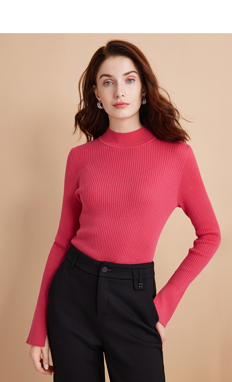 EITIE爱特爱秋季新款舒适半高领百搭打底基础针织衫7501206