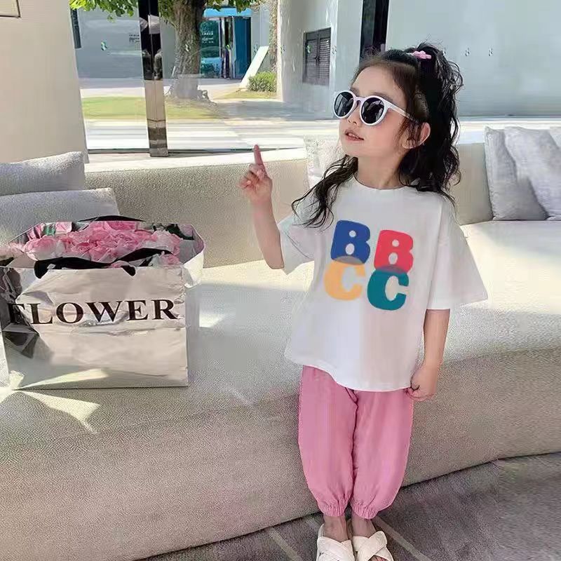 2件39.9元【童T】男童女童同款100%棉(BBCC彩色字母)印花T恤-喜出