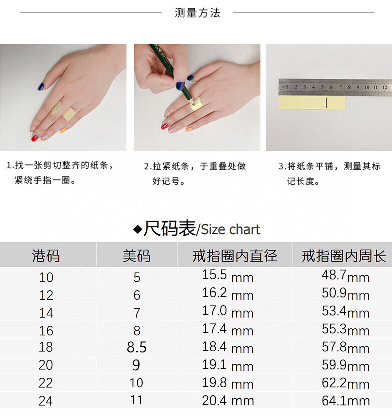 戒指有钻和无钻,宽窄两个版本,尺寸5-9