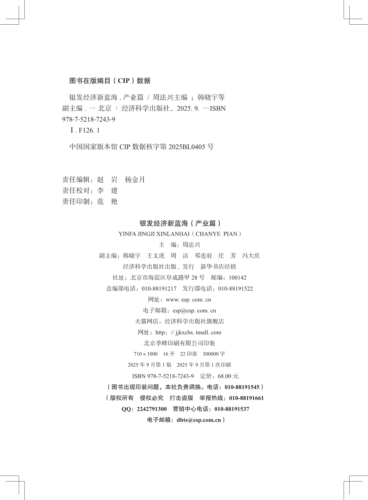 本书由经济学博士、编审及高级会计师周法兴领衔主编。他不仅曾任中国财政学会常务理事,更在财政部深耕多年,在宏观经济与财政管理领域底蕴深厚。著有《中国政府投资政策转变及其影响》《从零到一:开启虚拟资产新纪元》《数据资产ABC》等多部权威作品,堪称“学术与实战的双重权威”。编写团队更是阵容强大——汇聚财政金融学者、银行和保险企业高管、医院负责人、高校智库、投研专家,多年来持续追踪银发经济动态,深入北京、上海、重庆、辽宁、贵州等地实地调研,从市场、技术、政策三大维度全面剖析,只为给你最前沿、最接地气的产业洞察。