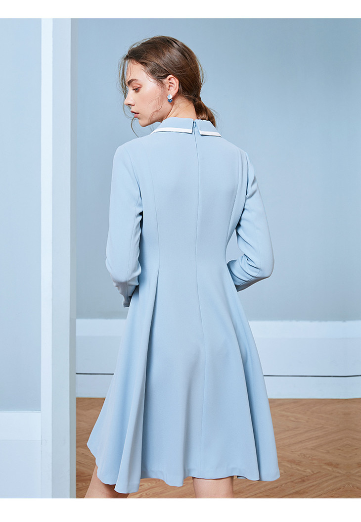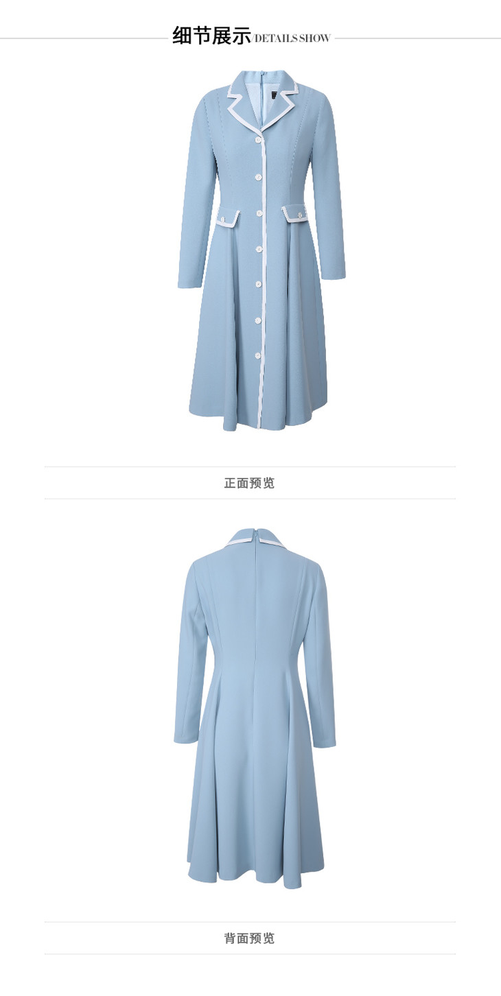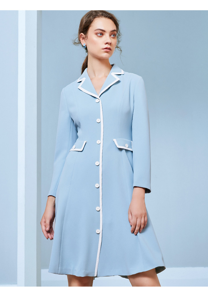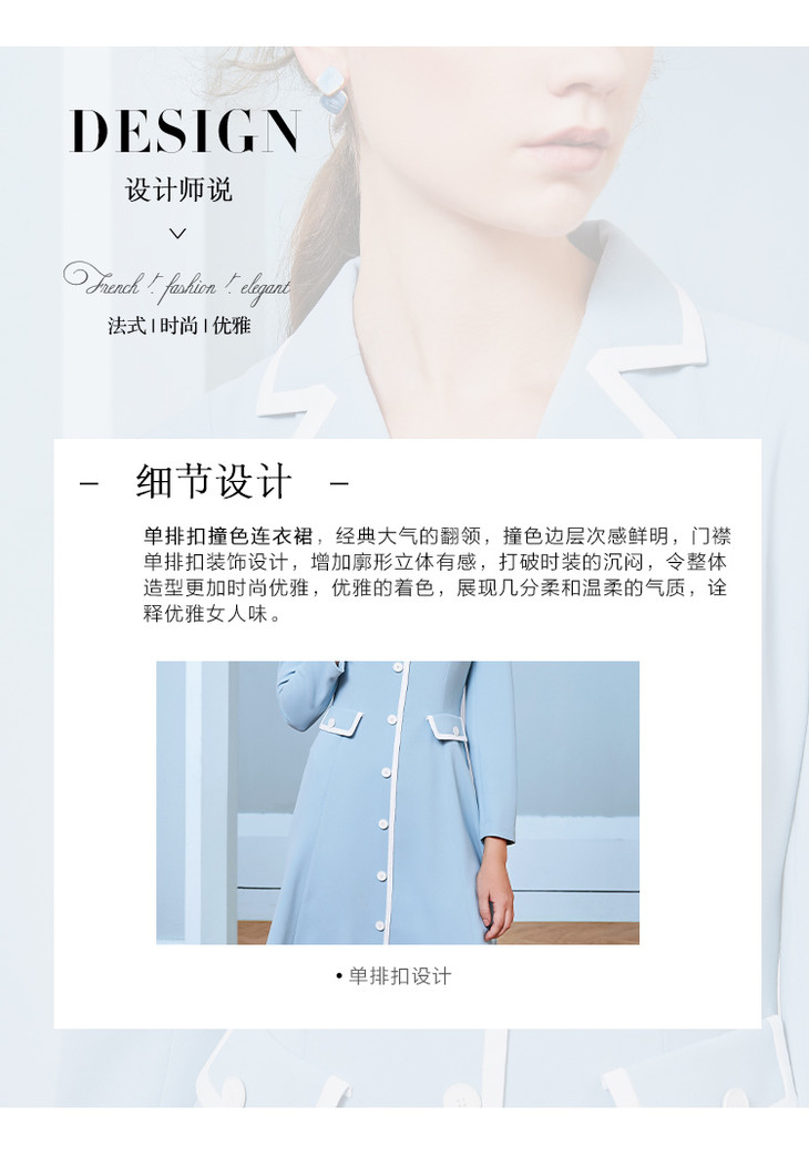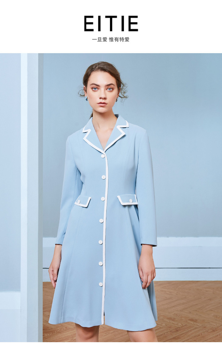 EITIE爱特爱秋季新款时尚洋气通勤气质V领收腰显瘦连衣裙女C2007574
