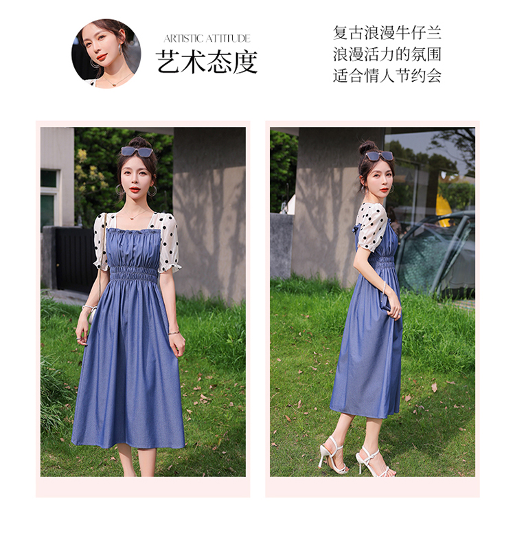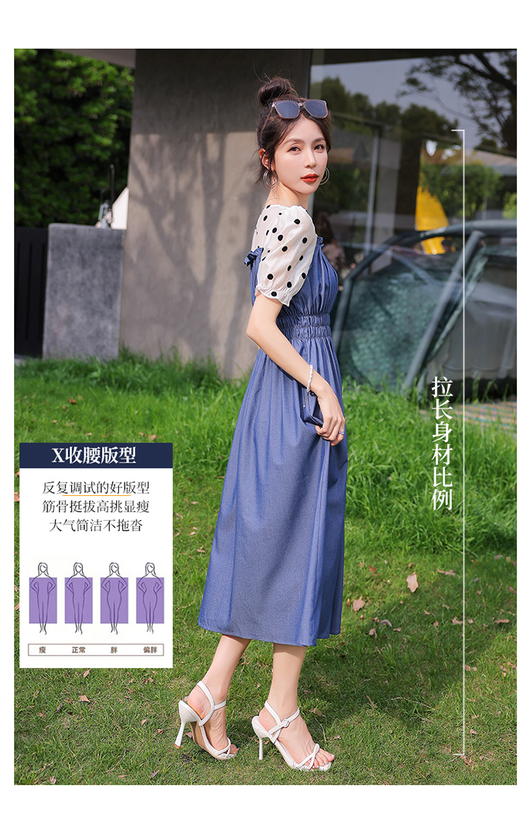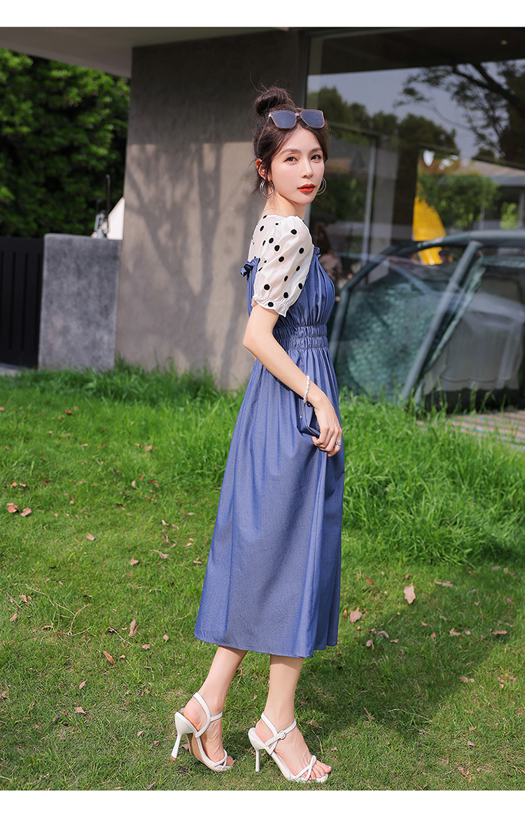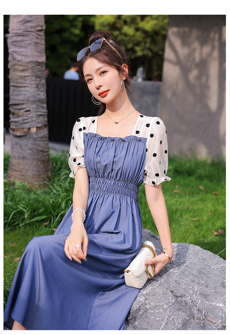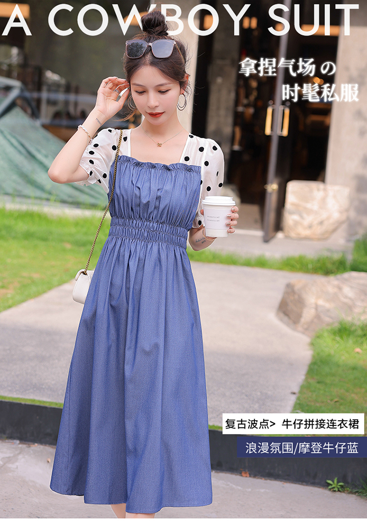 夏季新款,法式波点拼接牛仔连衣裙HR-XMYR2333-1
